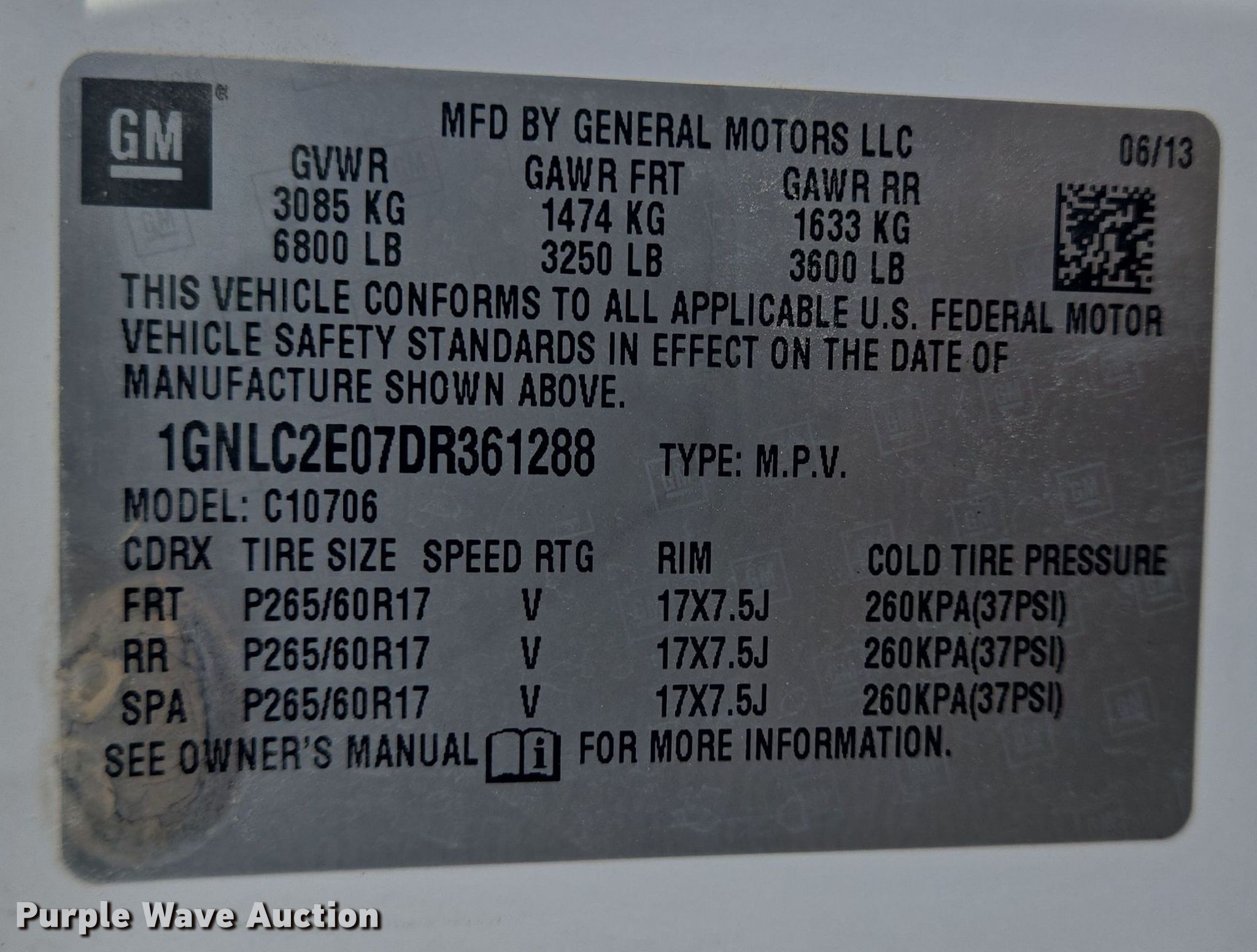 - VIN: 1GNLC2E07DR361288