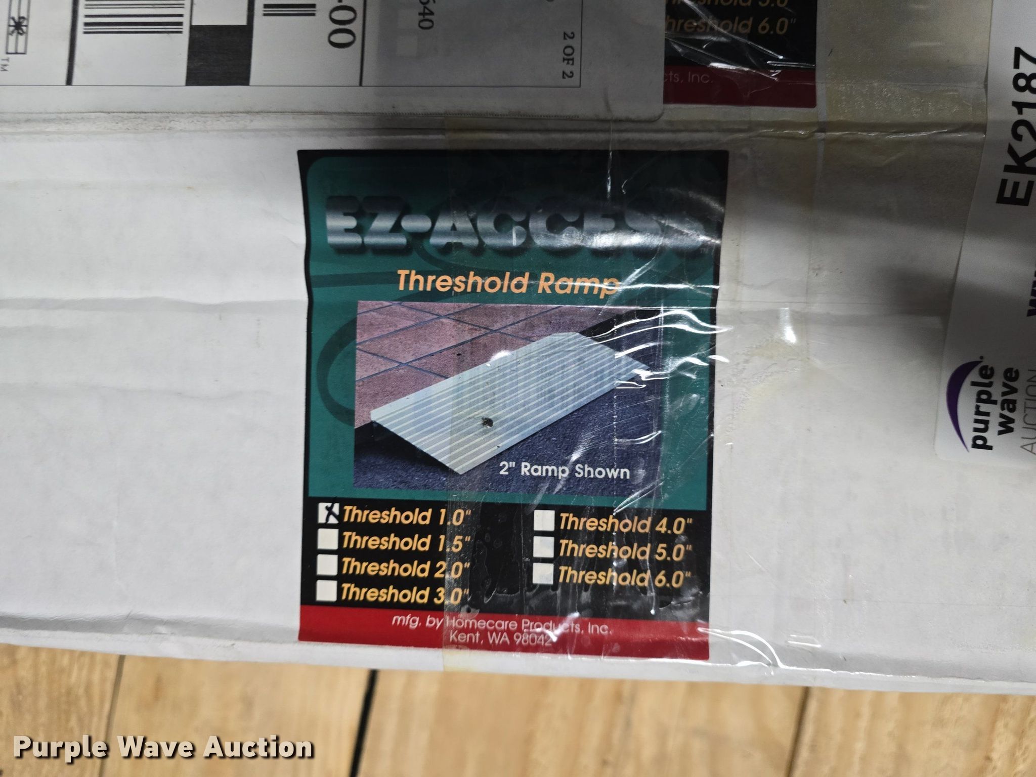 Purple Wave is selling a used Building Materials in Kansas. This item is a Handicap ramps with the following: (9) 2" EZ-Access threshold ramps, (2) PVI portable ramps, 57", 21"