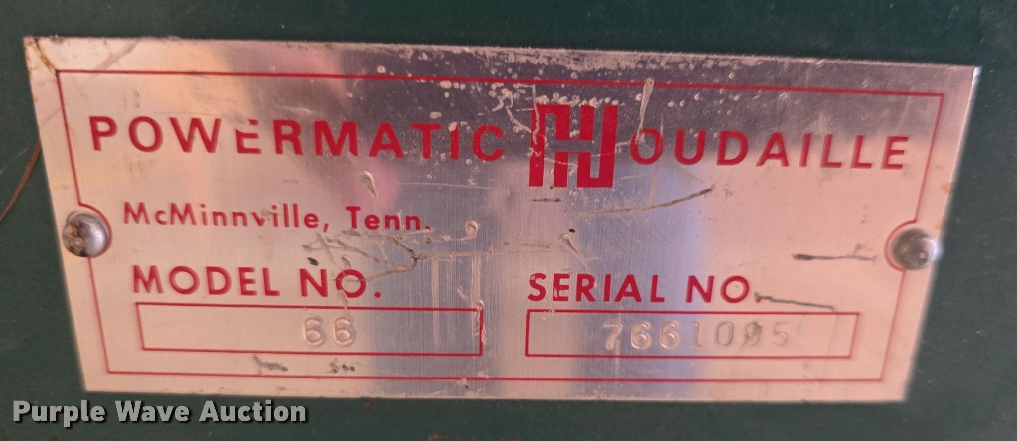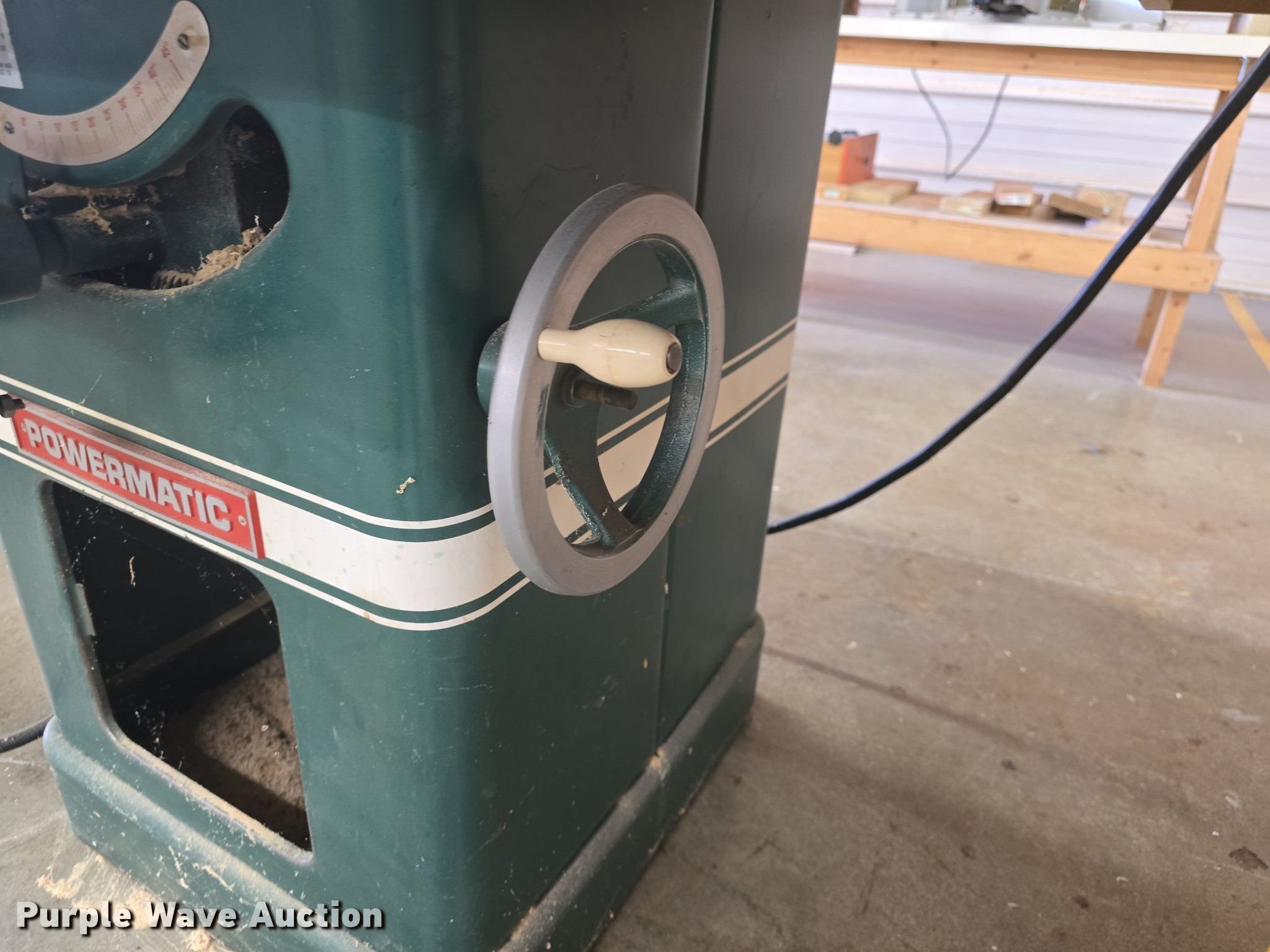 Purple Wave is selling a used Tools in Kansas. This item is a Powermatic 66 table saw with the following: Serial: 7661005, Blade capacity: 10", Length: 6' 2"