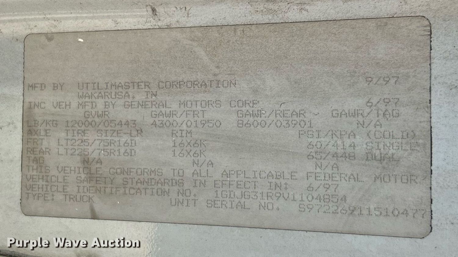 Purple Wave is selling a used Box Truck in Missouri. This item is a 1997 GMC 3500 box truck with the following: Miles: 106,259 on odometer, VIN: 1GDJG31R9V1104854