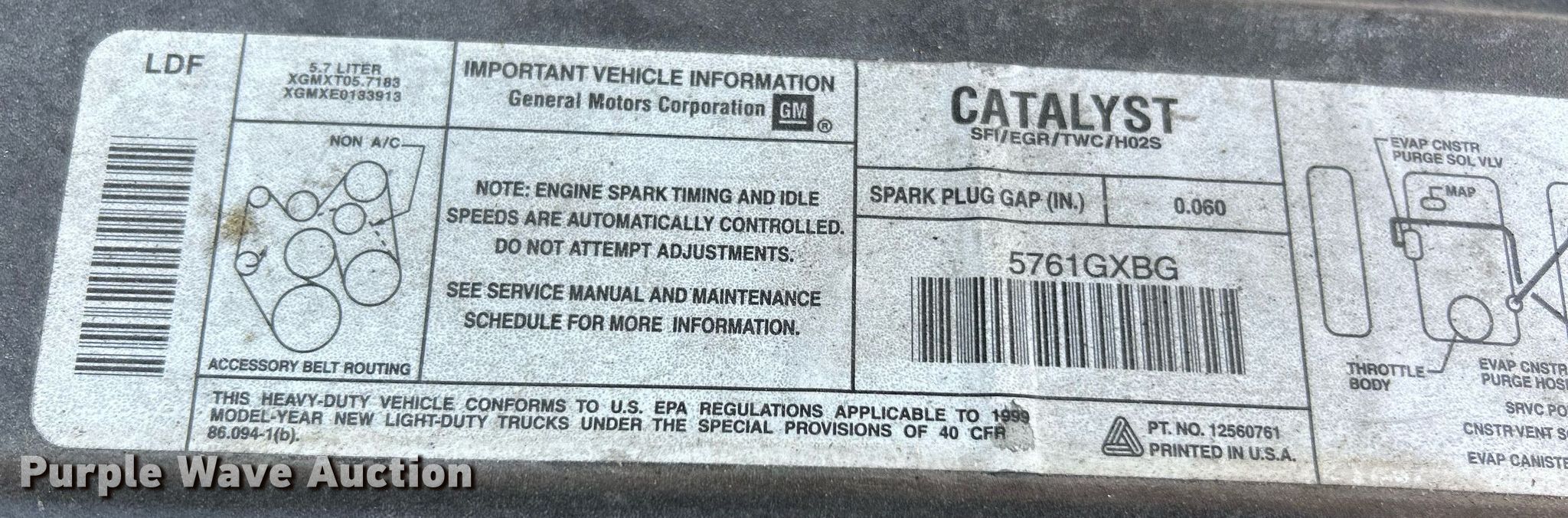 1999 GMC Suburban 1500 SL SUV. Miles: 124,546 on odometer, VIN: 1GKFK16R9XJ788219. Engine Displacement: 5.7L V8 OHV, Cylinders: 8, Fuel type: Gas. Transmission Automatic, Four wheel drive. Interior AC, Heat, Cruise control. Tires Size: LT245/75R16. Notes Dead battery, Engine issues, white smoke from exhaust. Missouri title. Title distribution may be delayed up to 14 days from verification of funds. Fox C6 School District. Arnold, MO 63010