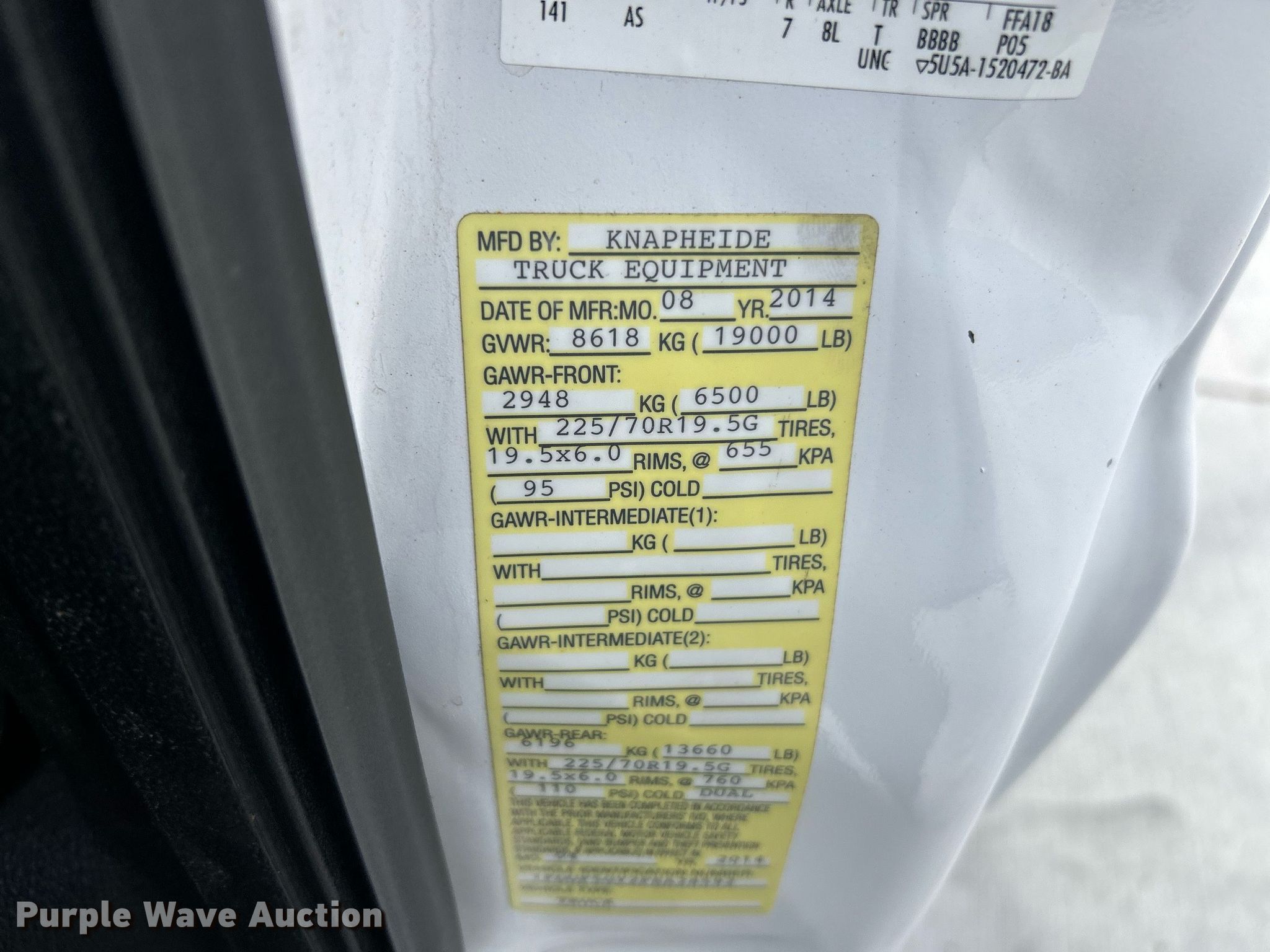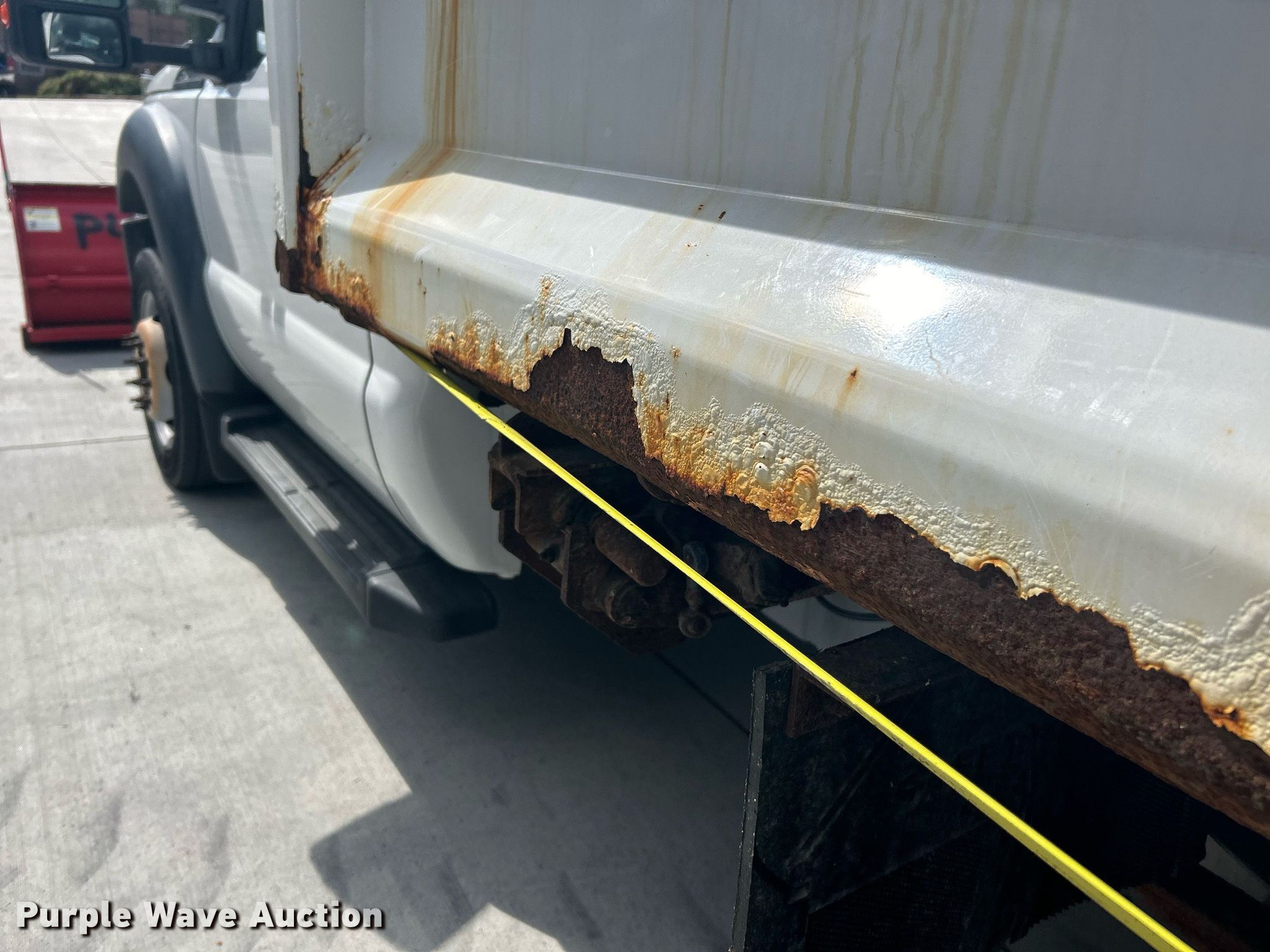 2015 Ford F550 Super Duty XL dump truck. Miles: 14,499 on odometer, VIN: 1FDUF5GY2FEA28592. Engine Displacement: 6.8L, Cylinders: 10, Fuel type: Gas. Transmission Automatic. Interior AC, Heat, Heated mirrors, Power windows, Power locks, Cruise control. Features Dump bed TBEI, 9' L x 96" W, Western Pro Plus snow plow Width: 103". Tires Size: 225/70R19.5. Notes Bed side panel issues, pivot pins seized. Missouri title. Title distribution may be delayed up to 14 days from verification of funds. City of Des Peres, MO. Des Peres, MO 63131