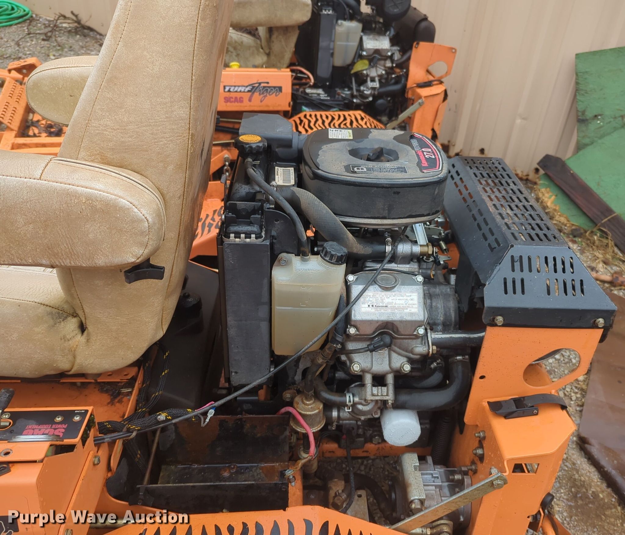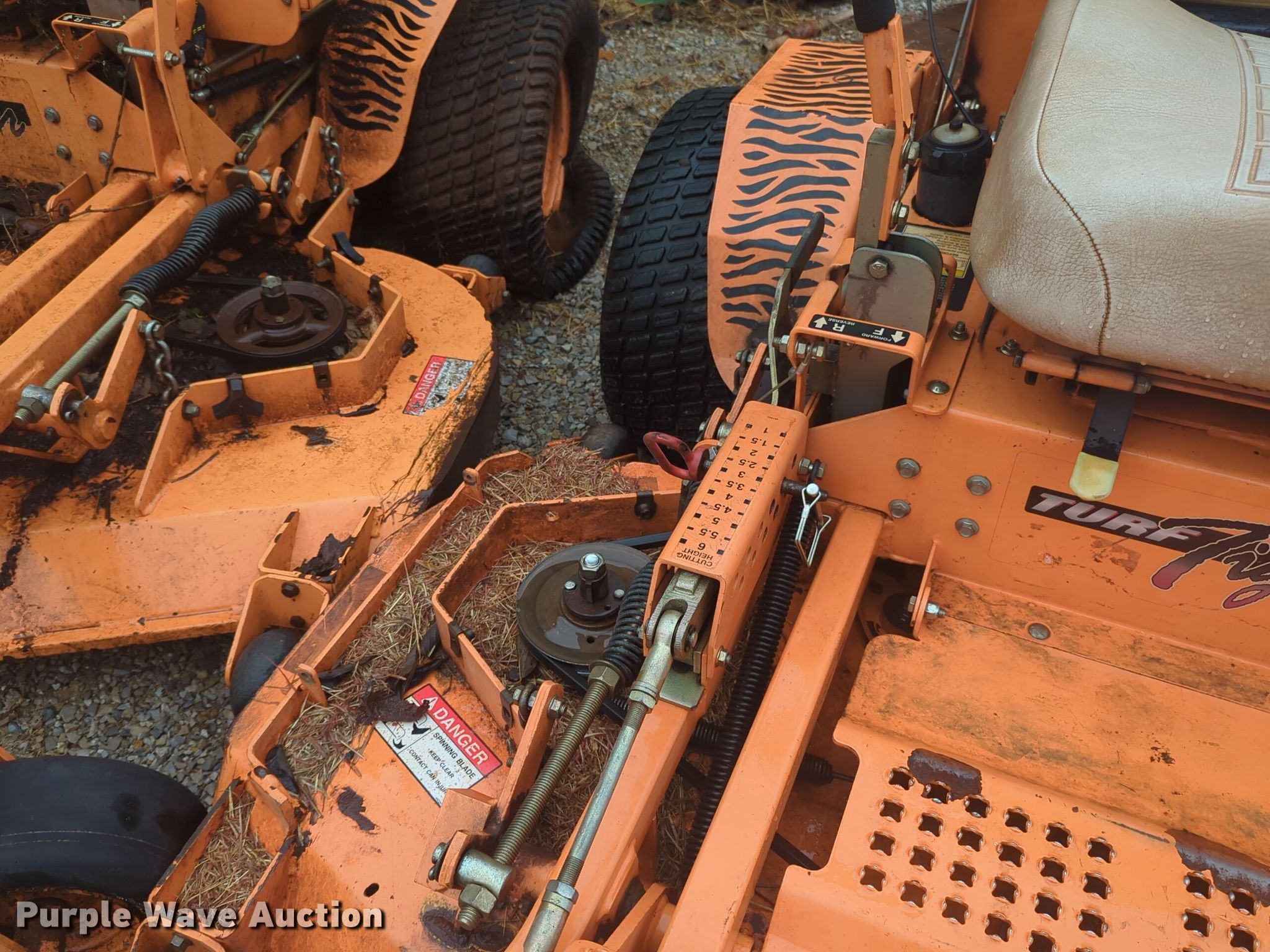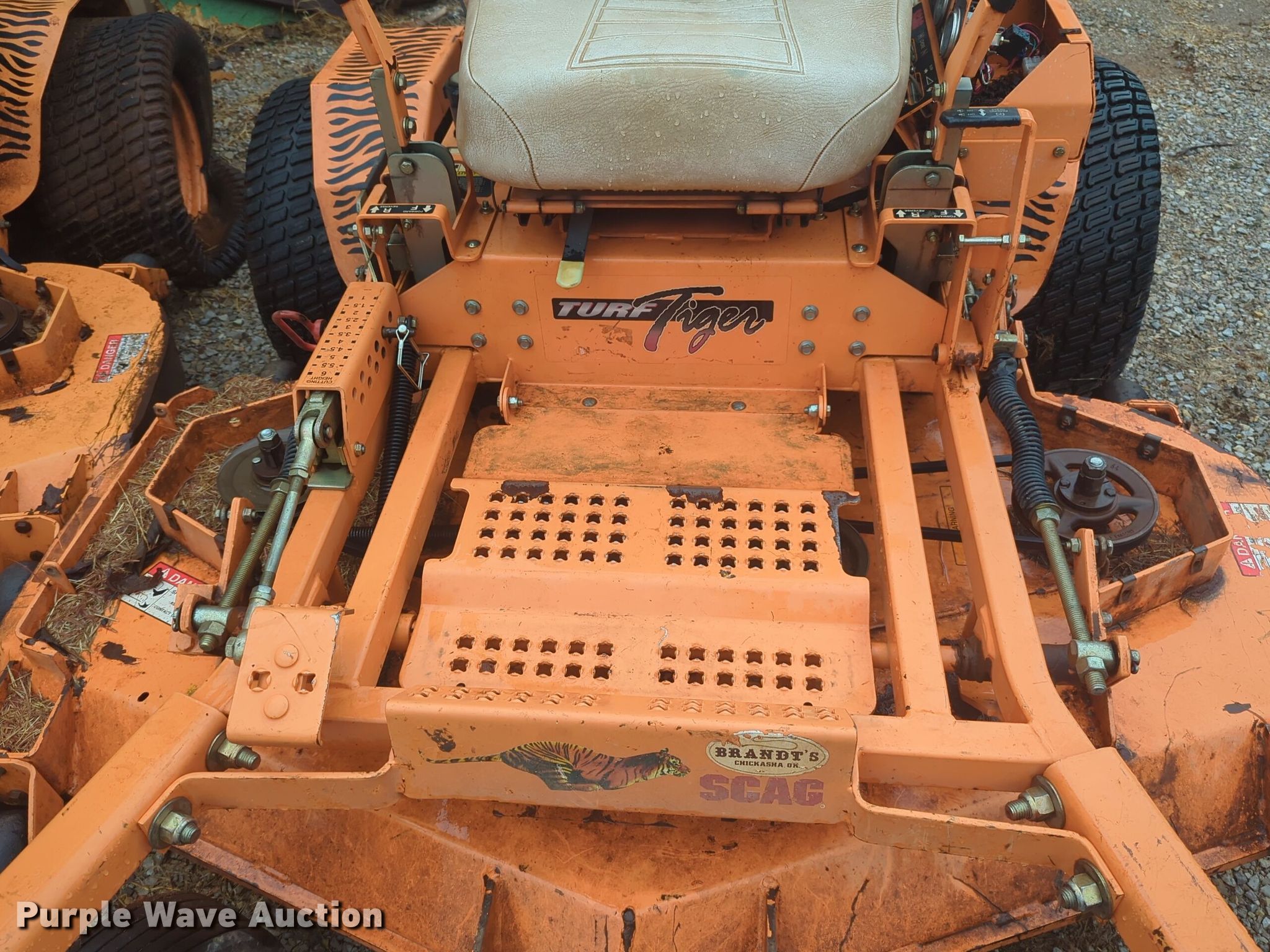 Purple Wave is selling a used Commercial Turf Mower in Oklahoma. This item is a Scag Turf Tiger ZTR lawn mower with the following: Hours: 1,257 on meter, Cutting width: 61"