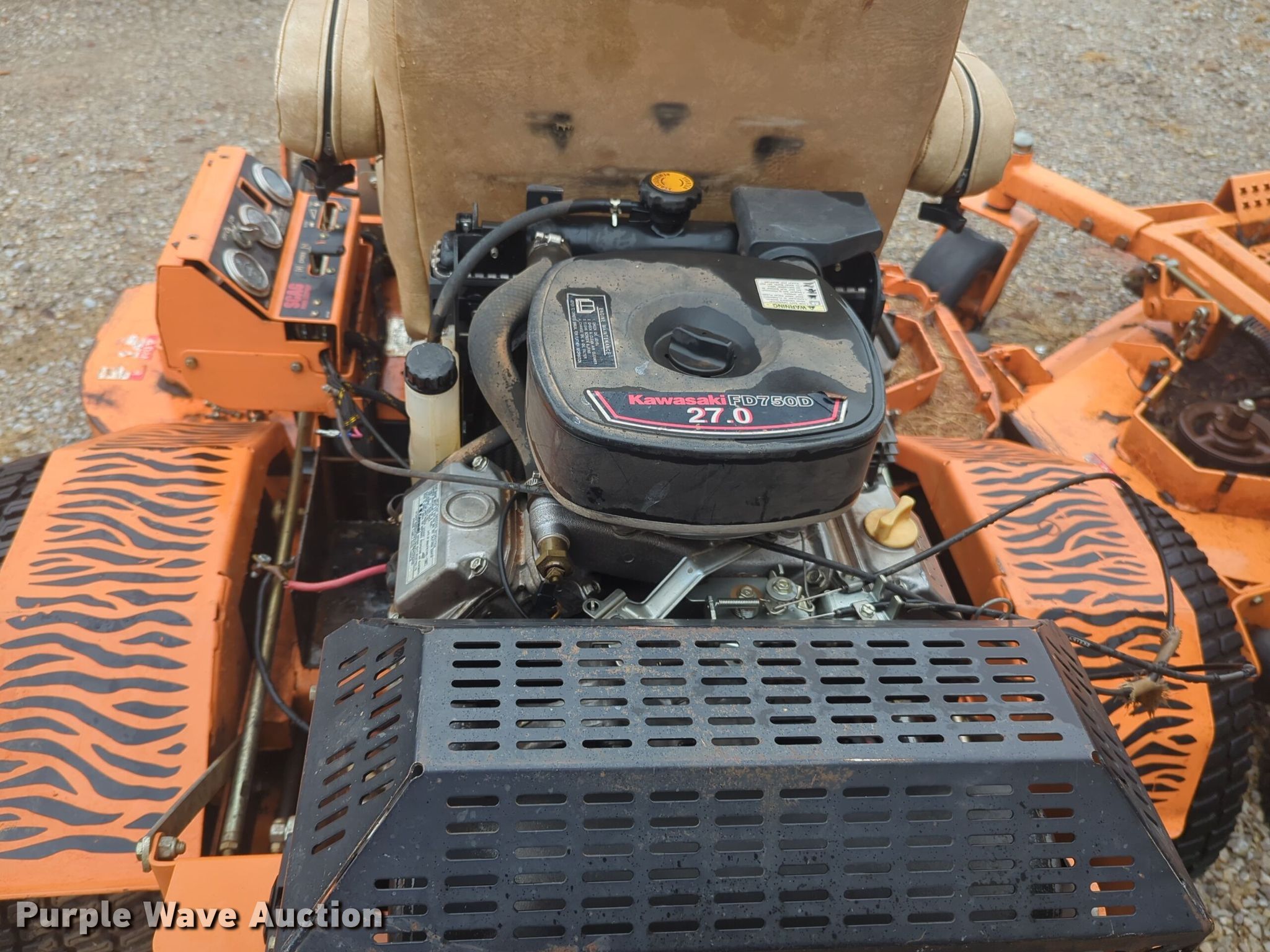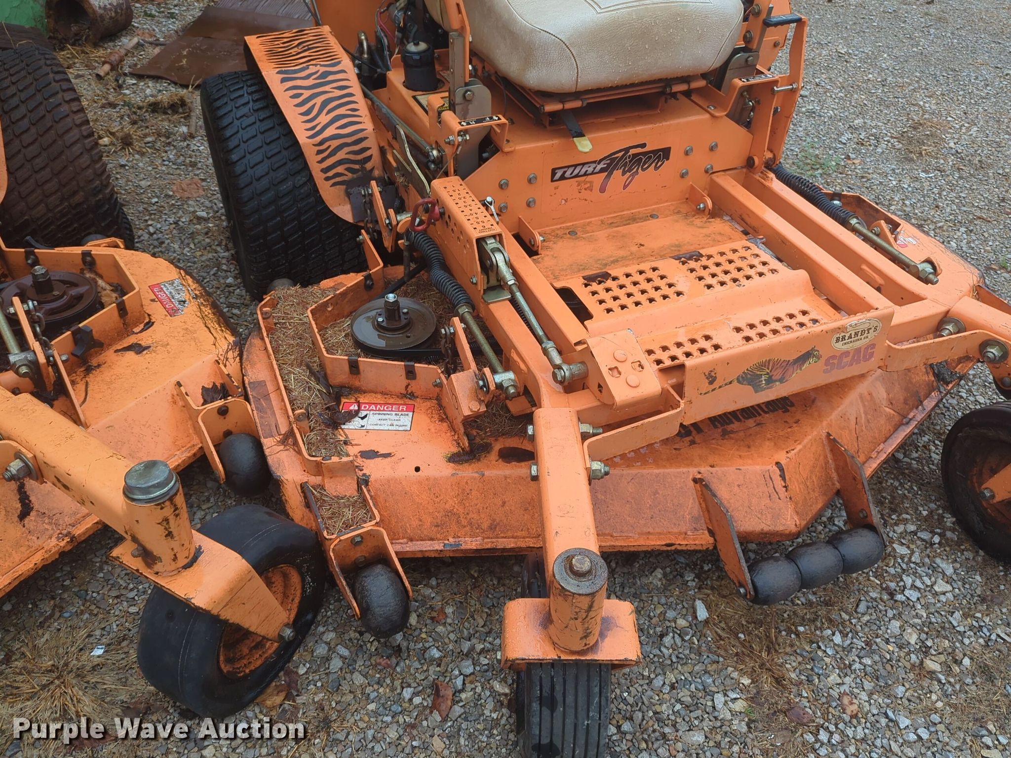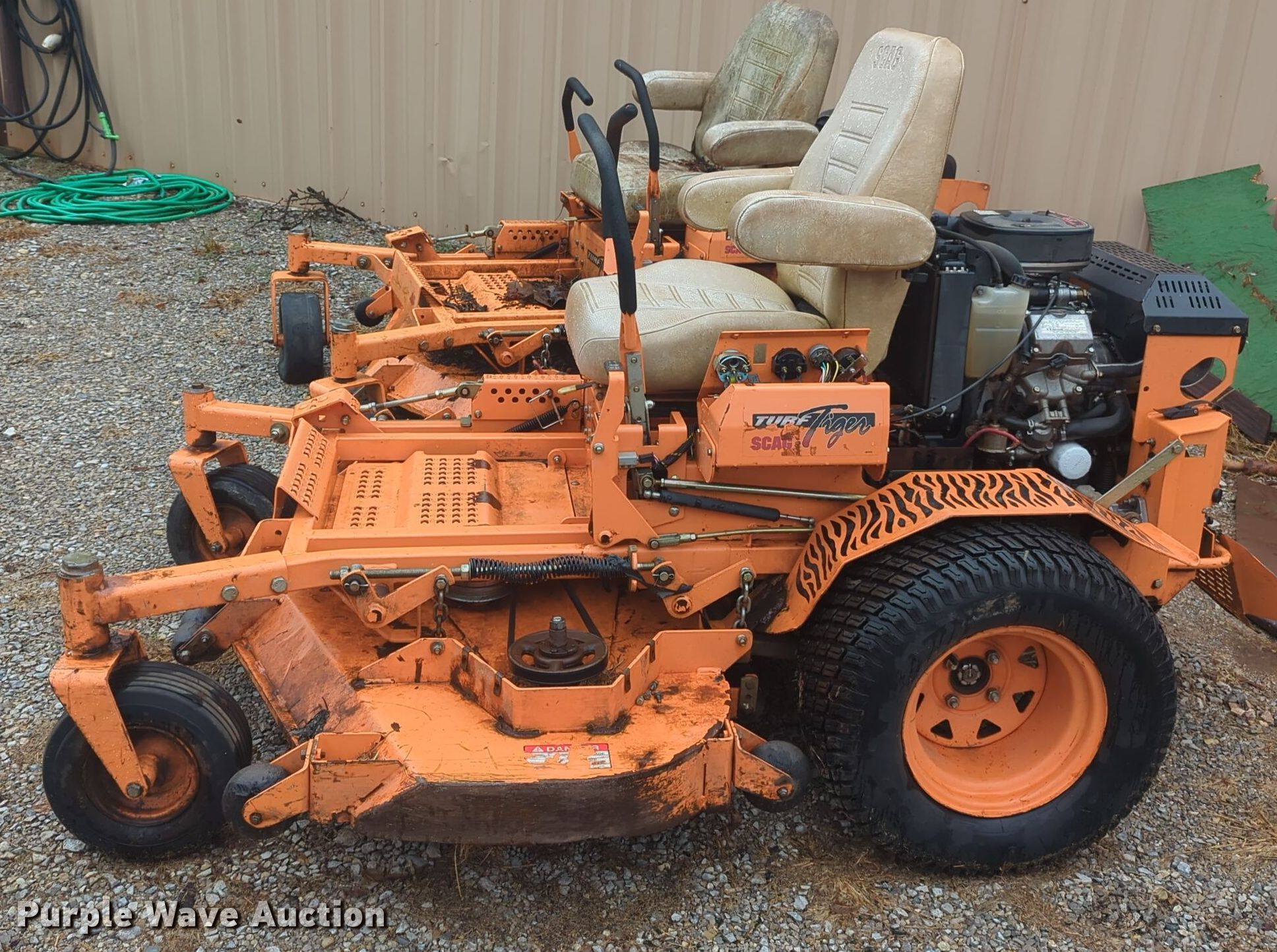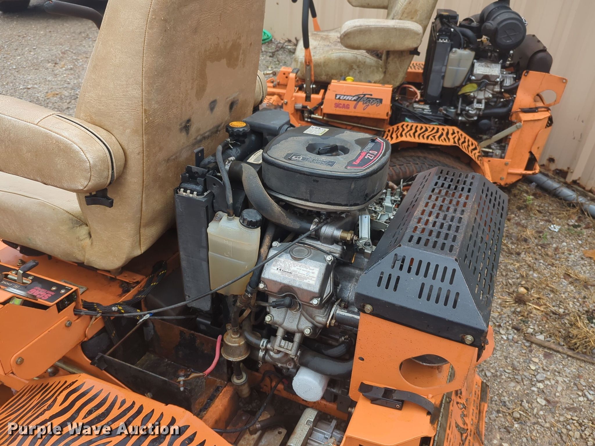 Purple Wave is selling a used Commercial Turf Mower in Oklahoma. This item is a Scag Turf Tiger ZTR lawn mower with the following: Hours: 1,257 on meter, Cutting width: 61"