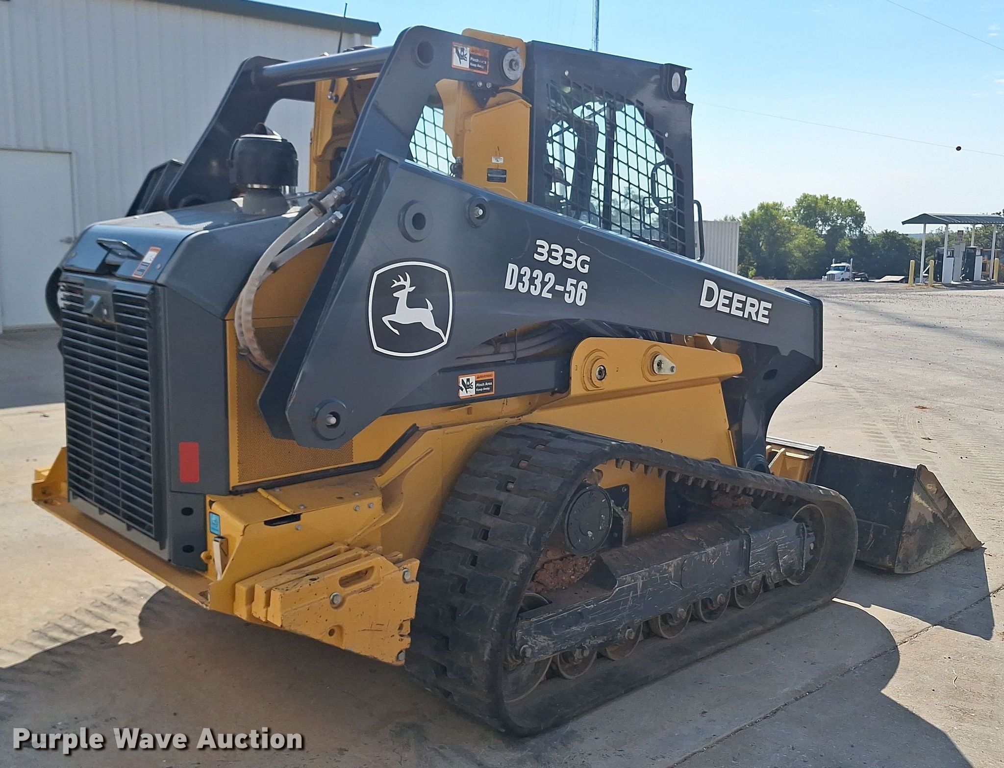 Purple Wave is selling a used Tracked Skid Steer Loader in Oklahoma. This item is a 2021 John Deere 333G tracked skid steer loader with the following: Hours: 839 on meter, Serial: 1T0333GMKMF401841, Unit #: D332-56