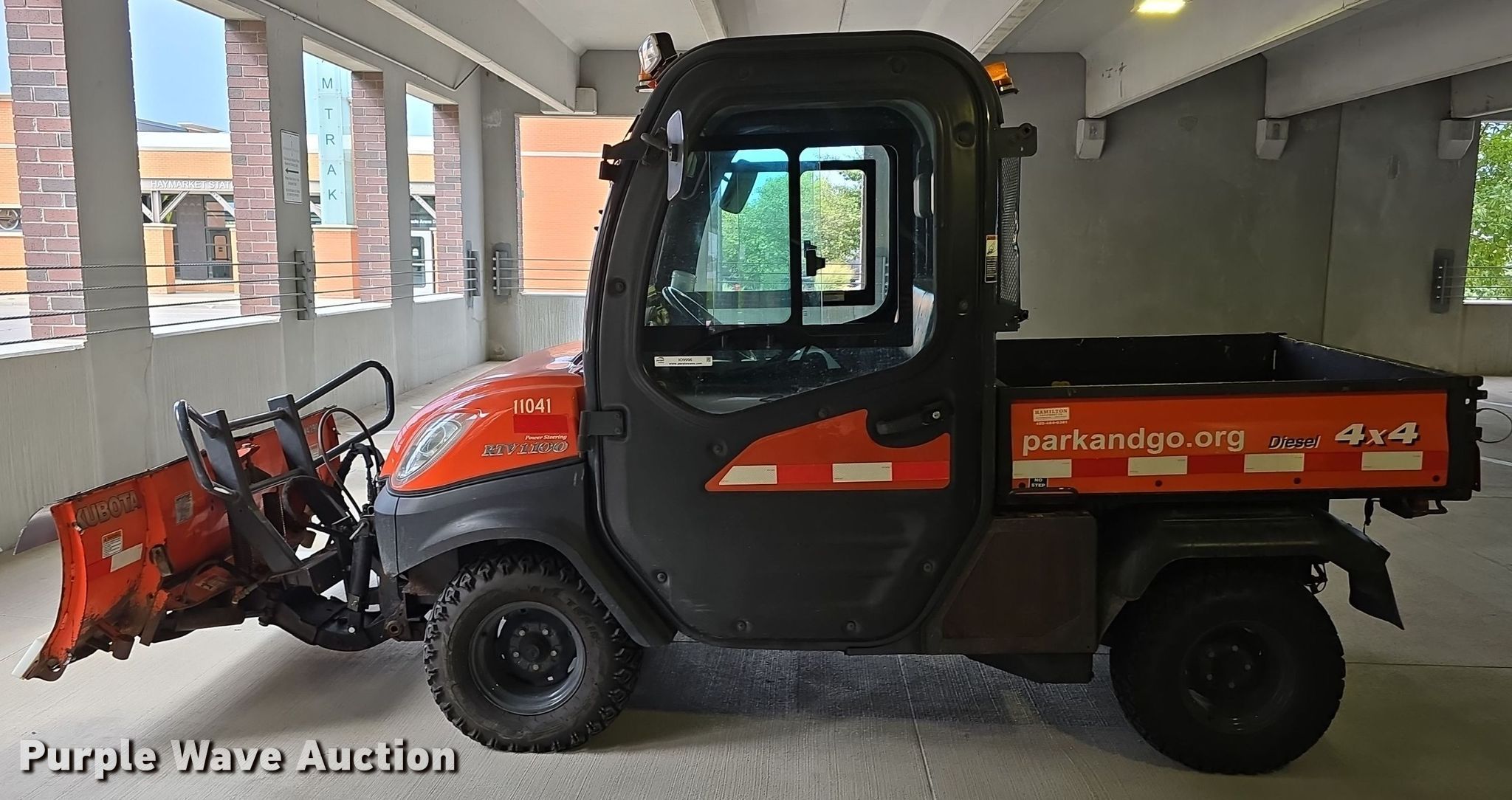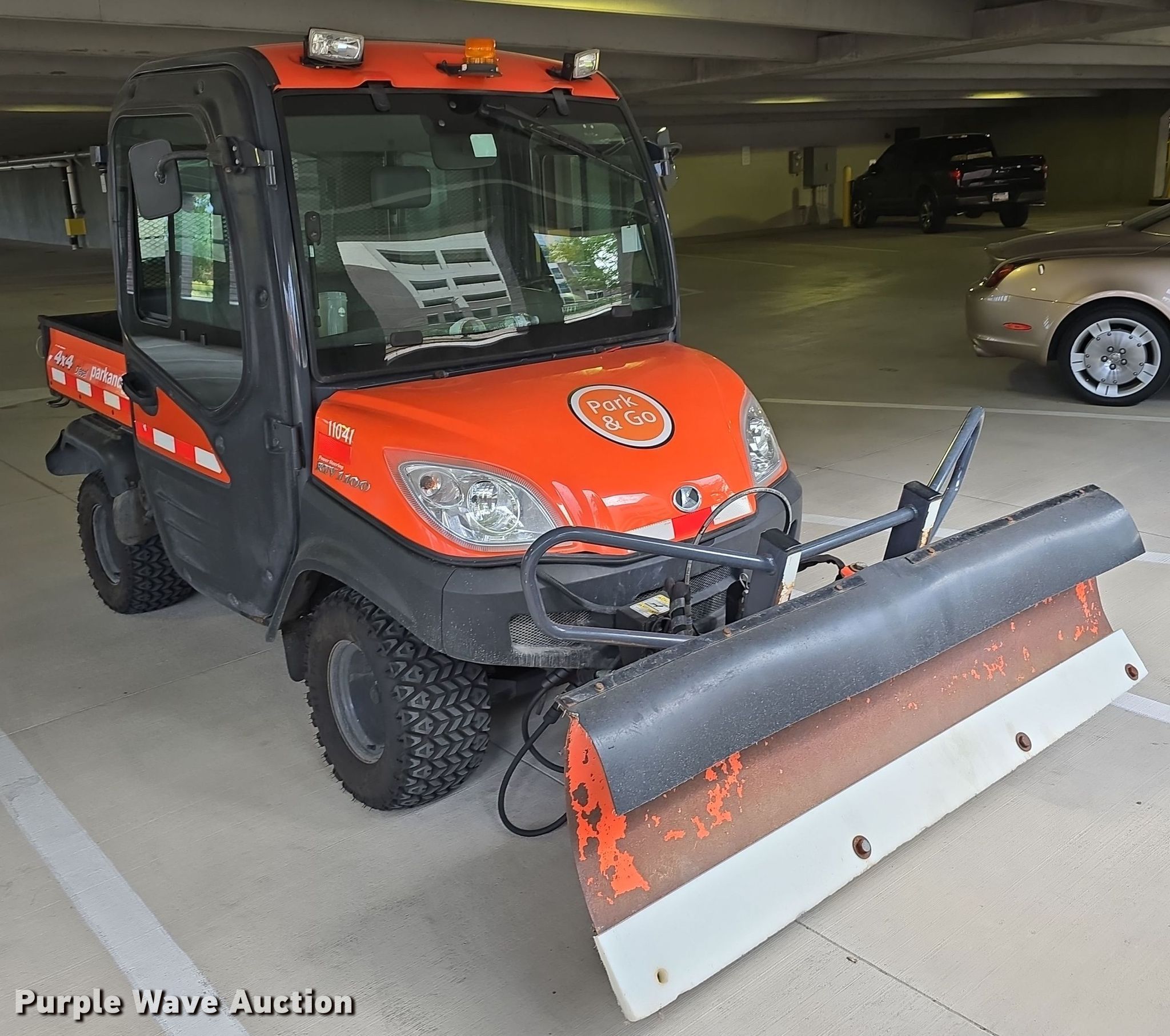 2012 Kubota RTV1100 utility vehicle. Hours: 4,173 on meter, Miles or hours may vary, unit still in use, VIN: A5KC1HDAECG035277, Serial: 35277. Engine Cylinders: 3, Fuel type: Diesel, Electric start. Transmission Automatic. Chassis Four wheel drive/ All wheel drive. Operators station Enclosed cab, Heat. Features Grille guard, Receiver hitch, Dump bed 48" L x 54" W, Dump bed type: Electric/ Hydraulic, Attachment Kubota VA290 snow plow, Width: 72", Serial: 21214474. Tires Size: 265/60-12. Transfer of ownership documentation will be a bill of sale. City of Lincoln Parking Services. Lincoln, NE 68508