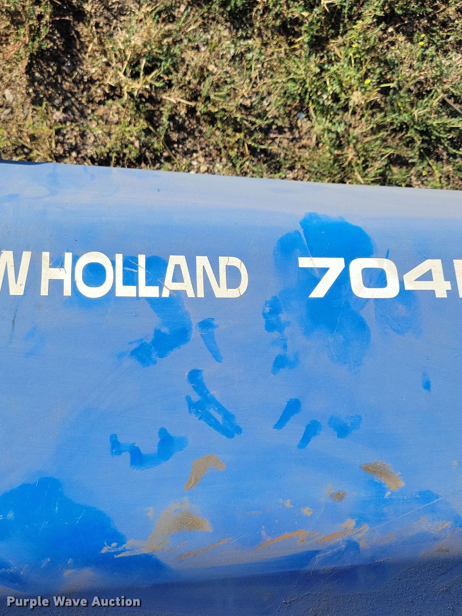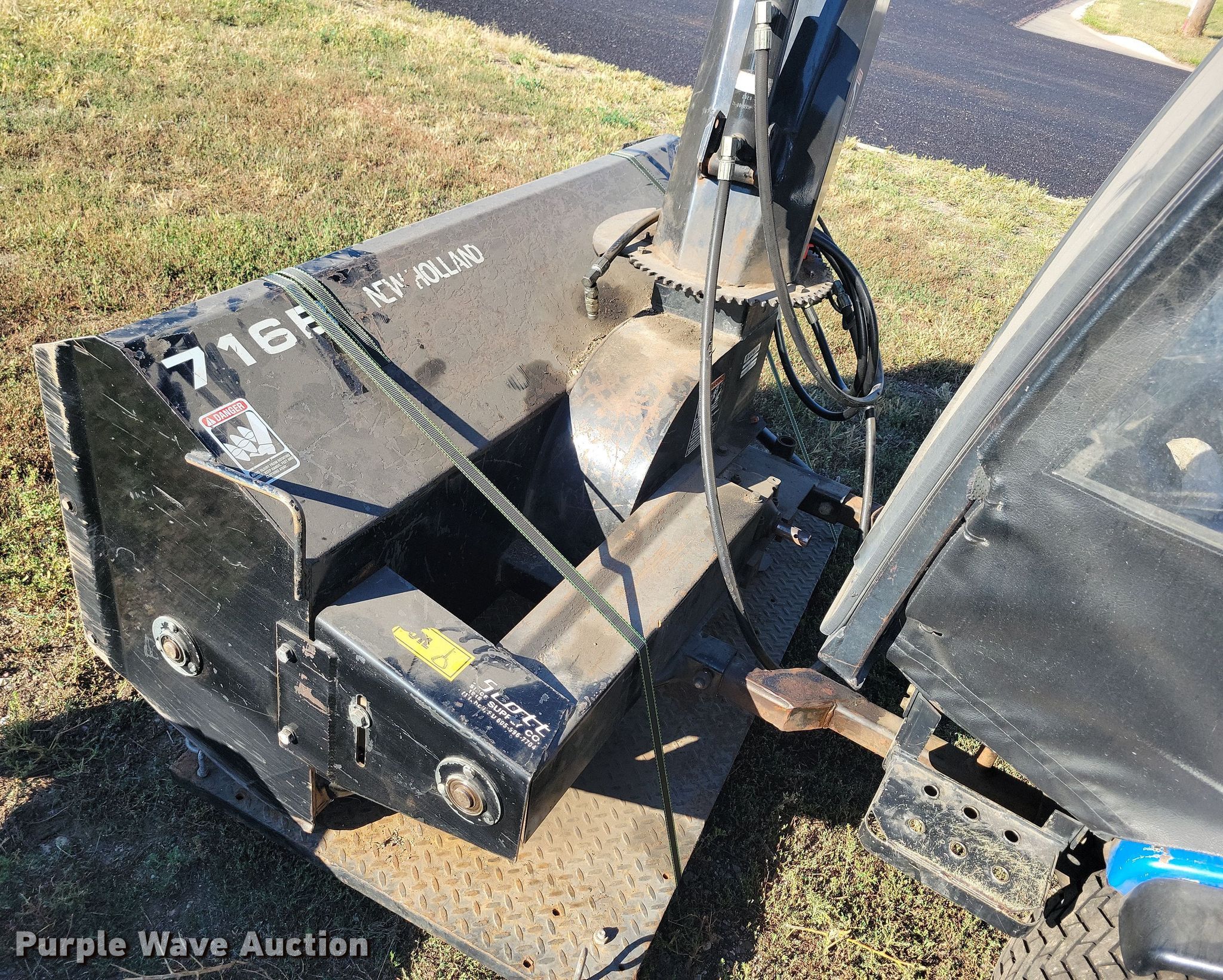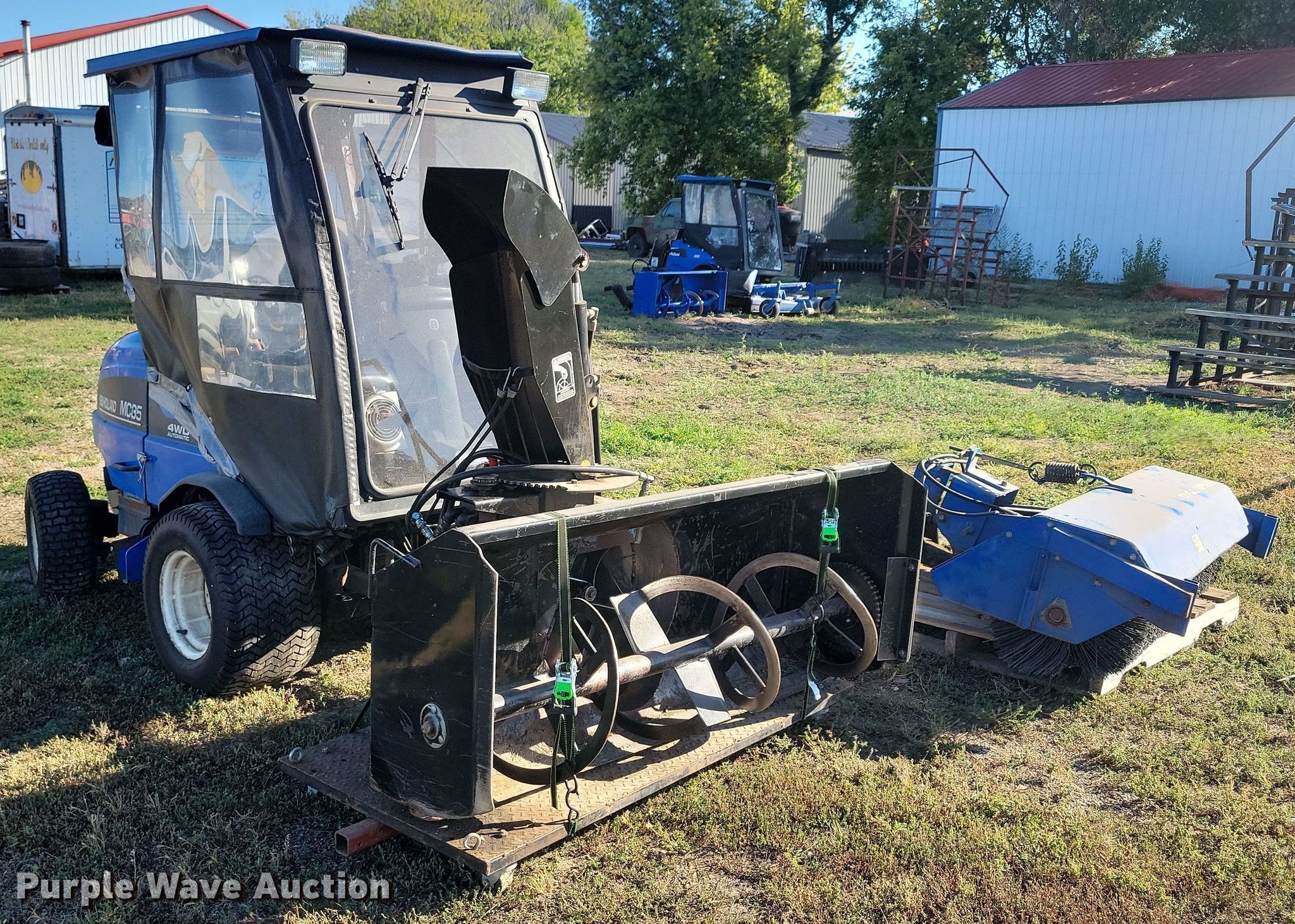 New Holland MC35 lawn mower. Hours: 3,494 on meter, Cutting width: 72". Engine Shibaura, Displacement: 1.662L, Cylinders: 3, Fuel type: Diesel, kW: 26.1. Transmission Hydrostatic. Chassis Four wheel drive. Operators station Enclosed cab. Features Counter weights, Grass bagger, Snow blower Width: 61", New Holland 716B, Broom Width: 60", New Holland 704D. Tires Front: 24x13-12NHS, Rear: 20x8-10IMP. Notes Hydraulic pump issues, will not lift. Mitchell School District. Mitchell, SD 57301