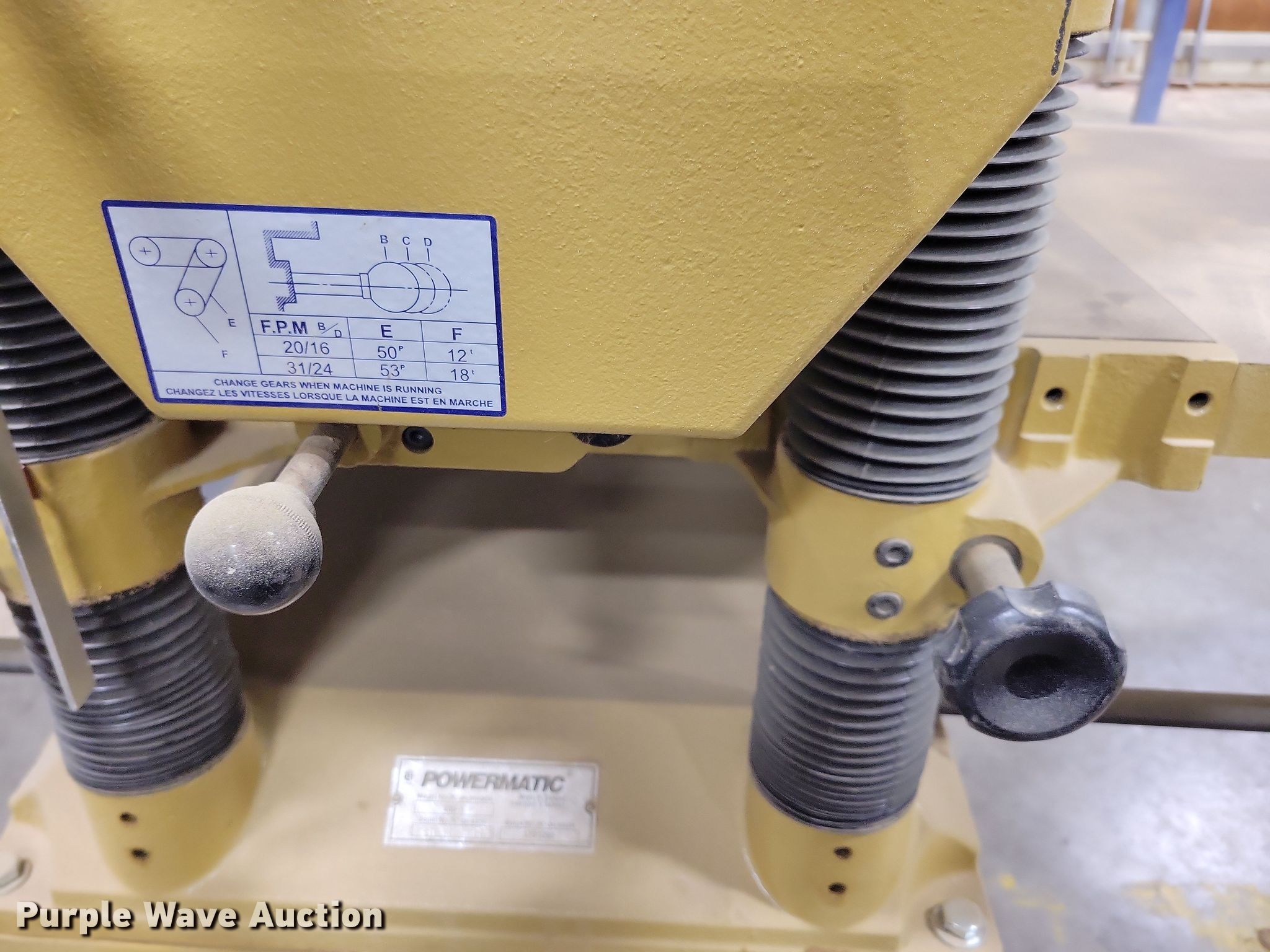 Purple Wave is selling a used Woodworking Equip. in Iowa. This item is a Powermatic planer with the following: Powermatic planer. Des Moines Public Schools. Des Moines, IA 50316