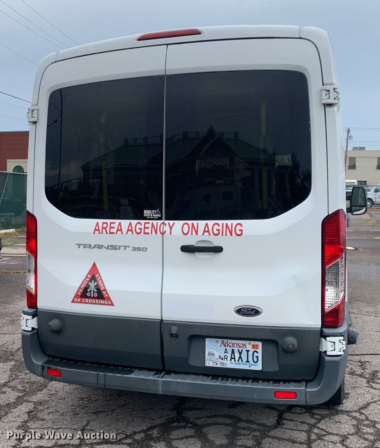 2017 Ford Transit 350 van. Miles: 205,303 on odometer, VIN: 1FBZX2CM7HKA22949. Engine Ford, Displacement: 3.7L V6 DOHC, Cylinders: 6, Fuel type: Gas. Transmission Automatic. Chassis Axles: Single, Suspension: Spring, Brakes: Hydraulic. Interior AC, Heat, Cruise control, Passengers: 5, Wheelchair lift. Tires Size: 235/65/R16. Notes Dash warning indicator: Check engine, Traction control, On board camera to be removed prior to auction. Arkansas title. Title distribution may be delayed up to 30 days from verification of funds. Area Agency on Aging of Western Arkansas, Inc.. Fort Smith, AR 72901