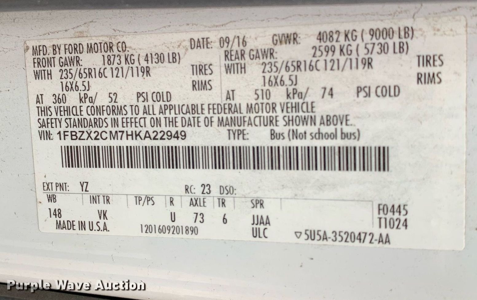 Purple Wave is selling a used Passenger Vehicle in Arkansas. This item is a 2017 Ford Transit 350 van with the following: Miles: 205,303 on odometer, VIN: 1FBZX2CM7HKA22949
