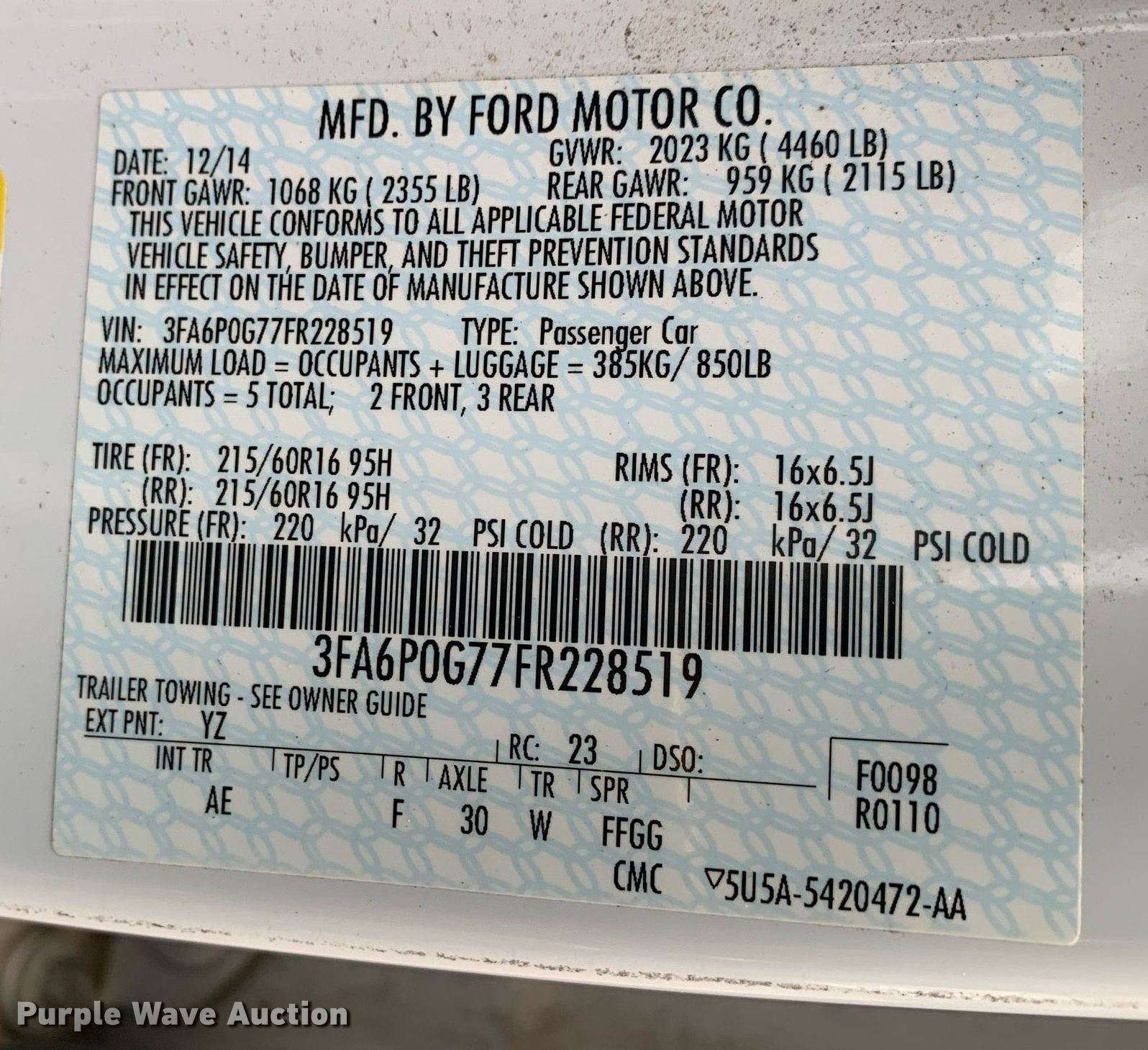 - VIN: 3FA6P0G77FR228519