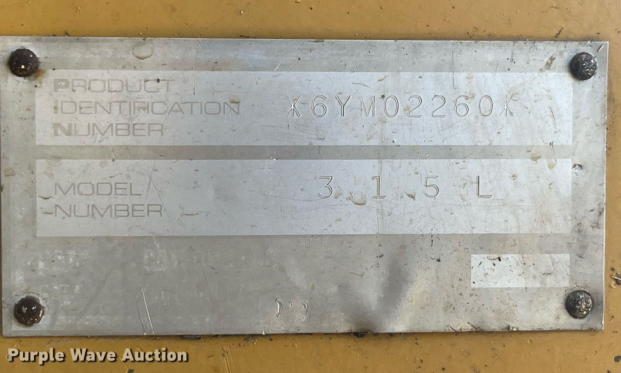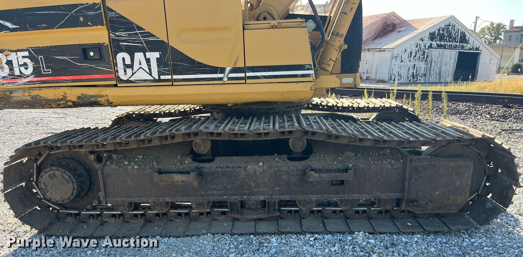 1997 Caterpillar 315L excavator. Hours: 4,851 on meter, Serial: 6YM02260. Engine Caterpillar, Serial: 5XK12402, Cylinders: 6, Fuel type: Diesel. Transmission Hydrostatic, Two speed travel. Operators station Enclosed cab, AC, Heat. Features Standard, Boom Standard, Stick Stick length: 10' 2", Bucket Caterpillar, Width: 41", Teeth: 6. Tracks Width: 27.5", Steel, Grouser pads: Triple. Notes Front glass replaced with plexi glass. Monroe County. Paris, MO 65275