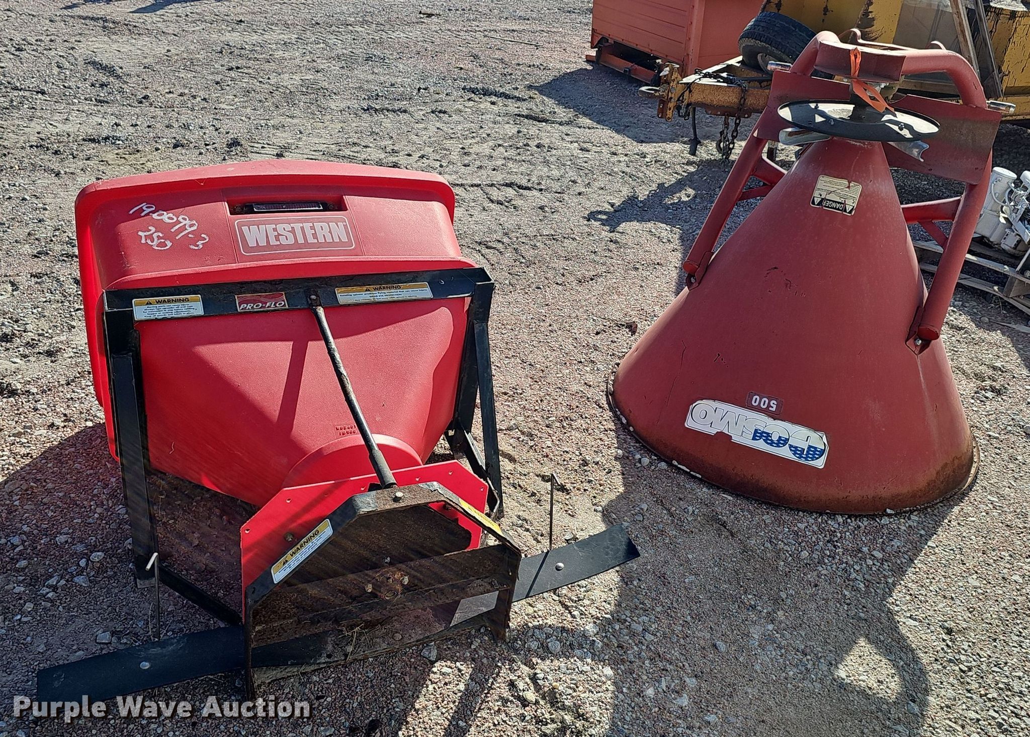 Purple Wave is selling a used Other Attach. or Equip. in Nebraska. This item is a (2) spreaders with the following: Cosmo 500, Serial: 1001013867, PTO: 540, Western Pro-Flo spreader