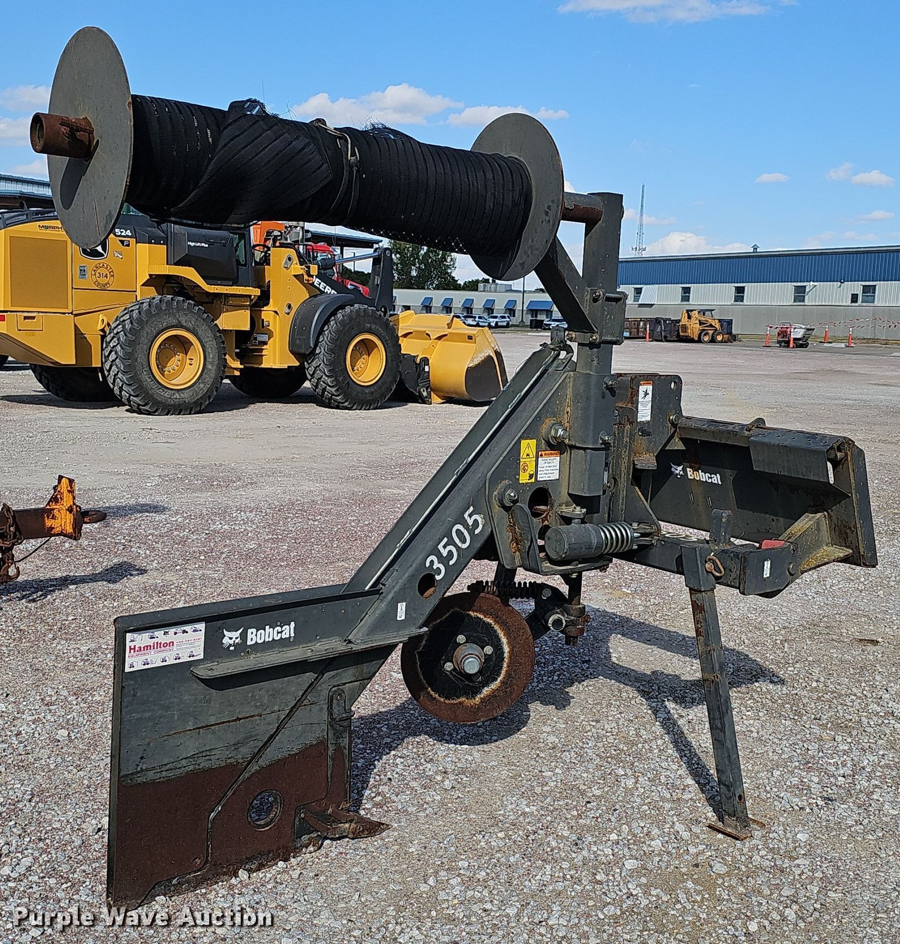 Purple Wave is selling a used Skid Steer Attach. in Nebraska. This item is a Bobcat skid steer fence installer with the following: Serial: A74W00220, Roll capacity: 43" W