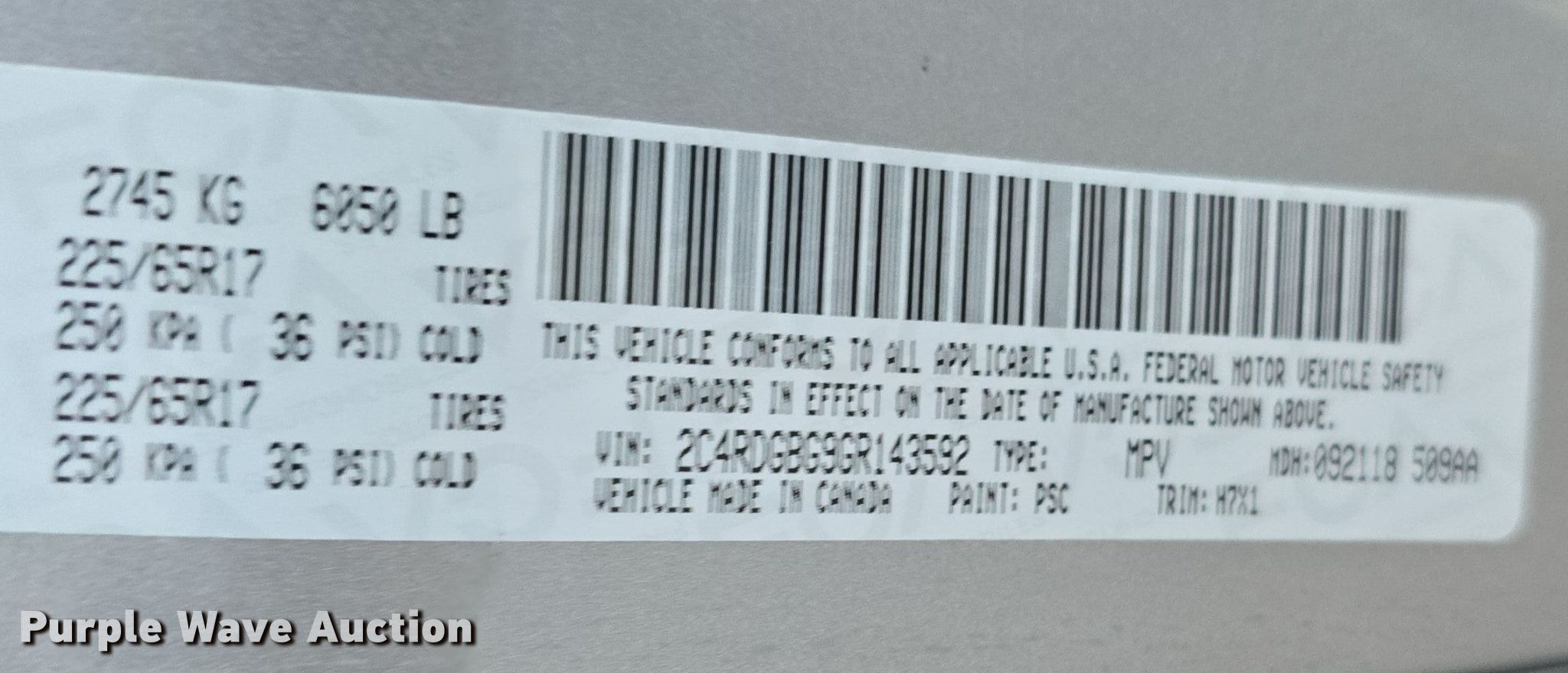 - VIN: 2C4RDGBG9GR143592