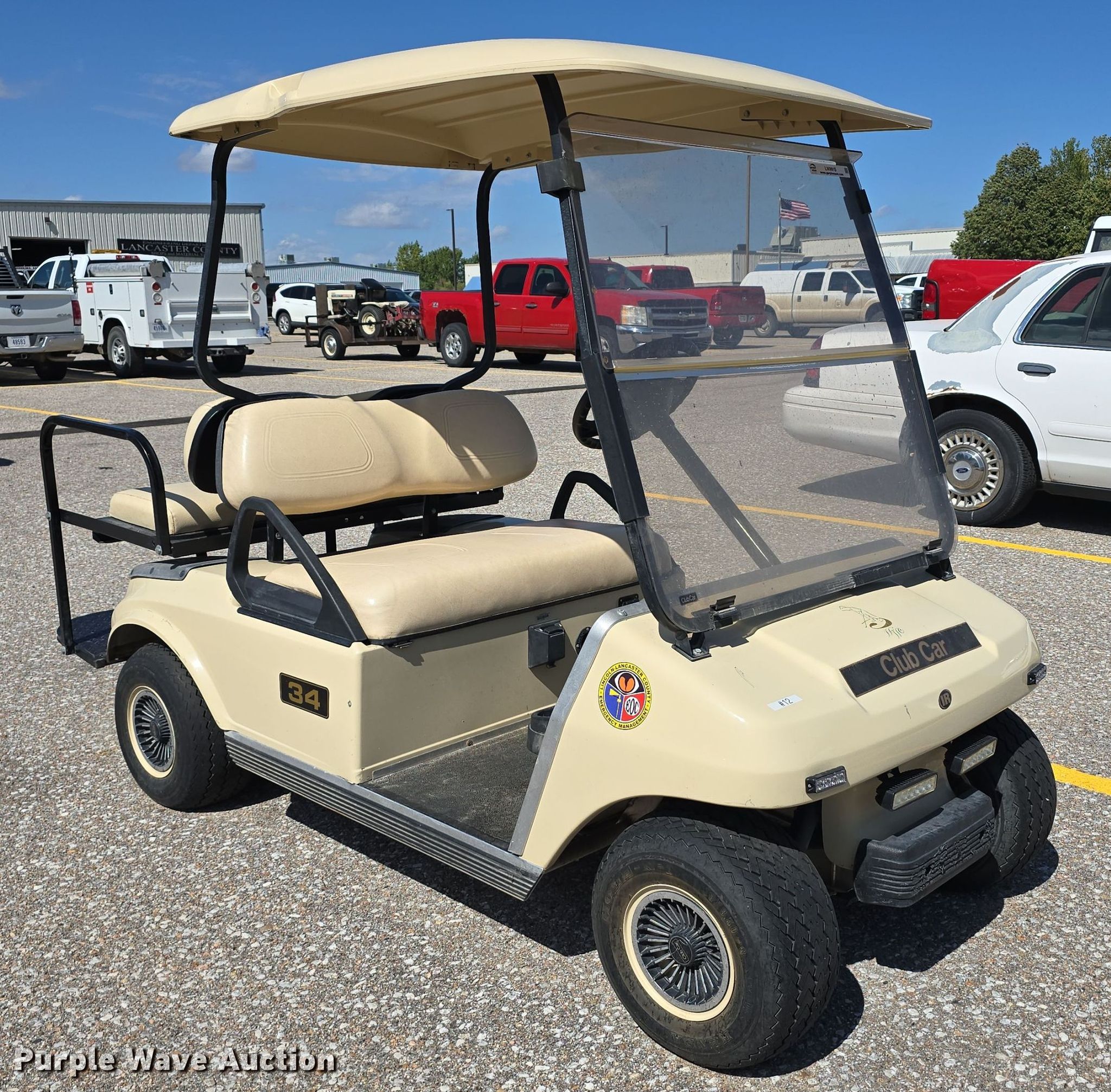 2006 Club Car 34 golf cart. Serial: AQ0639-684617. Electric Motor Volts: 72. Transmission Hydrostatic. Operators station Canopy. Tires Size: 18x8.50-8. Notes Dead battery, Non-operational unit. Lancaster County Engineers Office. Lincoln, NE 68528
