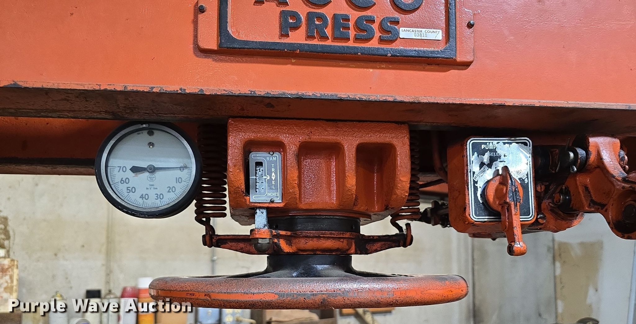 Purple Wave is selling a used Machine Shop Tools and Equip. in Nebraska. This item is a Acco Press press with the following: 57.5" L x 36" W x 80" H