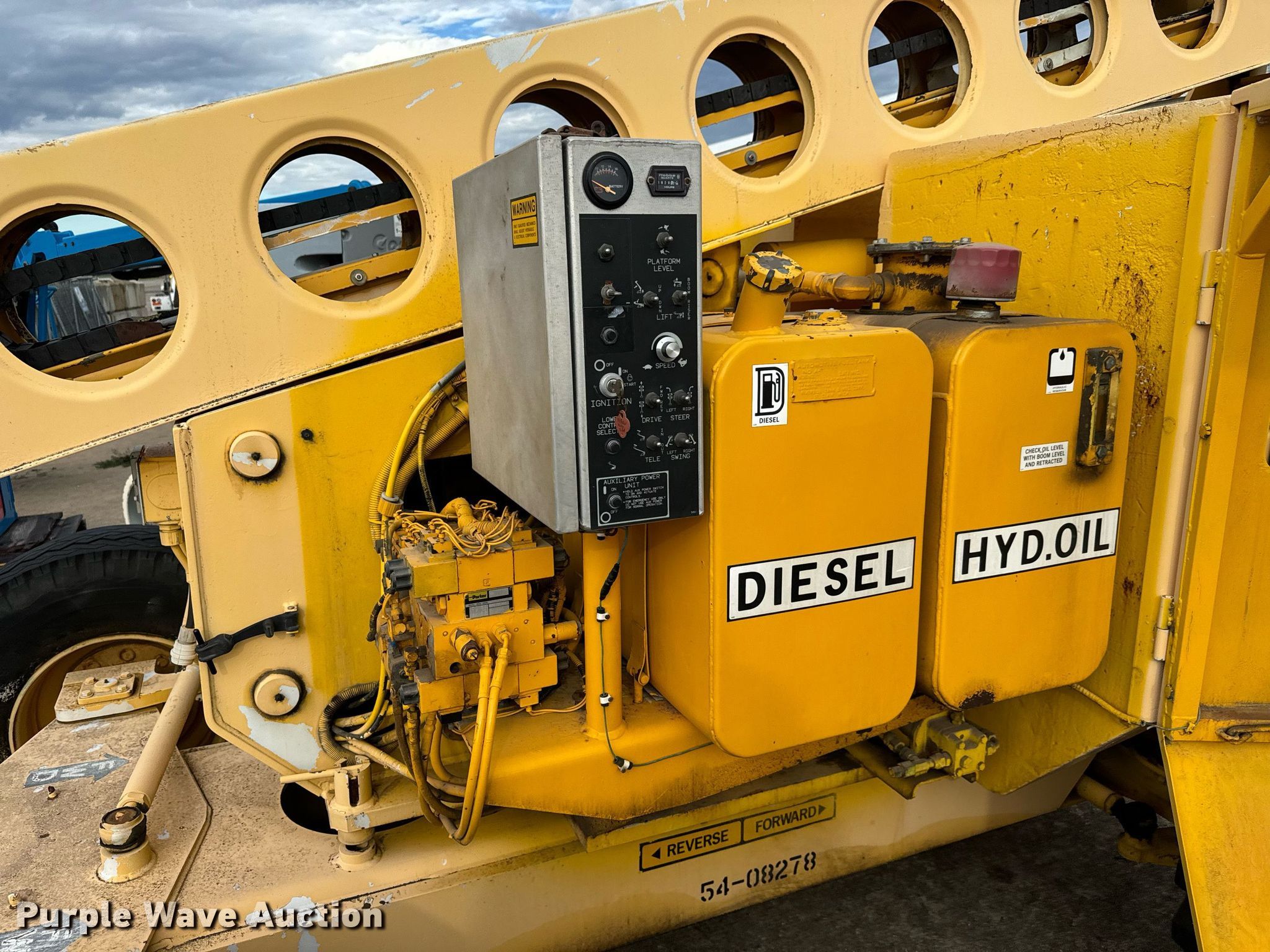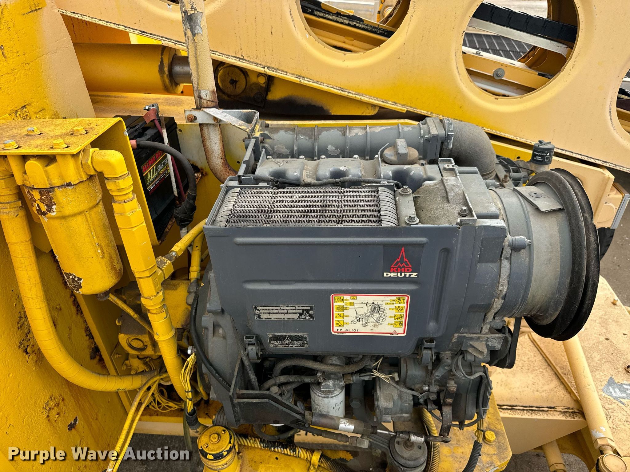 1992 Grove AMZ66 boom lift. Hours: 1,821 on meter, Serial: 26925. Engine Deutz F3L1011, Serial: 8038832, Cylinders: 3, Fuel type: Diesel, kW: 26. Features Boom type: Telescopic, Maximum lift capacity: 500 lbs, Platform: 72" L x 35" W, AC power outlet, Controls: Platform, Ground. Tires Tire size: 15-19.5. Notes Platform control electrical issues, Batteries missing, Unknown operating condition. Salina Airport Authority. Salina, KS 67401