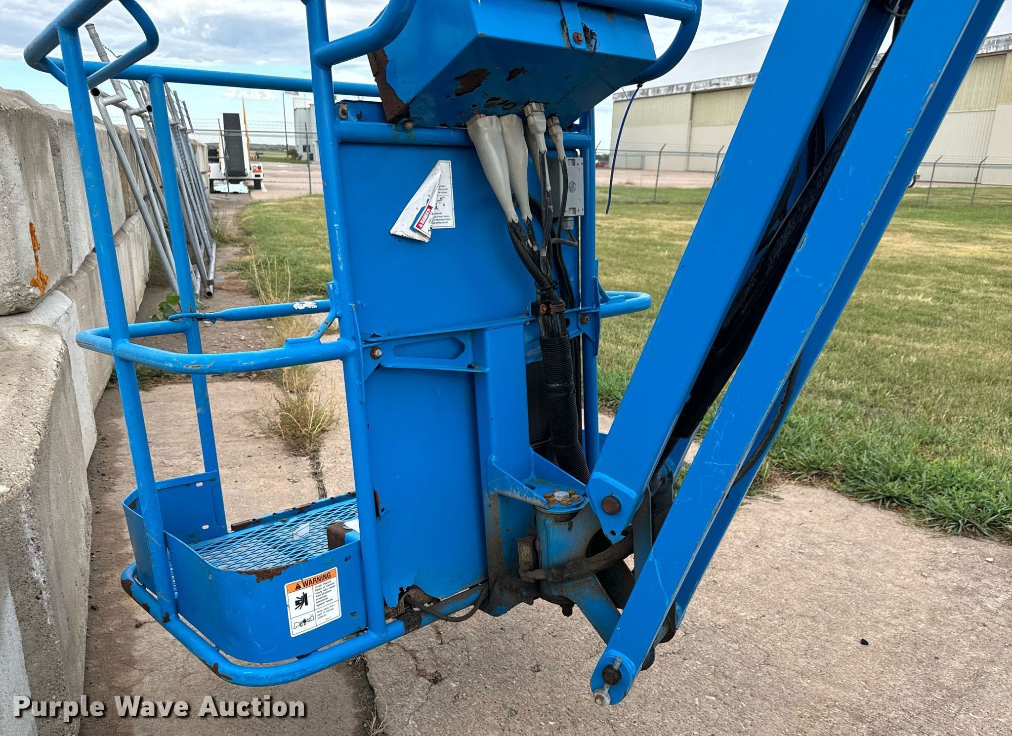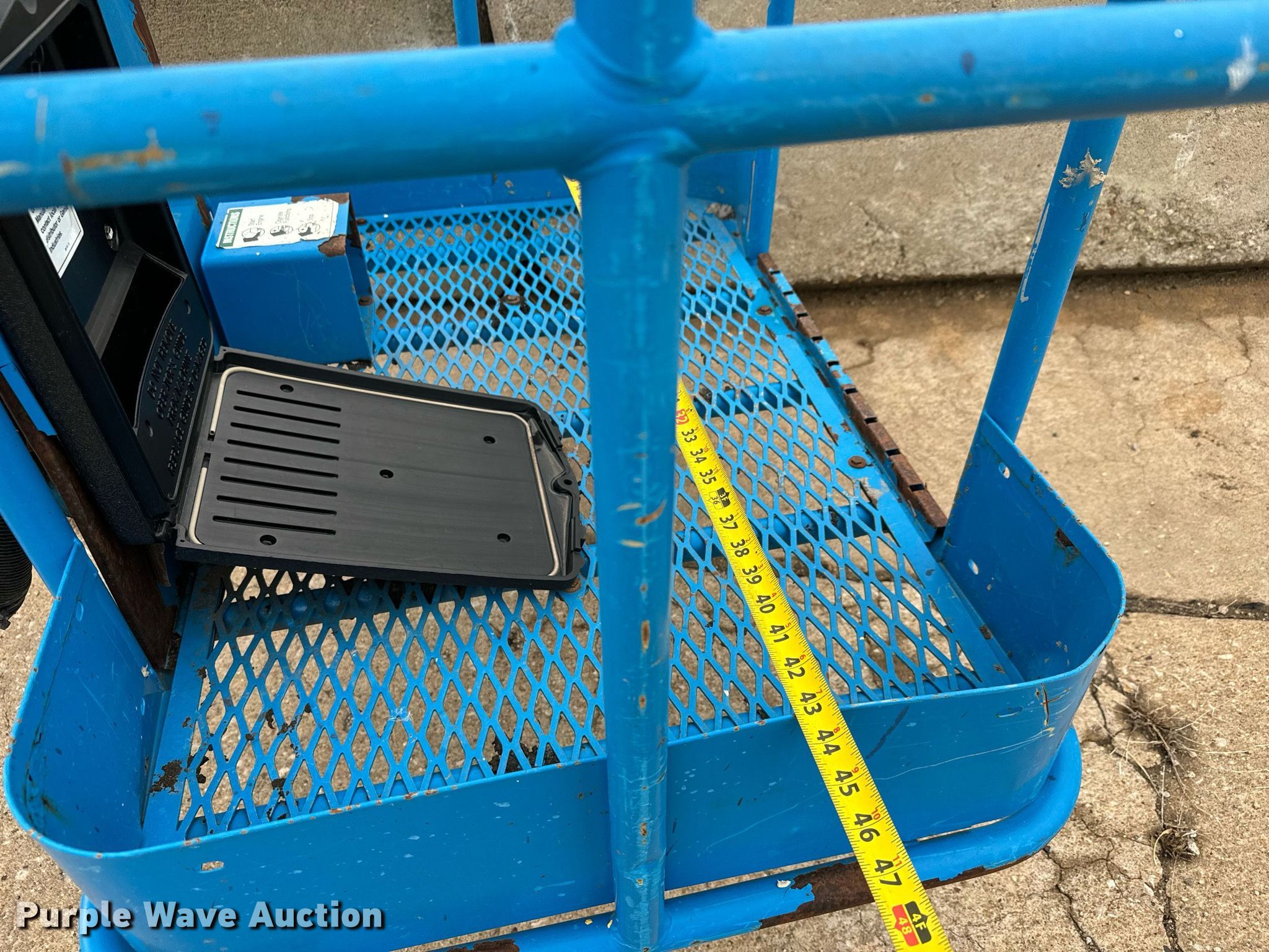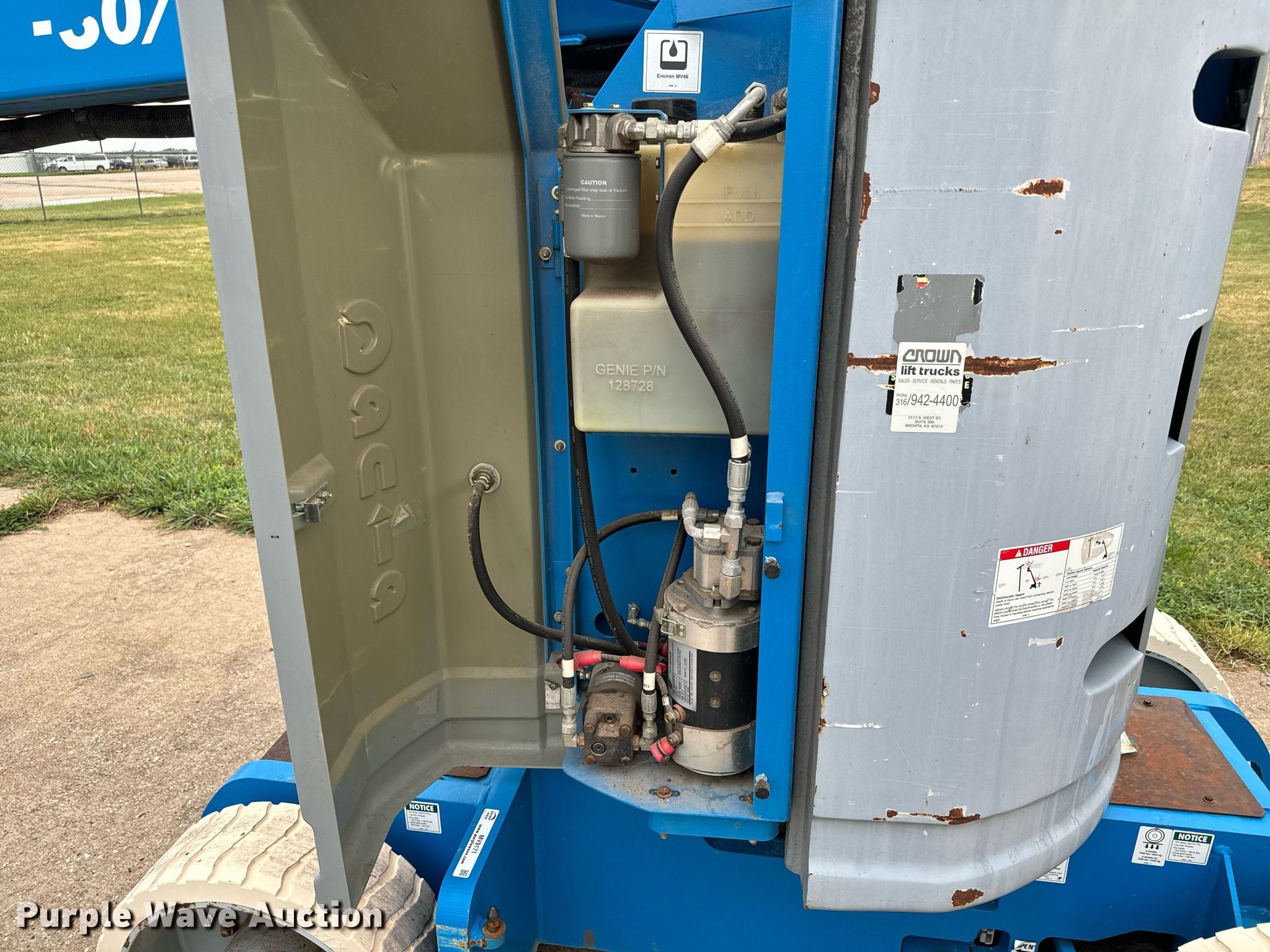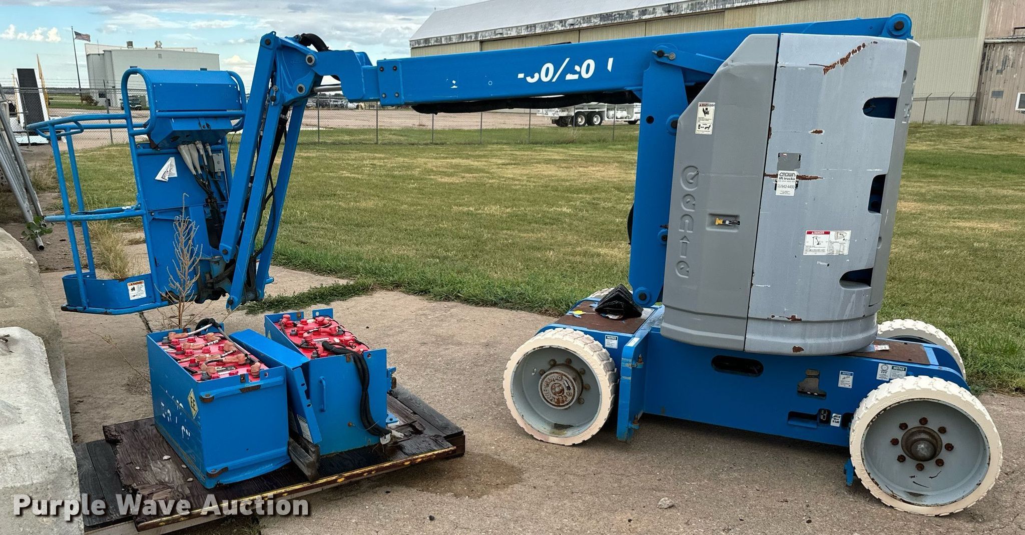 2010 Genie Z-30/20N boom lift. Hours: 239 on meter, Serial: Z30N10-12087. Electric Motor General Electric 5BCG53HA100, Volts: 48. Features Boom type: Articulating, Maximum lift capacity: 500 lbs, Maximum reach length: 21', Maximum lift height: 30', Hydraulic extendable jib, Hydraulic leveling, Platform: 44" L x 25" W, AC power outlet, Controls: Platform, Ground, Platform rotation: Hydraulic. Tires Tire size: 22x7x17-3/4, Solid. Notes Dead battery, Unknown operating condition. Salina Airport Authority. Salina, KS 67401
