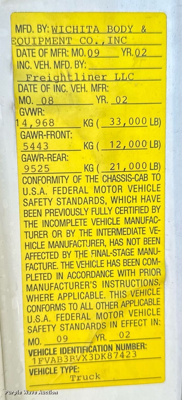 Purple Wave is selling a used Box Truck in Kansas. This item is a 2003 Freightliner FC70 box truck with the following: Miles: 115,323 on odometer, VIN: 1FVAB3BVX3DK87423