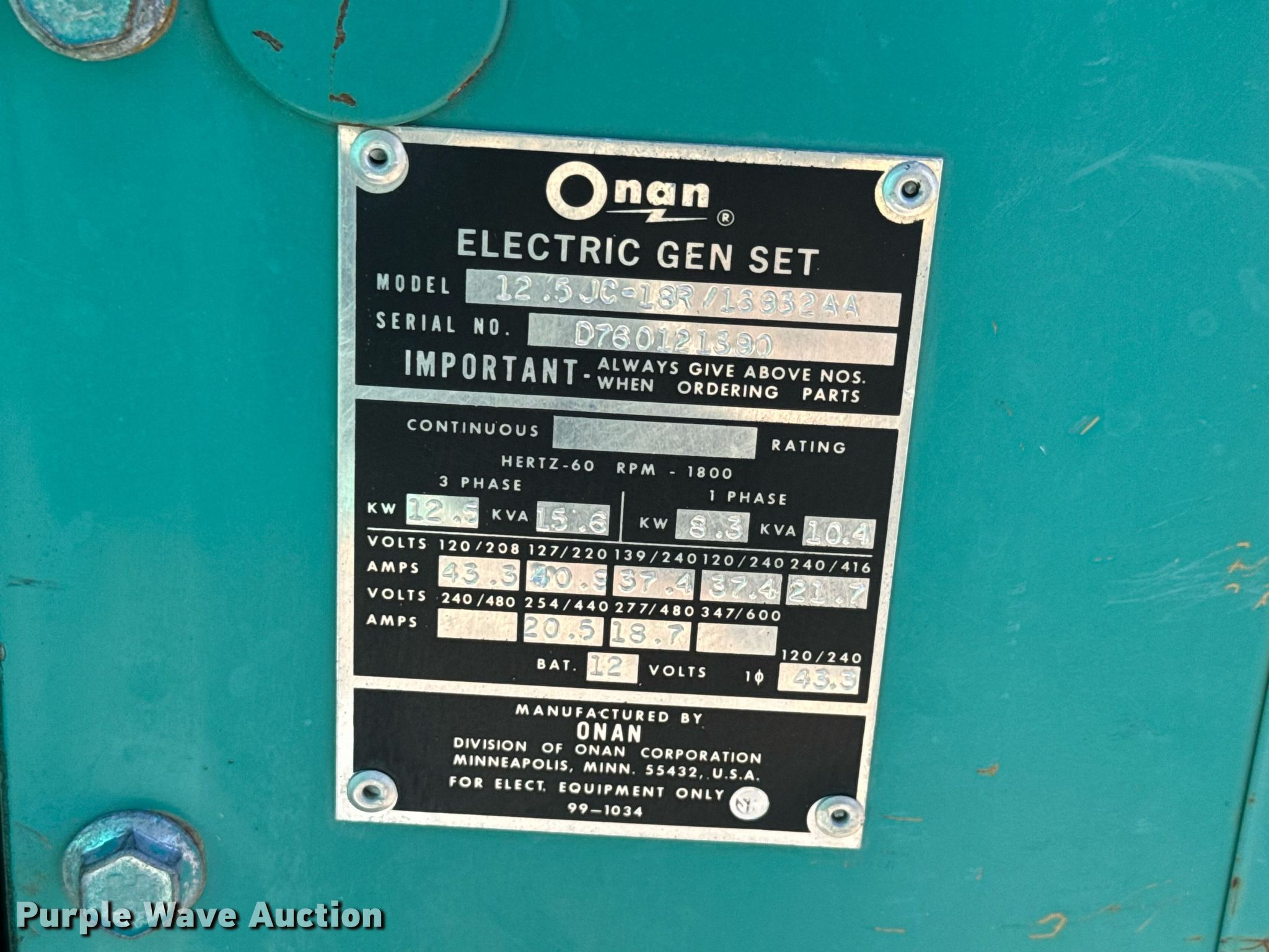 Onan 12.5JC-18R/16932AA generator | SOLD! October 22 Government Auction