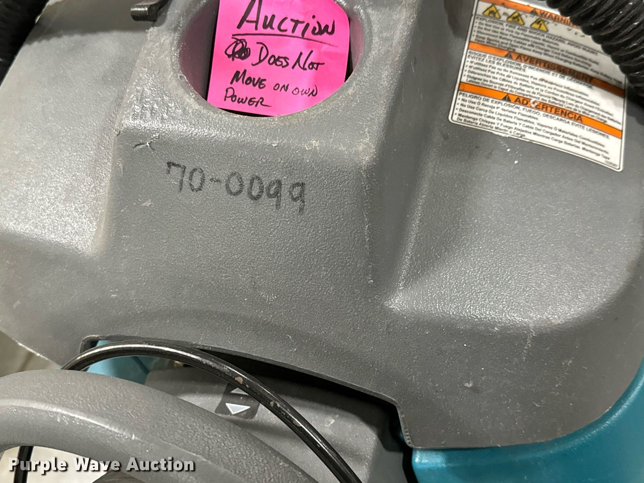(3) Tenant floor scrubbers. 2012 Tennant T5. Hours: 1,204 on meter, Serial: 902035. Notes Batteries missing, Unknown operating condition. 2013 Tennant T5 Hours: 798 on meter, Serial: 1059633. Notes Dead batteries, Electric issues, does not move, Unknown operating condition. Tennant Speed Scrub 2001 Serial: 612943-10190036. Electric Motor Volts: 24. Notes Dead batteries, Unknown operating condition. Wichita Public Schools - USD 259. Wichita, KS 67219