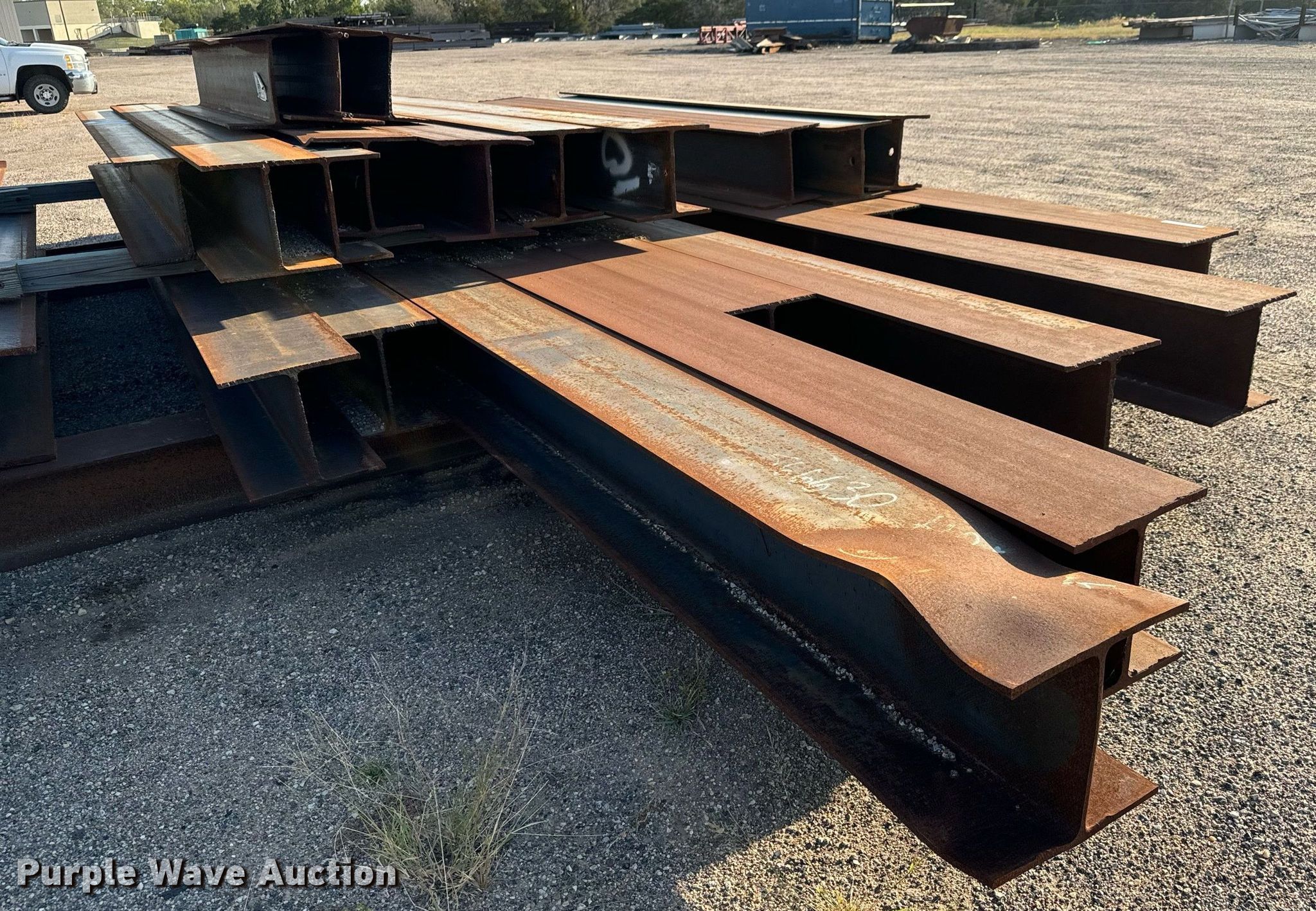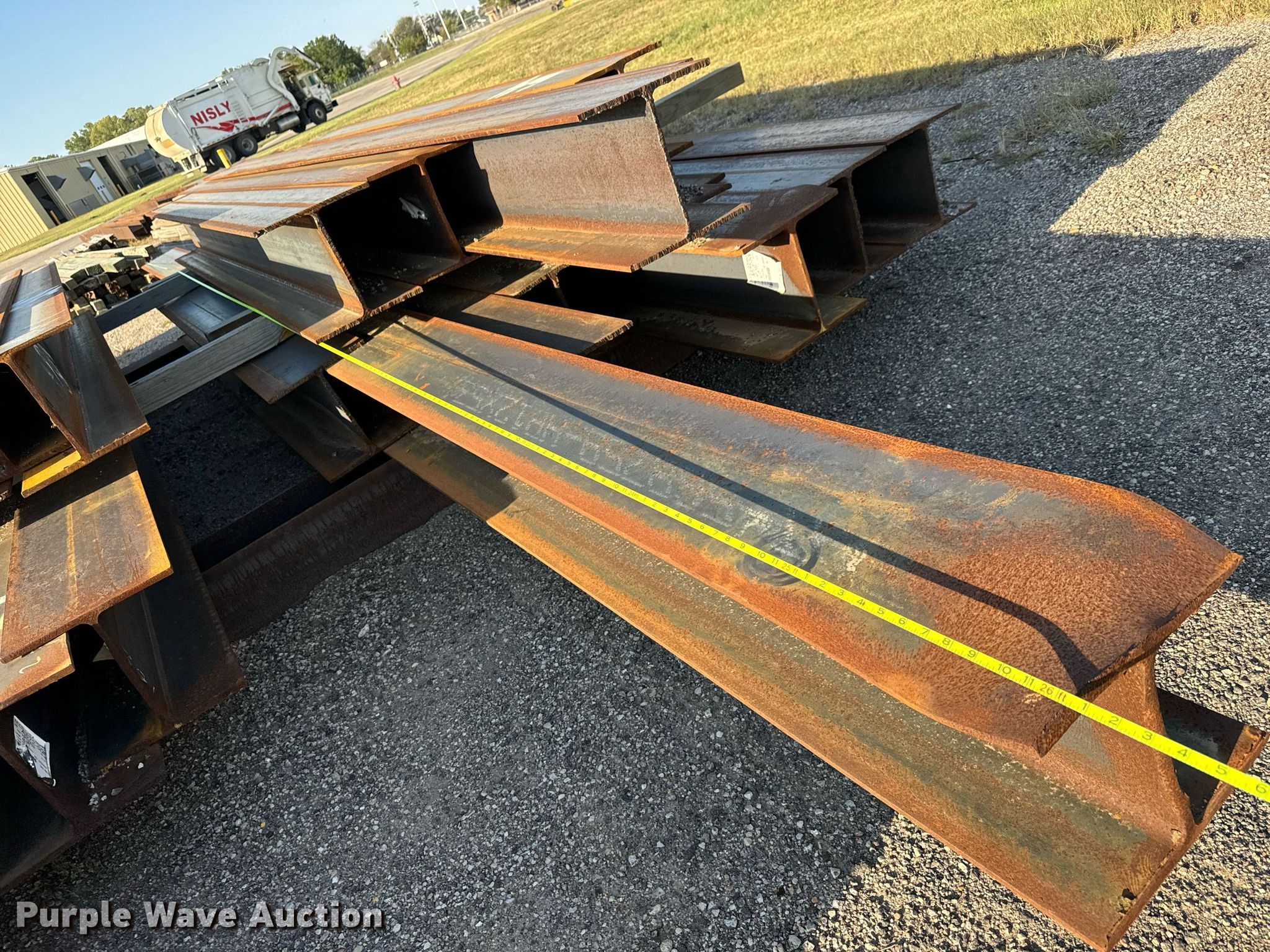 Purple Wave is selling a used Building Materials in Kansas. This item is a Approximately 37 I-beams with the following: Lengths: 6' to 26'