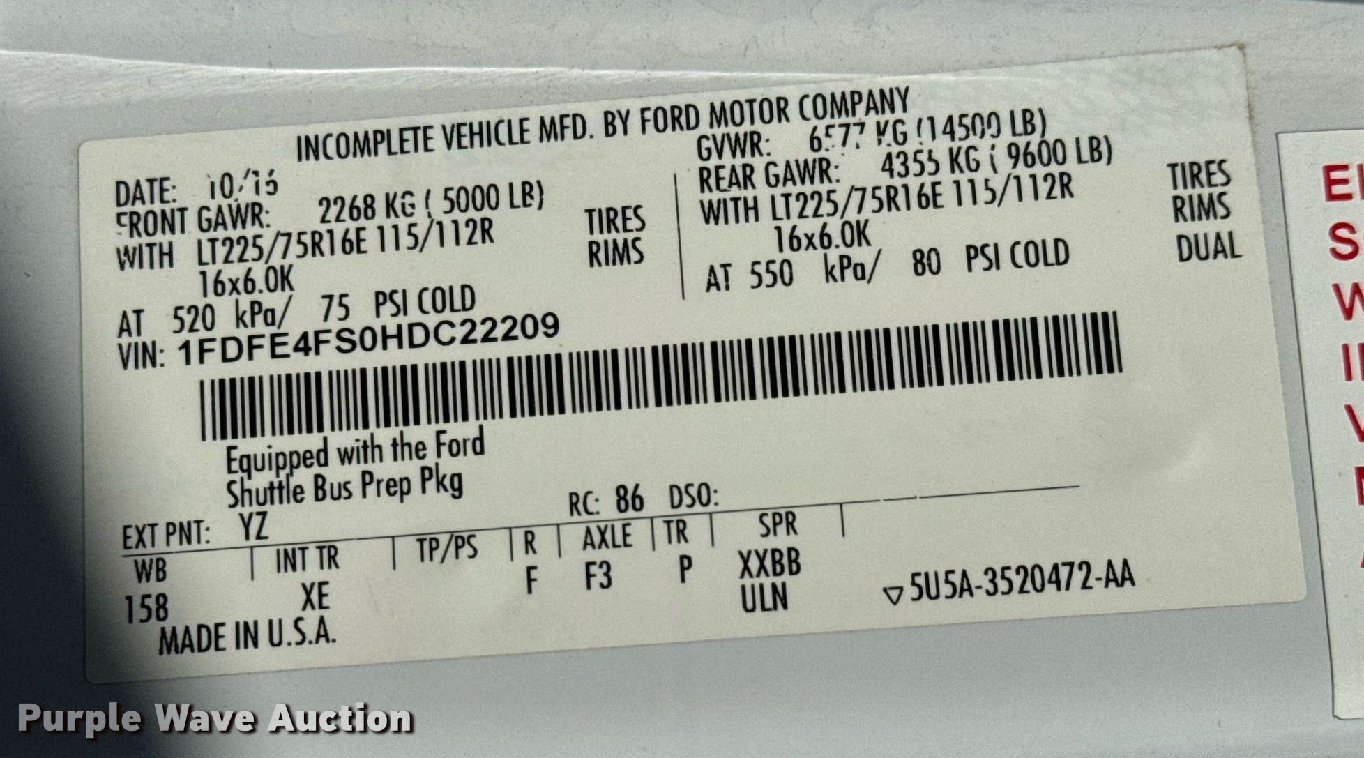 - VIN: 1FDFE4FS0HDC22209
