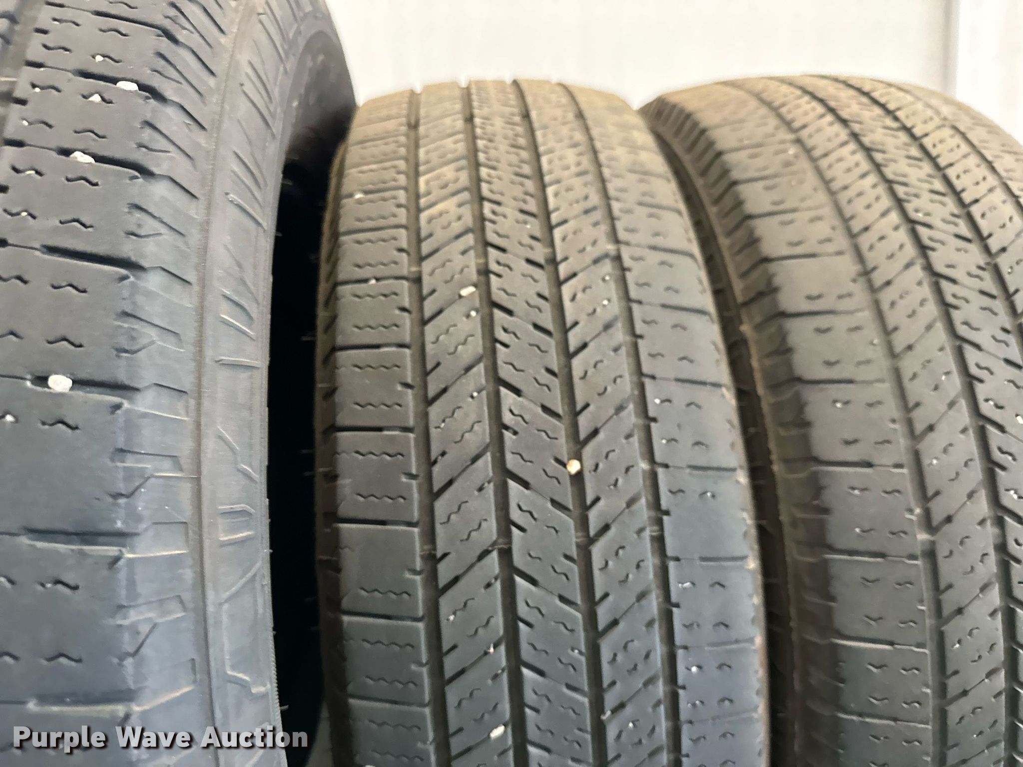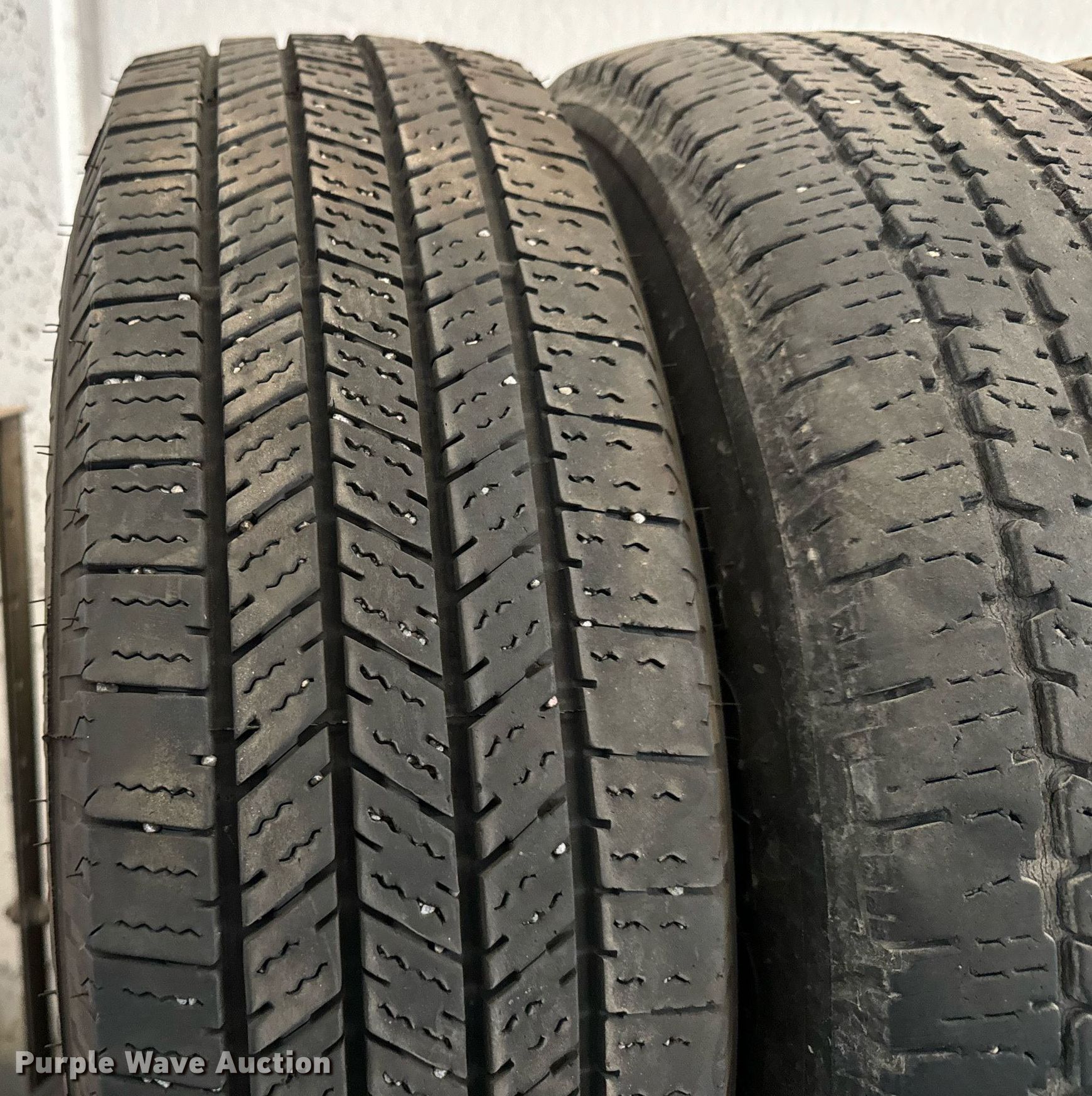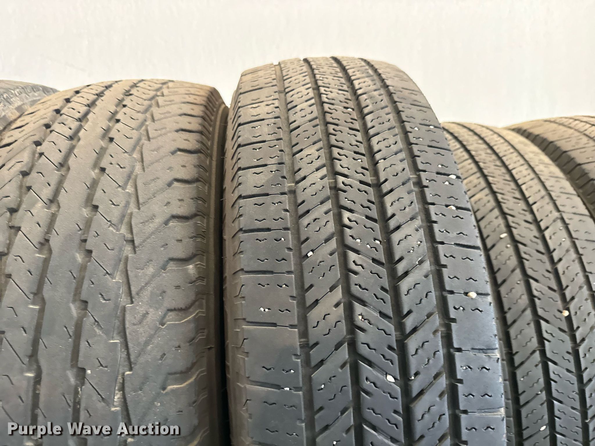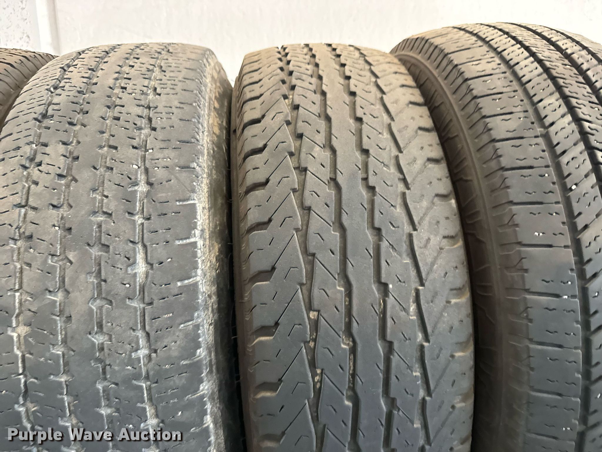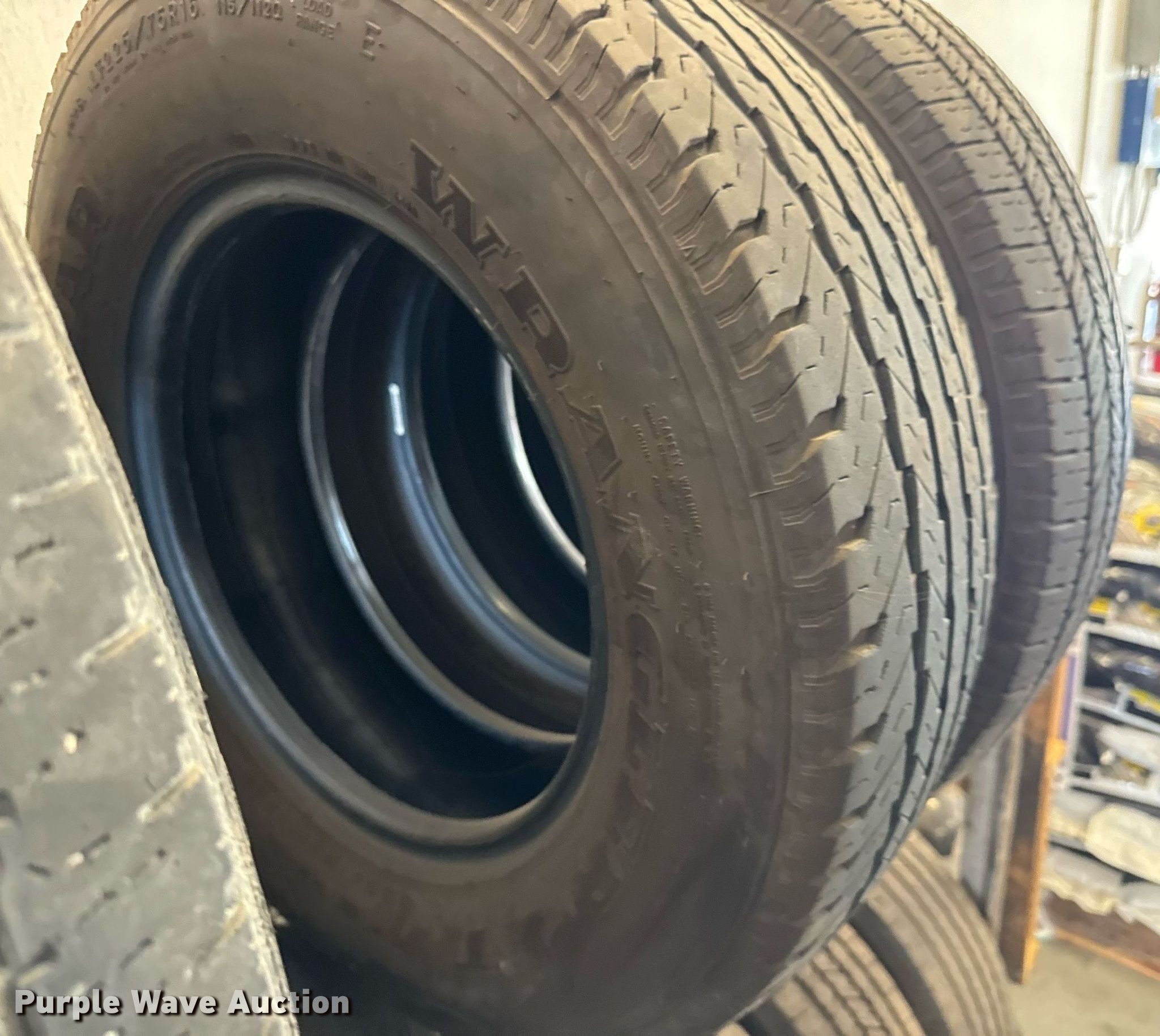 Purple Wave is selling a used Fleet Tires in Kansas. This item is a (15) 225/75R16 tires with the following: Rack not included