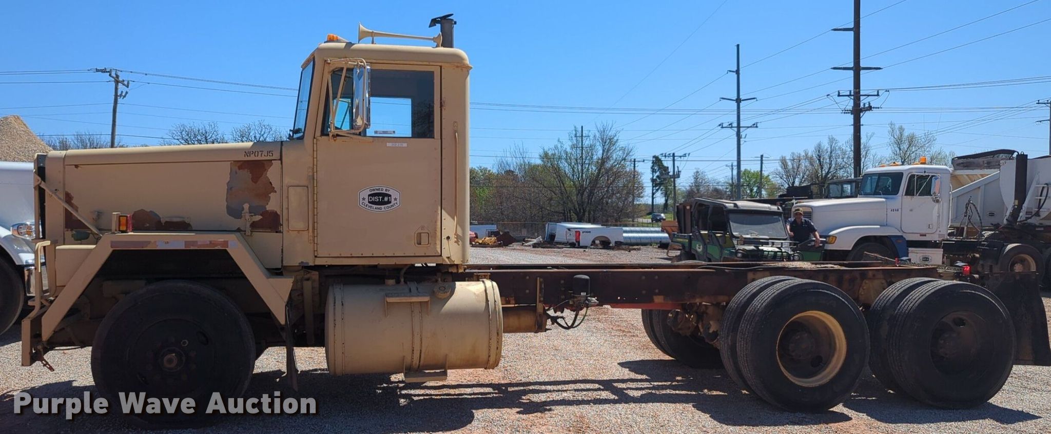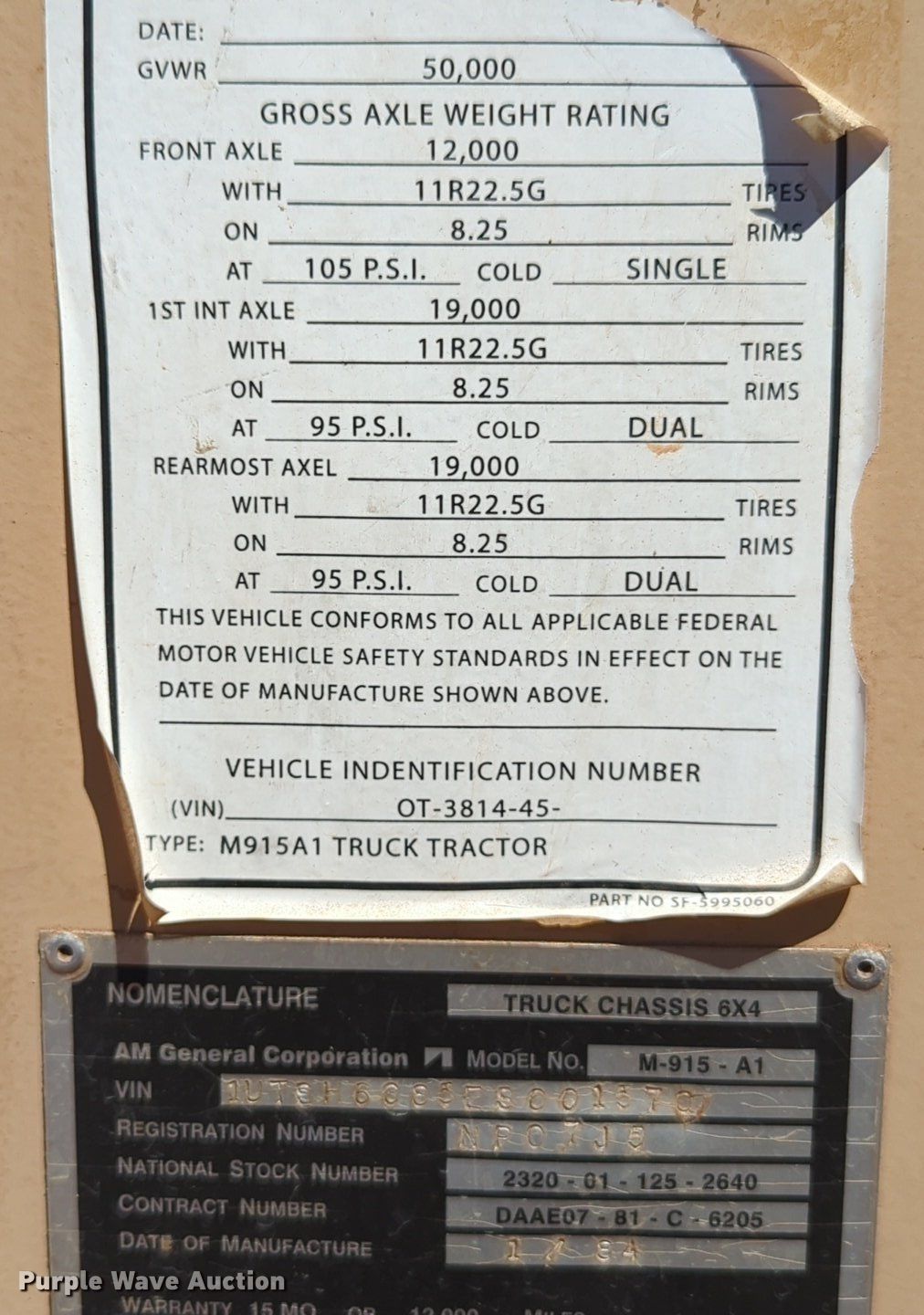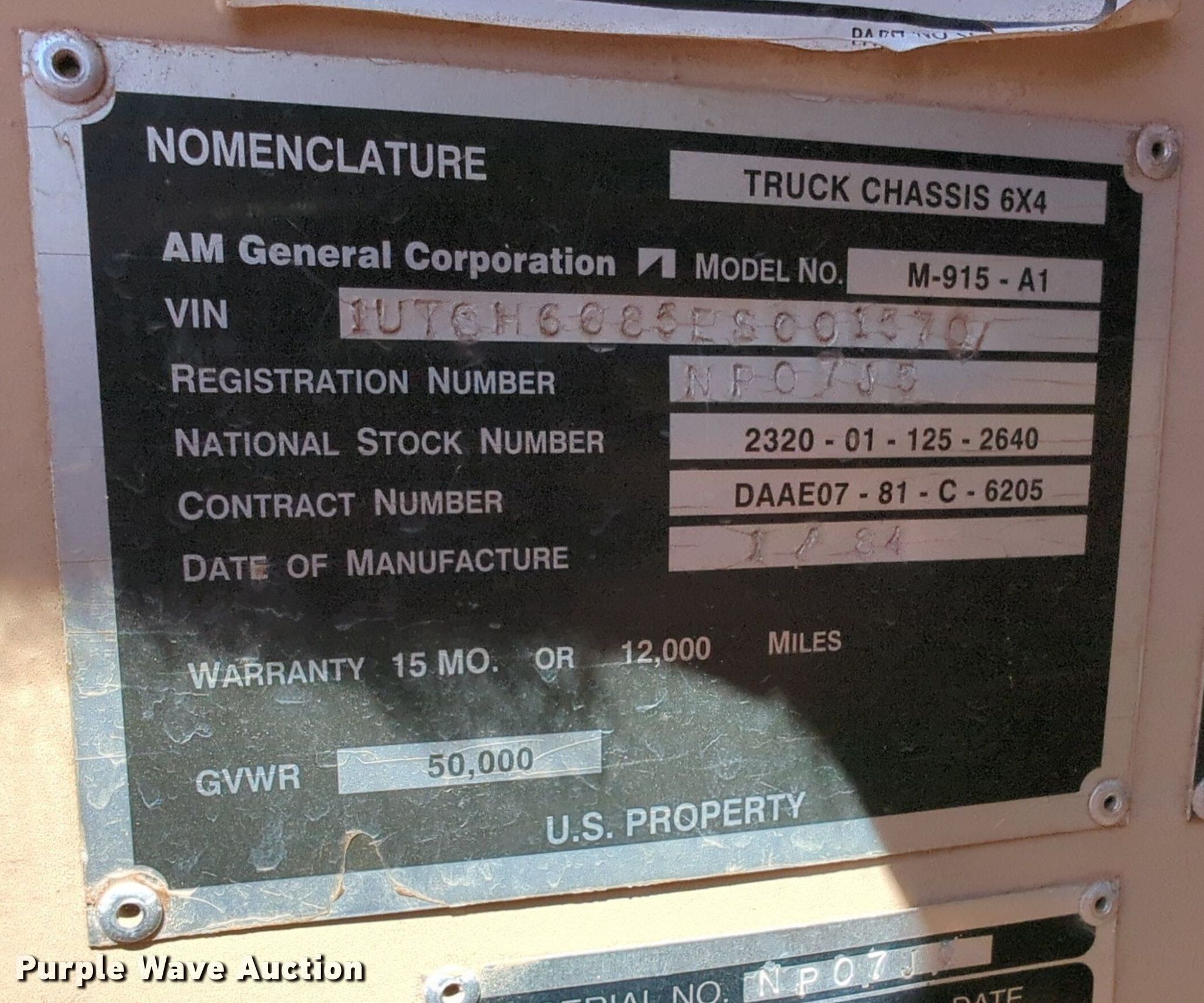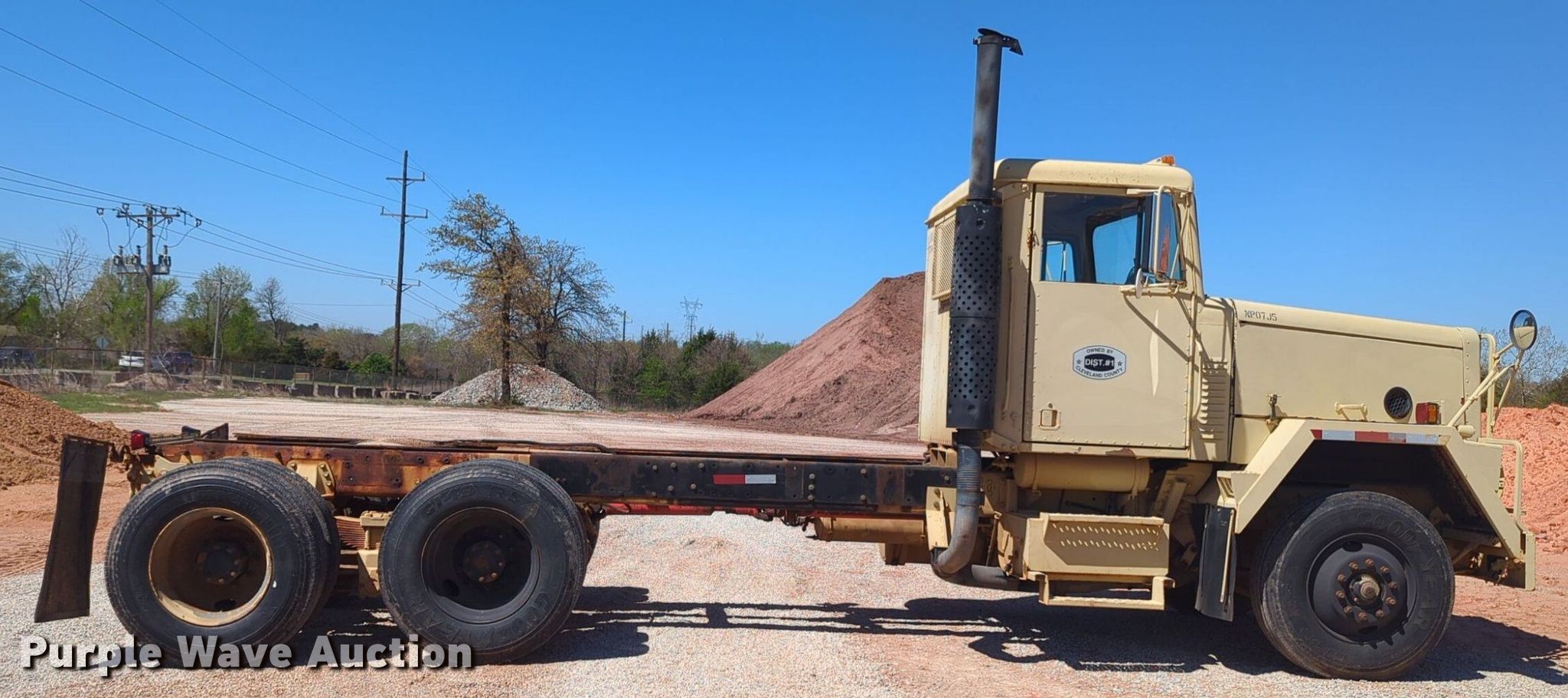 Purple Wave is selling a used Truck Chassis in Oklahoma. This item is a 1984 AM General M-915-A1 truck cab and chassis with the following: Miles: 131,036 on odometer, VIN: 1UTSH6685ES001570