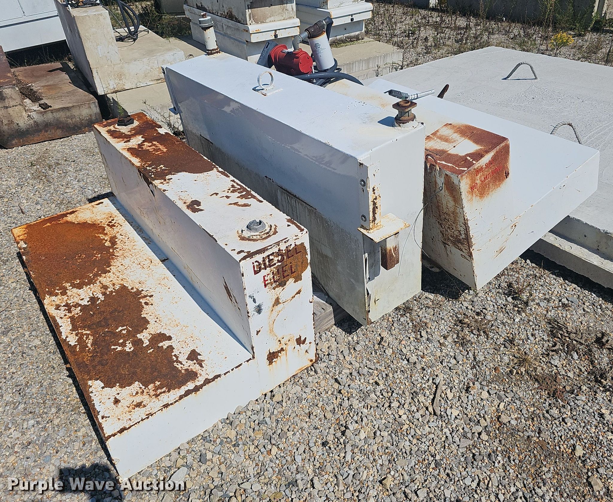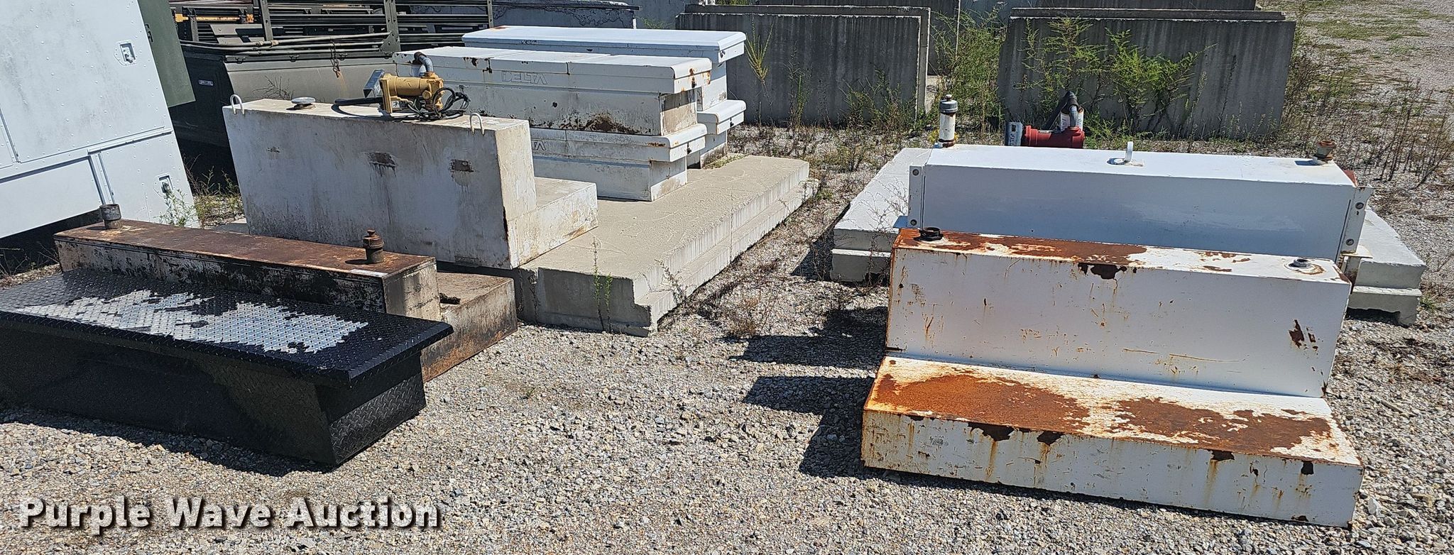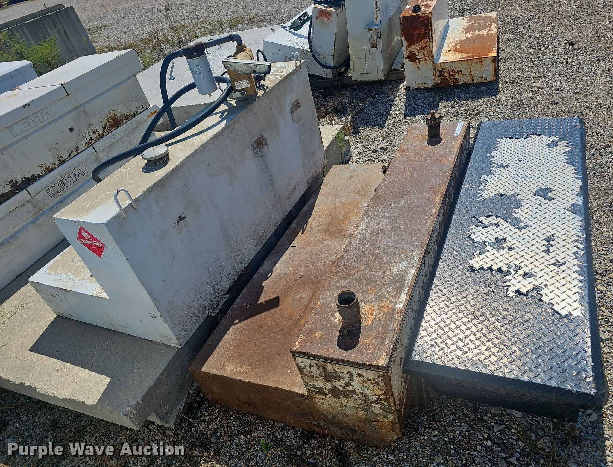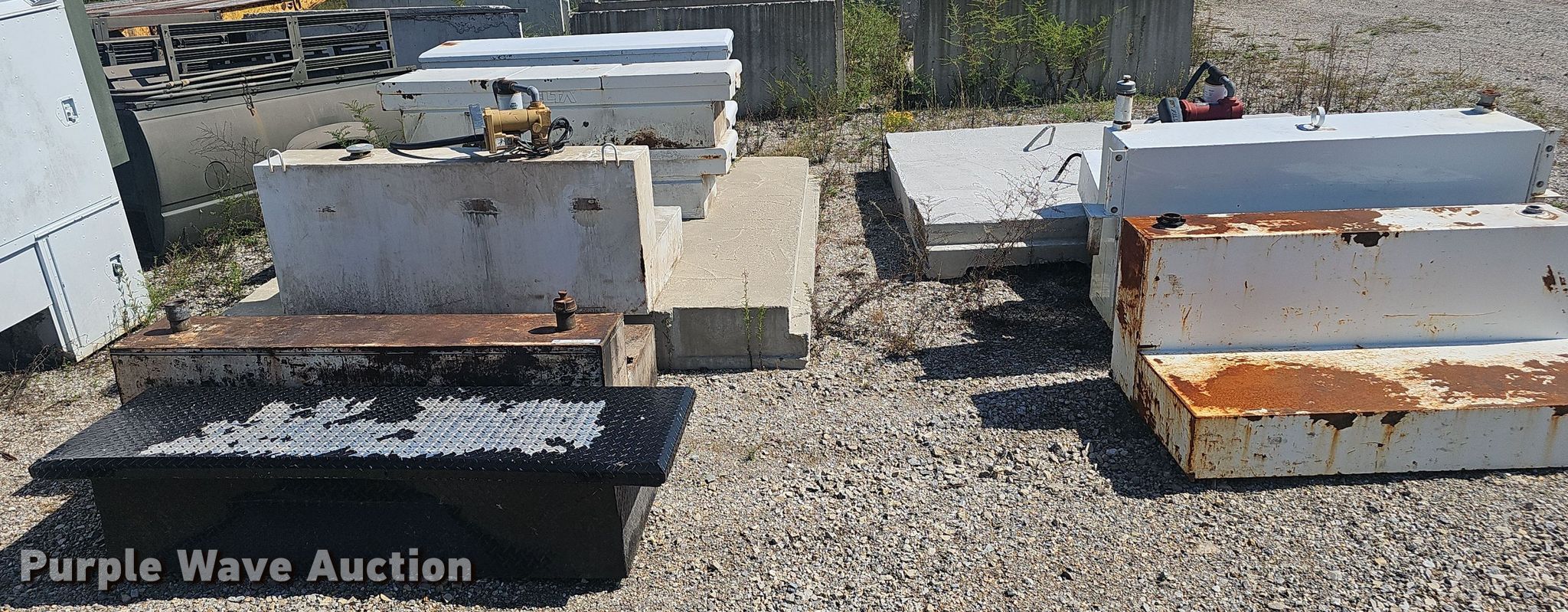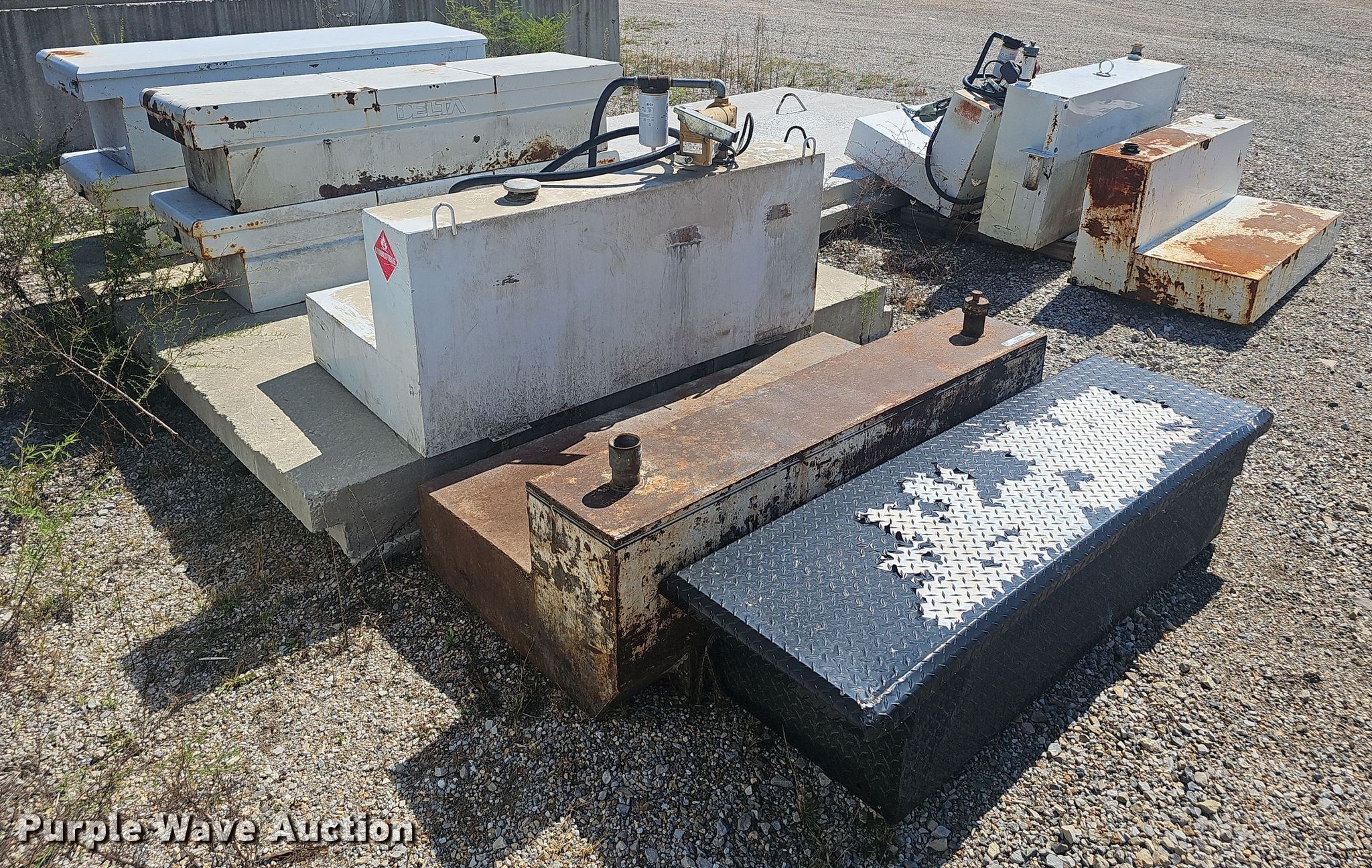 Purple Wave is selling a used Automotive Parts or Acces. in Arkansas. This item is a Automotive accessories with the following: (5) fuel tanks, (5) toolboxes, (2) pumps, Unknown operating condition