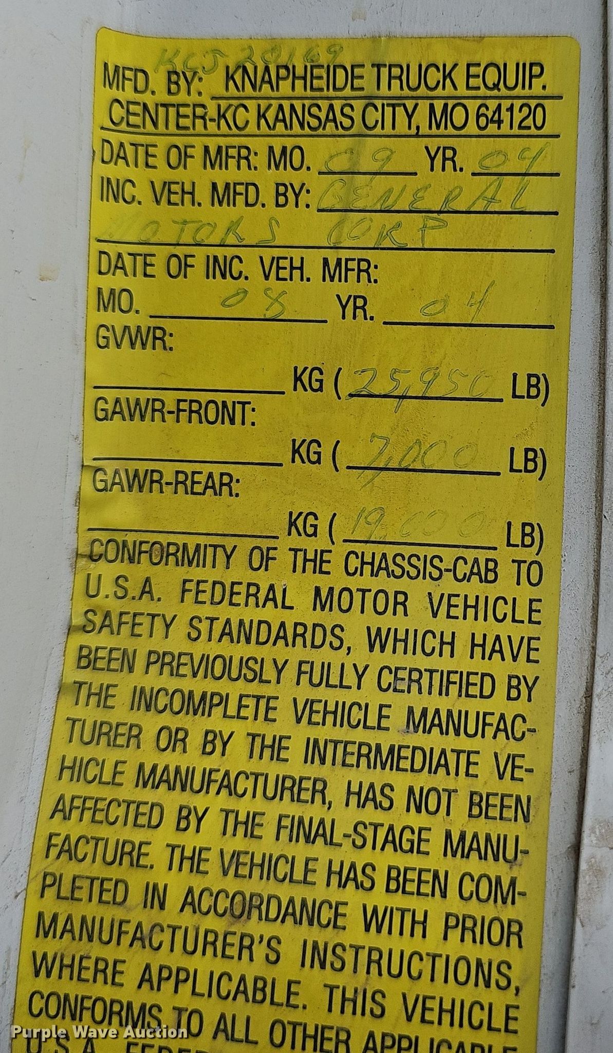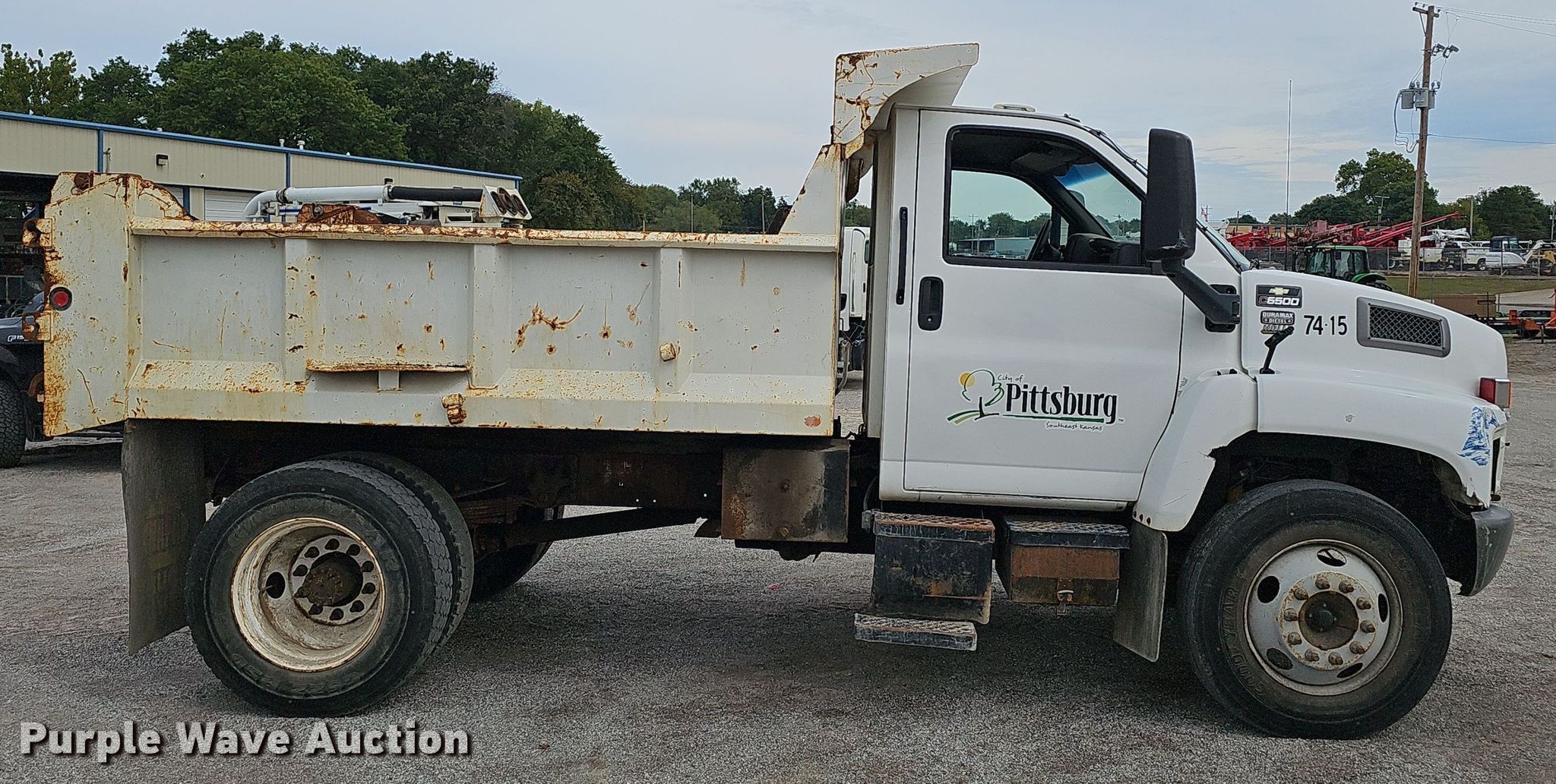 2005 Chevrolet C6500 dump truck. Miles: 87,496 on odometer, VIN: 1GBJ6C1385F503717. Engine Displacement: 7.8L, Cylinders: 8, Fuel type: Diesel. Transmission Automatic. Chassis Axles: Single, Suspension: Spring, Brakes: Hydraulic, PTO, GVWR: 25,950 lbs FAWR: 7,000 lbs, RAWR: 19,000 lbs. Interior AC, Heat, Cruise control. Features Dump bed 10' L x 96" W, Side height: 24", Bed type: Steel, Ram: Single, End gate: Manual. Tires Front: 10R22.5, Rear: 11R22.5. Notes Transmission designed to not go into park , End gate missing, Windshield chipped or cracked, Non-operational dump bed. Kansas title. Title distribution may be delayed up to 14 days from verification of funds. City of Pittsburg. Pittsburg, KS 66762