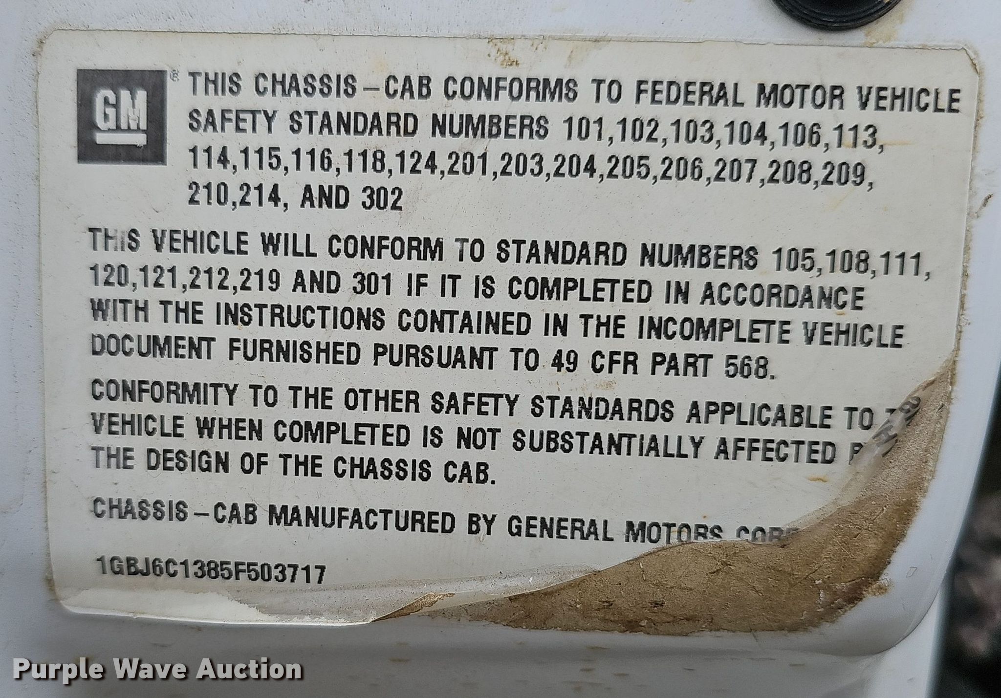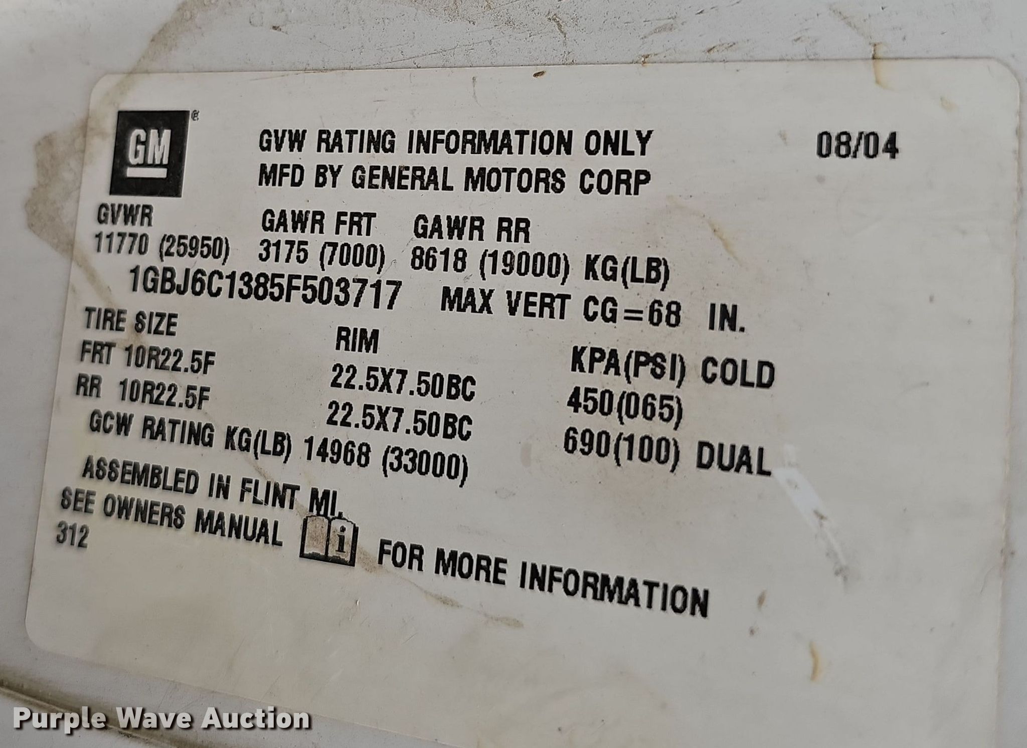 Purple Wave is selling a used Construction Dump Truck in Kansas. This item is a 2005 Chevrolet C6500 dump truck with the following: Miles: 87,496 on odometer, VIN: 1GBJ6C1385F503717