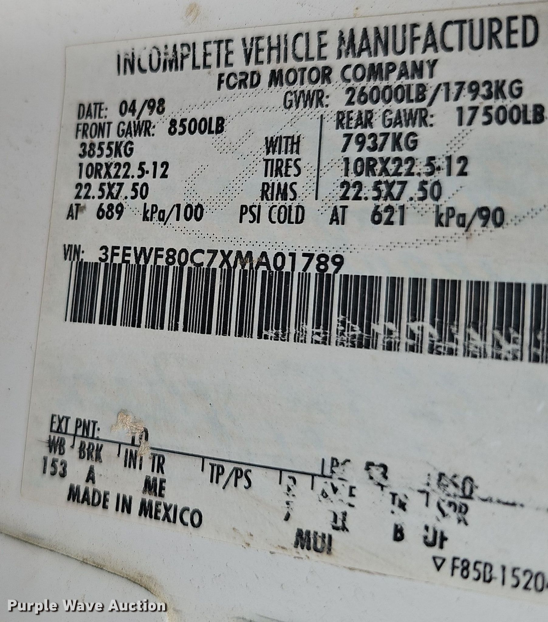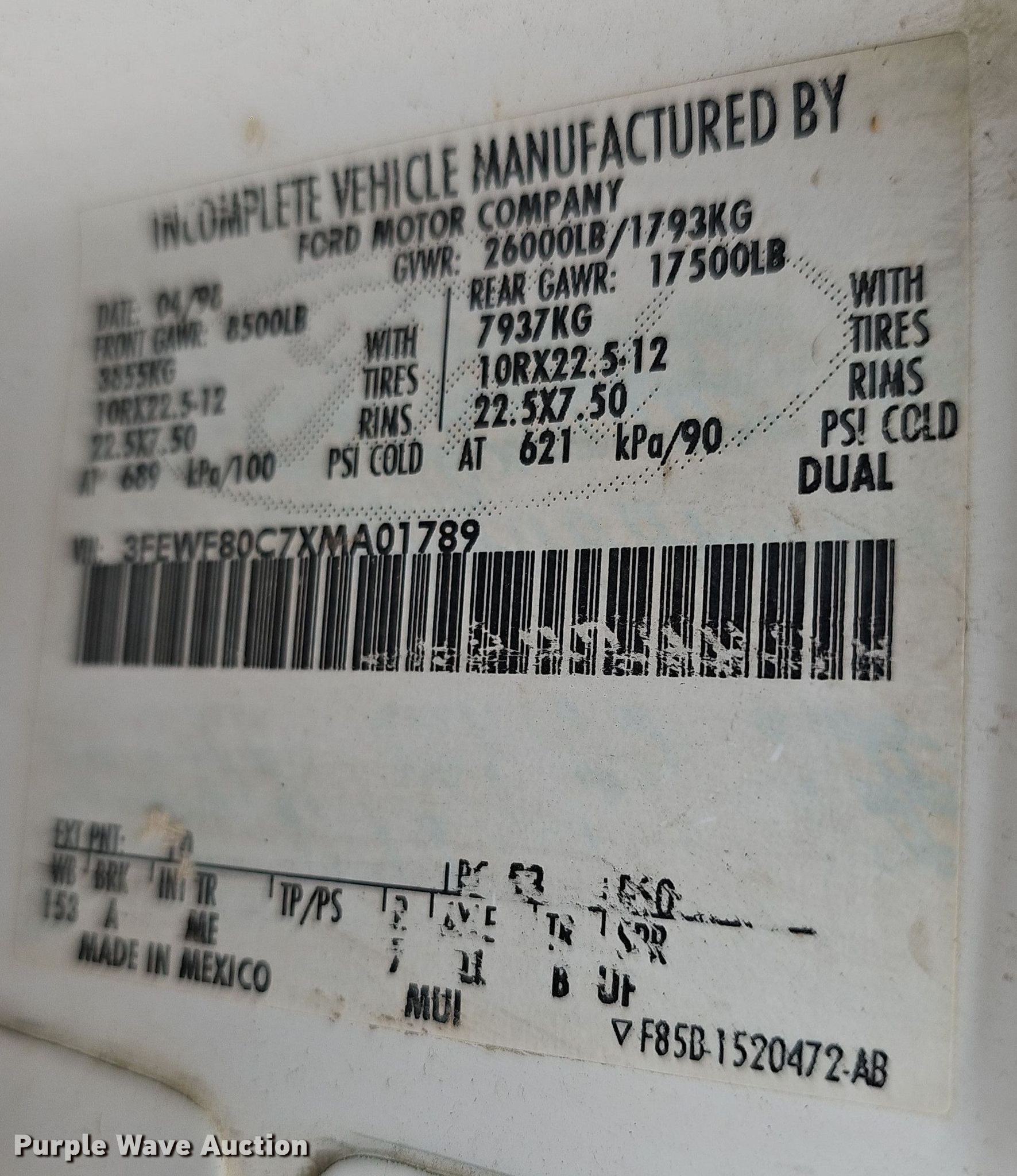 - VIN: 3FEWF80C7XMA01789