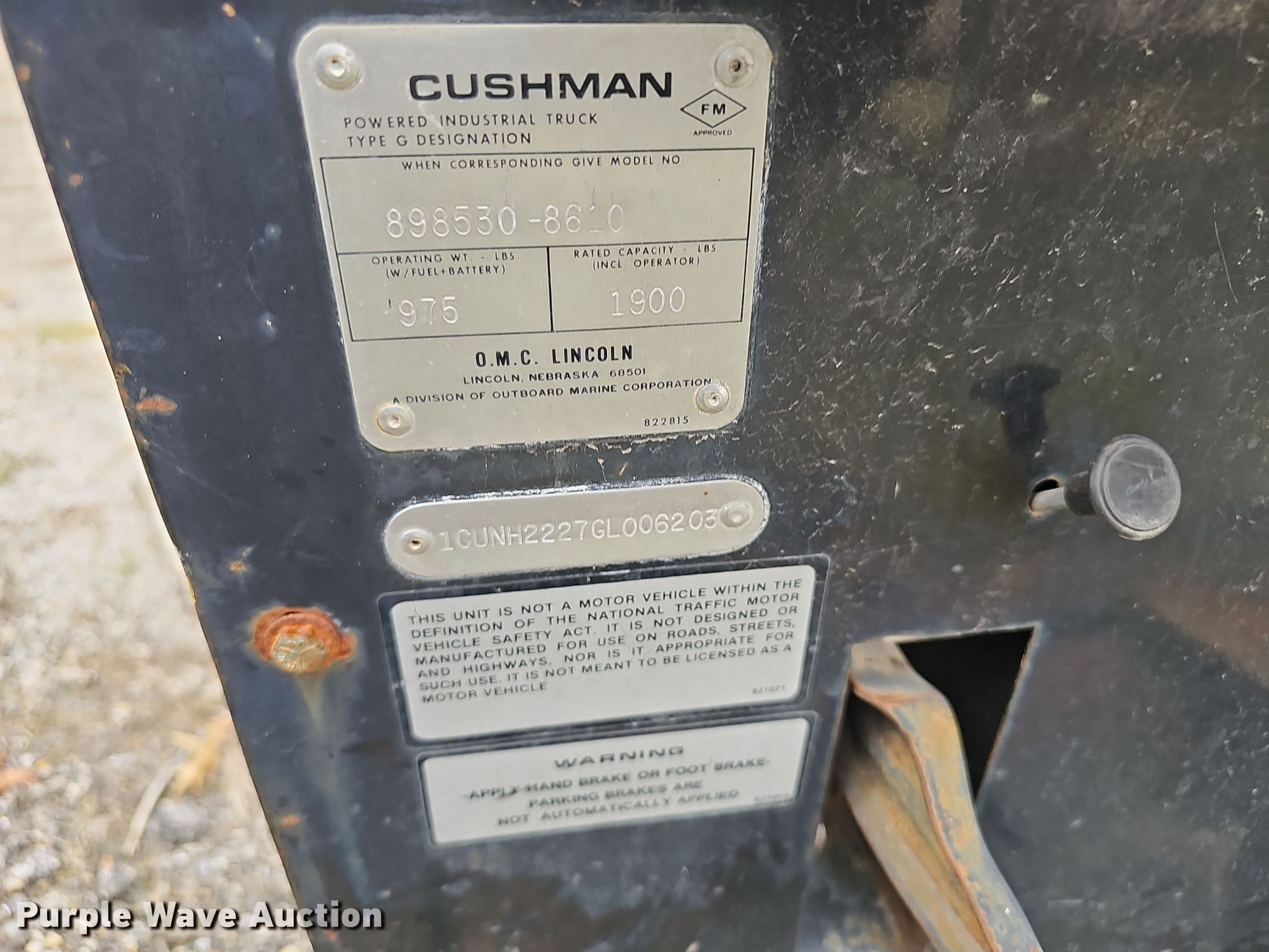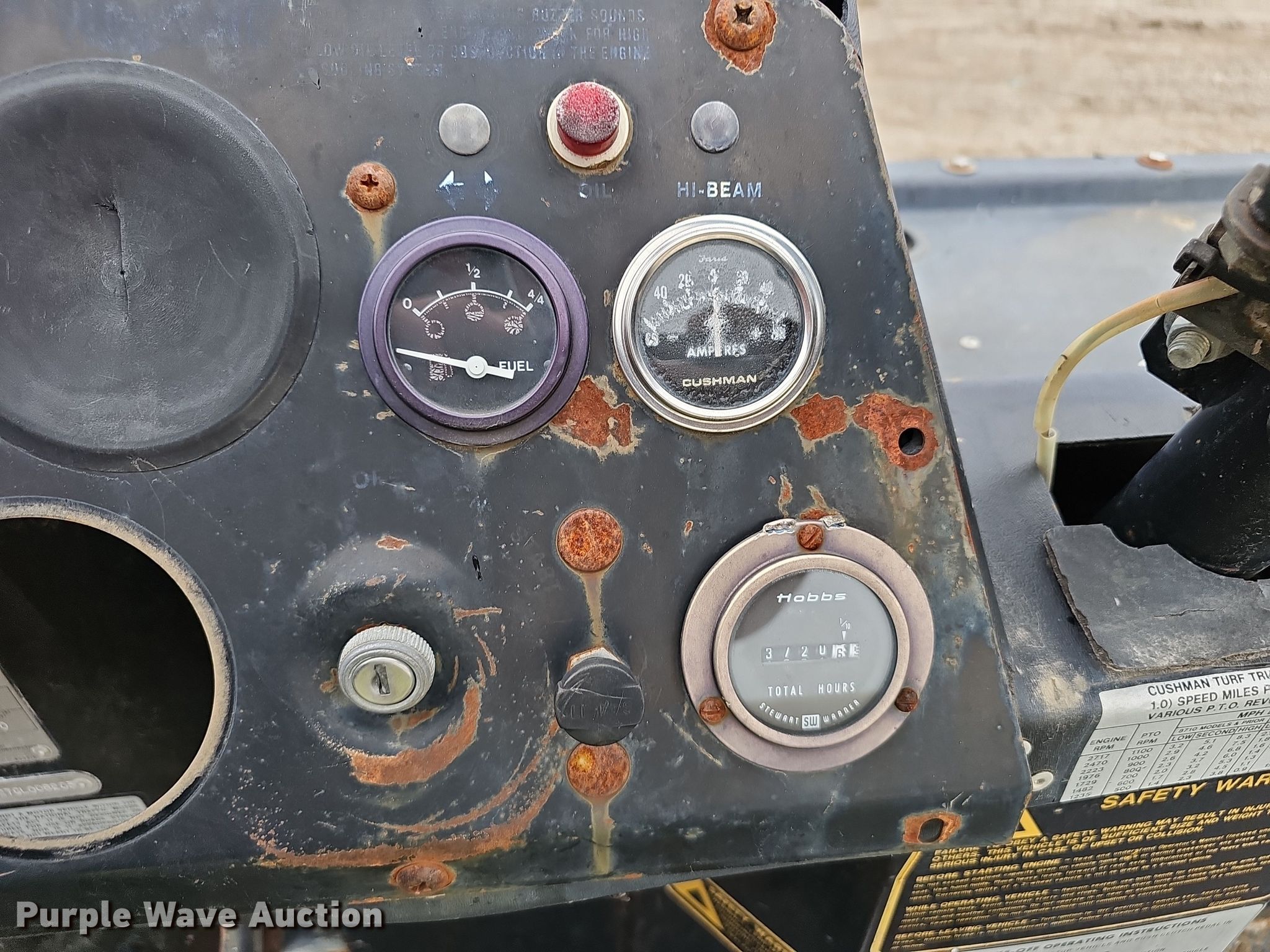 Purple Wave is selling a used Utility Vehicle in Kansas. This item is a Cushman Turf Truckster utility vehicle with the following: Hours: 3,721 on meter, Serial: 1CUNH2227GL006203