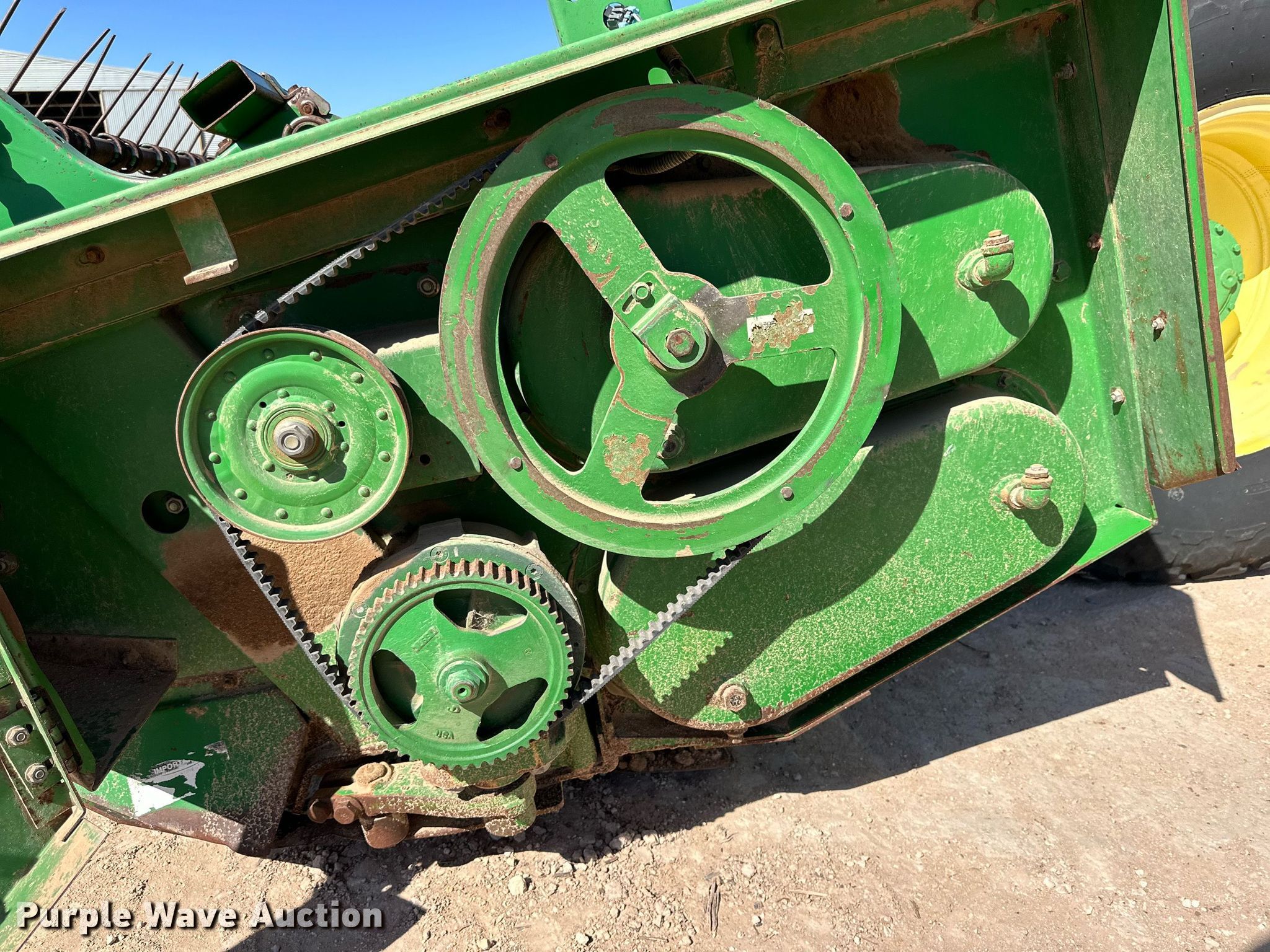 1997 John Deere 4890 swather / windrower. Hours: 4,426 on meter, Serial: E04890X115268. Engine John Deere, Cylinders: 4, Fuel type: Diesel. Transmission Hydrostatic, Two speed travel. Operators station AC, Heat. Features Head Sickle, John Deere 890, Width: 18', Hydraulic head tilt, Conditioners: Steel/ steel. Tires Front: 18.4-26, Rear: 12.5-16. Notes Dead battery. Harmon Farms. Lubbock, TX 79403