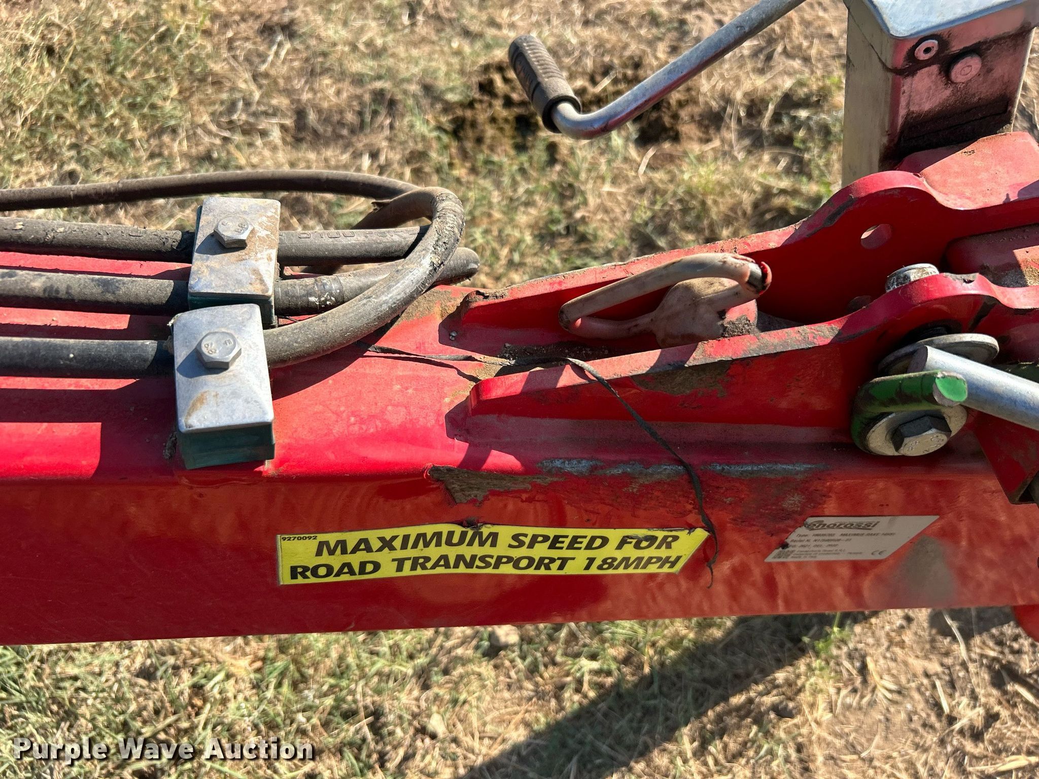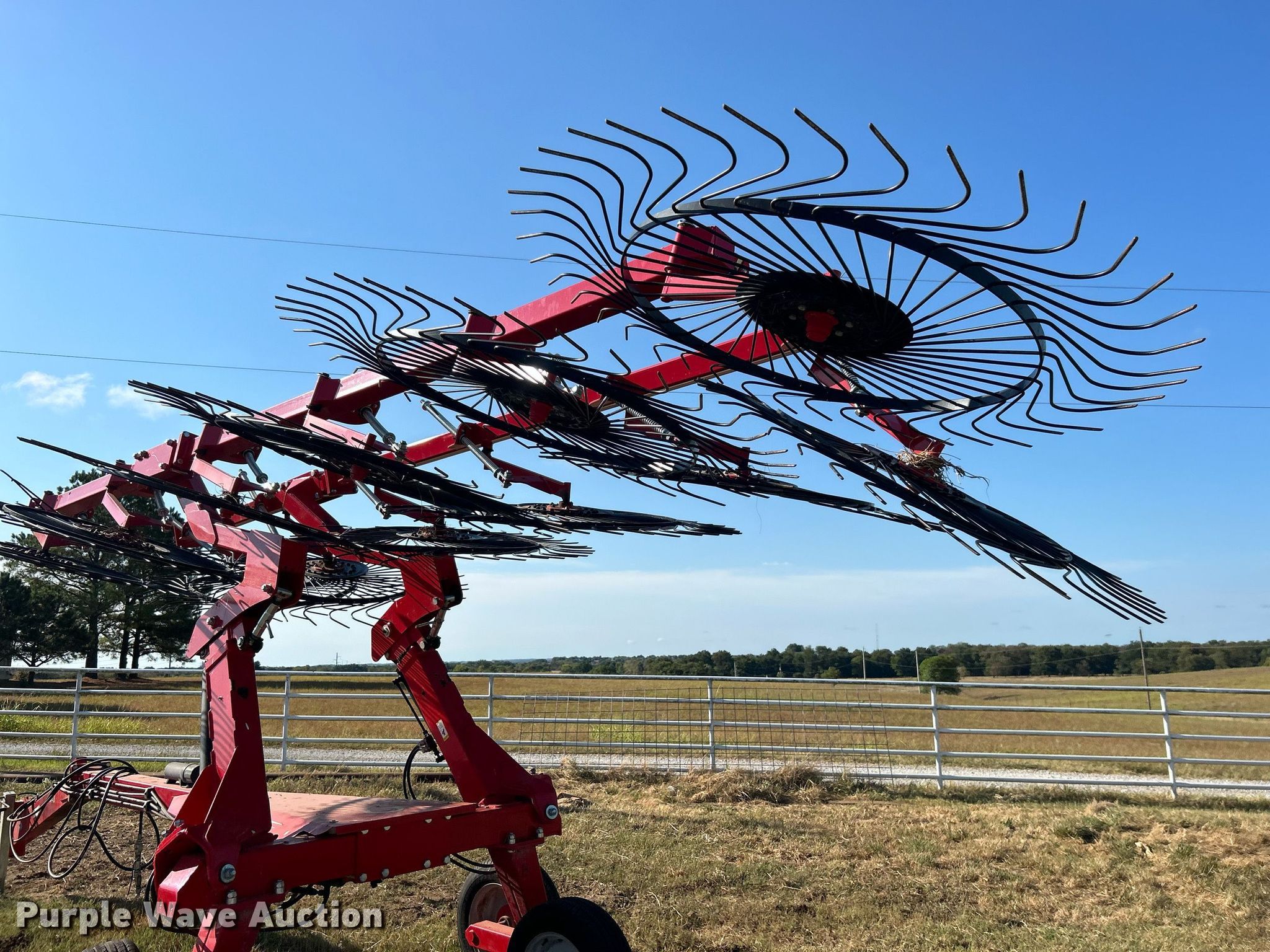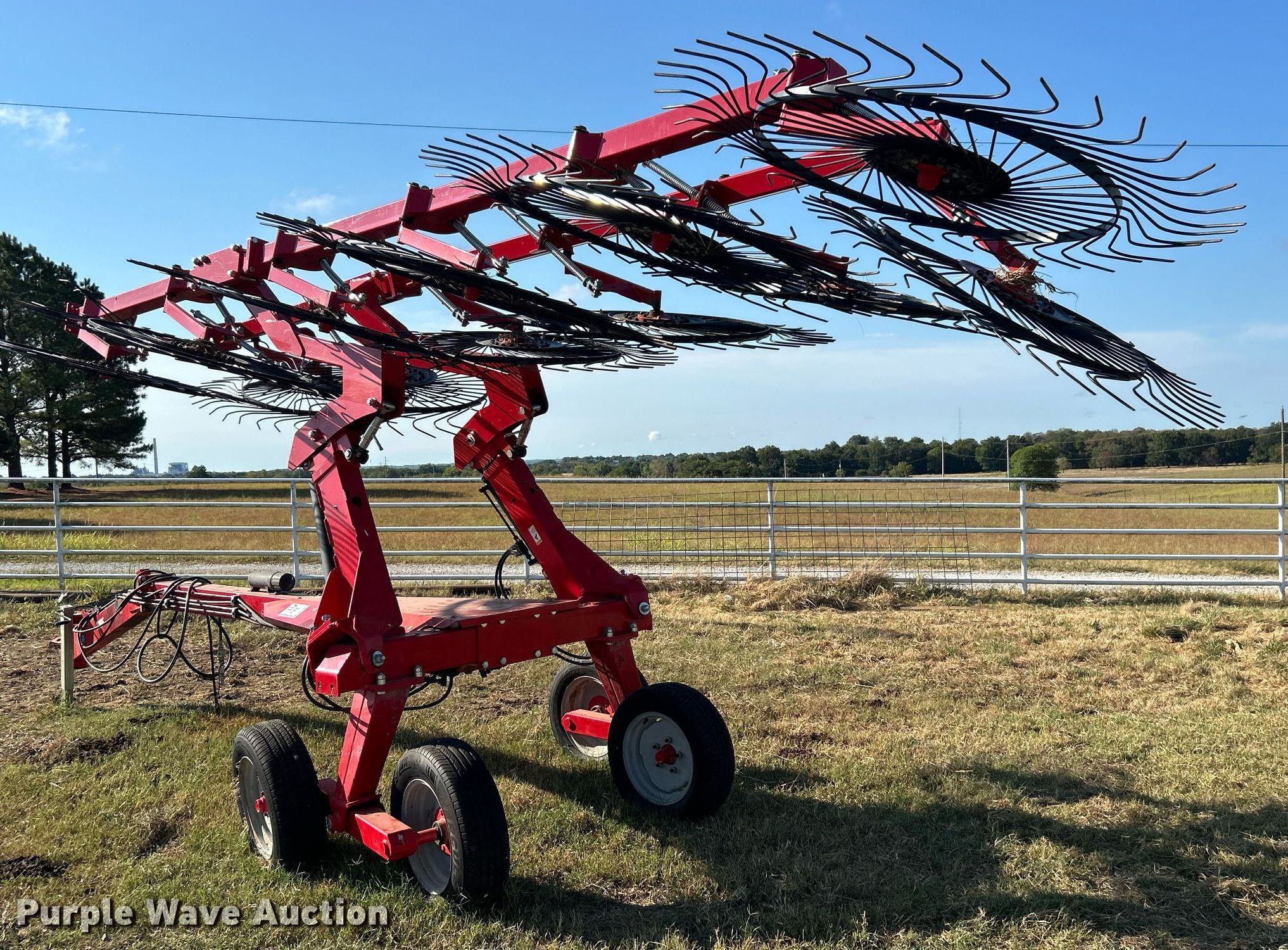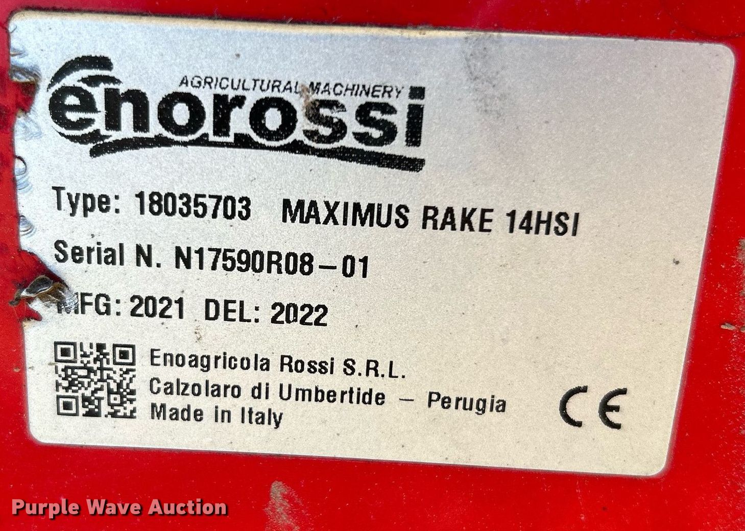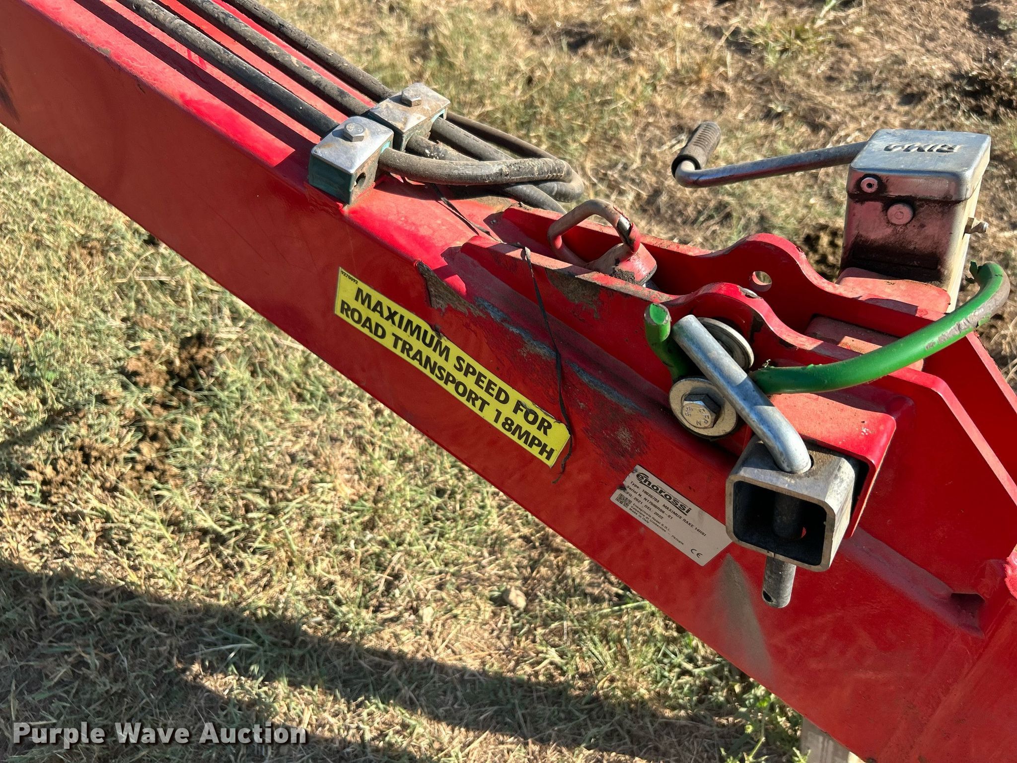 Purple Wave is selling a used Hay Rake in Oklahoma. This item is a 2021 Enorossi Maximus 14HSI hay rake with the following: Serial: N17590R08-01, Insurance salvage unit claim #: 4-813610