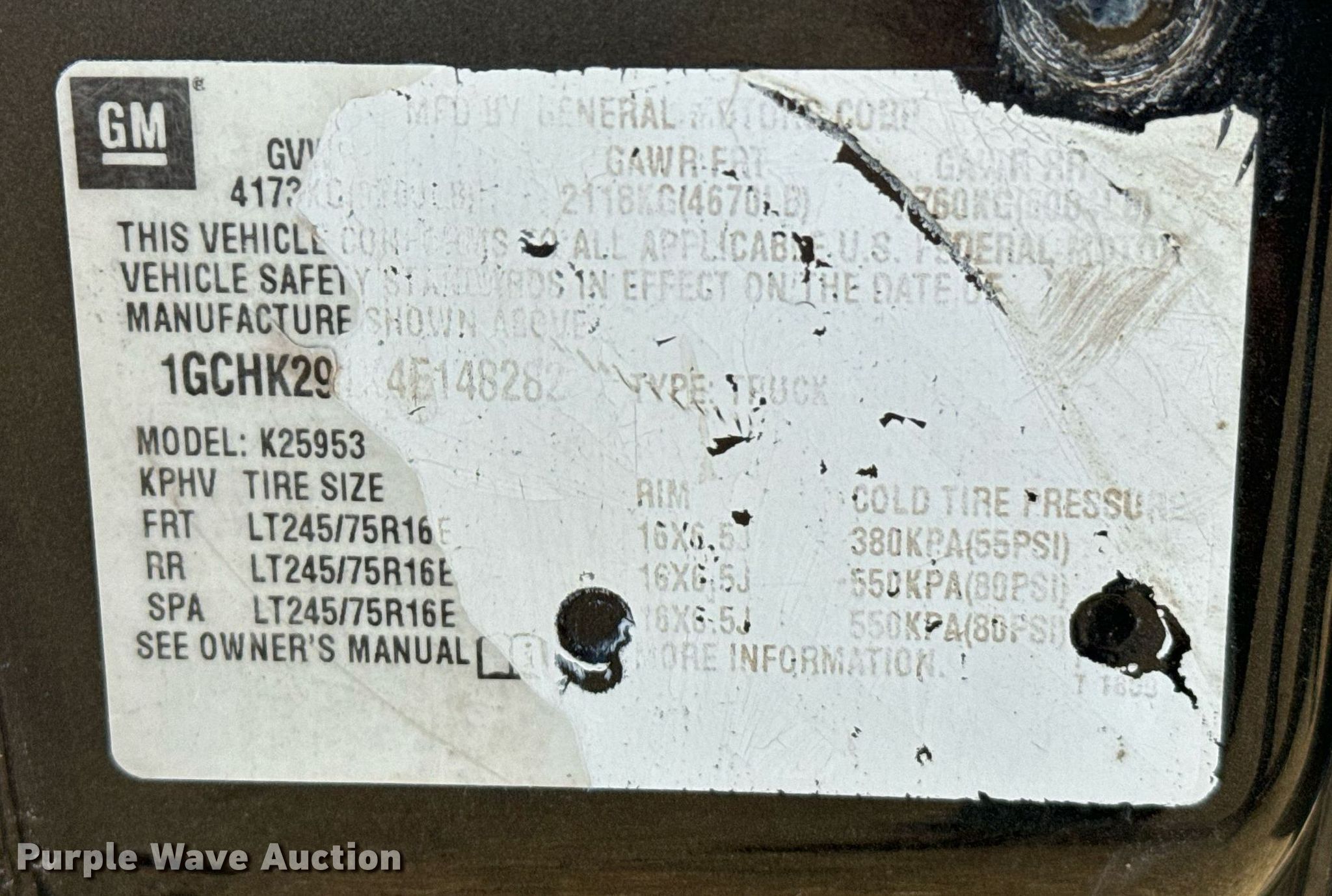 Purple Wave is selling a used Applicator Truck in Kansas. This item is a 2004 Chevrolet Silverado 2500 LT Ext. Cab sprayer bed pickup truck with the following: Miles: 154,931 on odometer, VIN: 1GCHK291X4E148282