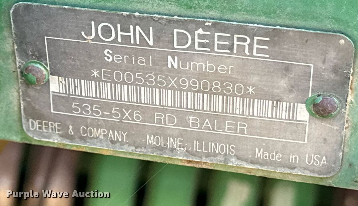 Purple Wave is selling a used Round Baler in South Dakota. This item is a 1996 John Deere 535 round baler with the following: Serial: E00535X990830