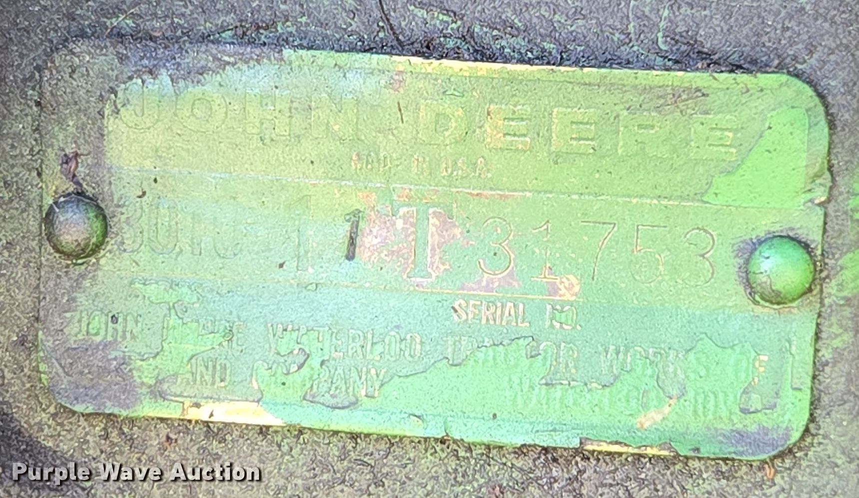 Purple Wave is selling a used Tractor in Kansas. This item is a 1962 John Deere 3010 tractor with the following: Hours: 160 on meter, Serial: 1T31753