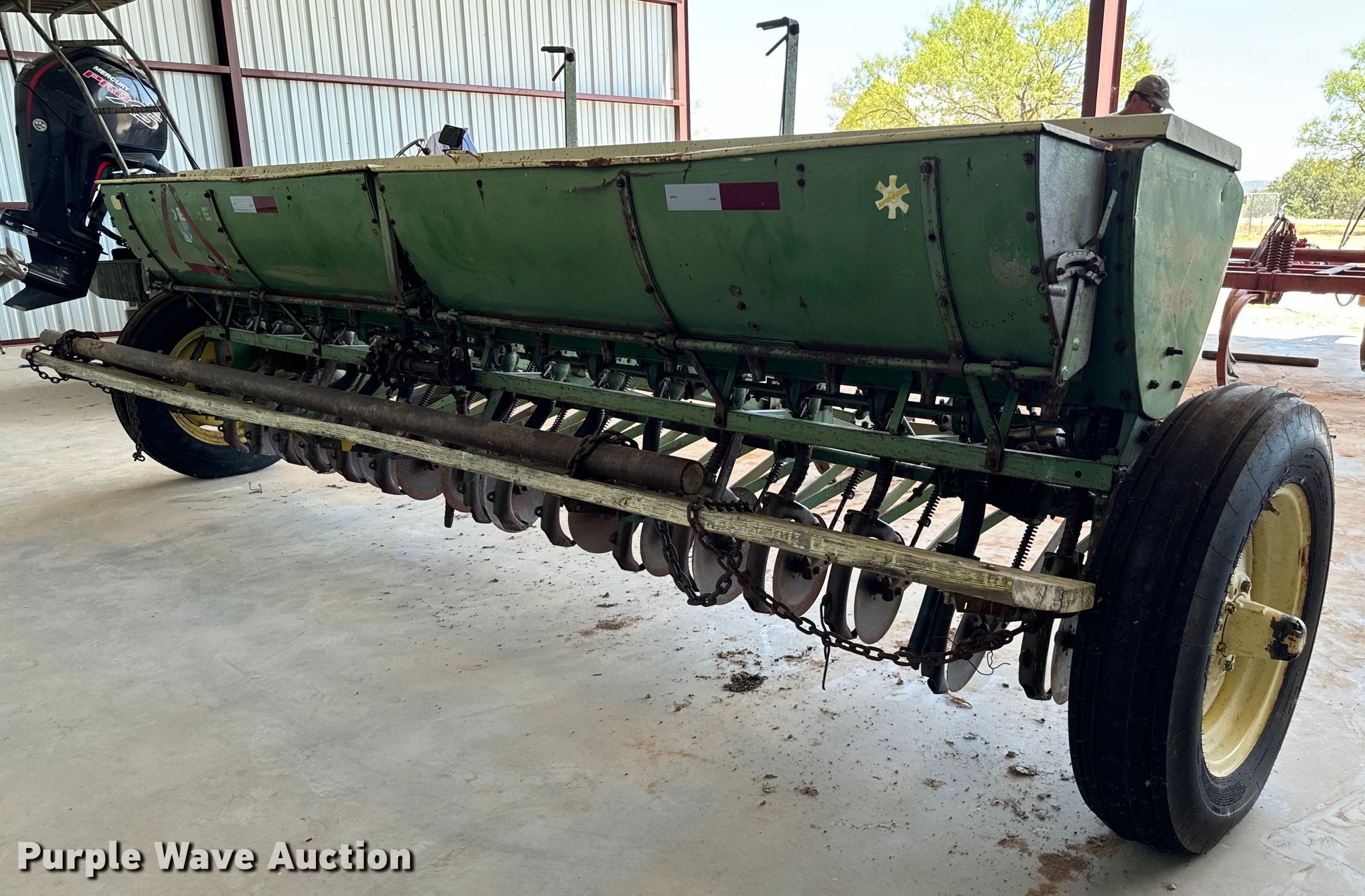 Purple Wave is selling a used Grain Drill or Seeder in Texas. This item is a John Deere E0DRB grain drill with the following: Width: 13', Row units: 16, Row spacing: 10", Serial: 066100M