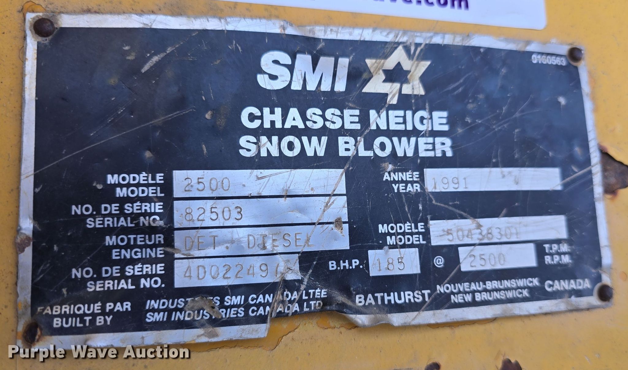1991 SMI 2500 snow blower has sold in Colome, South Dakota for $6710. Item OH9793 sold on October 23rd, 2024.