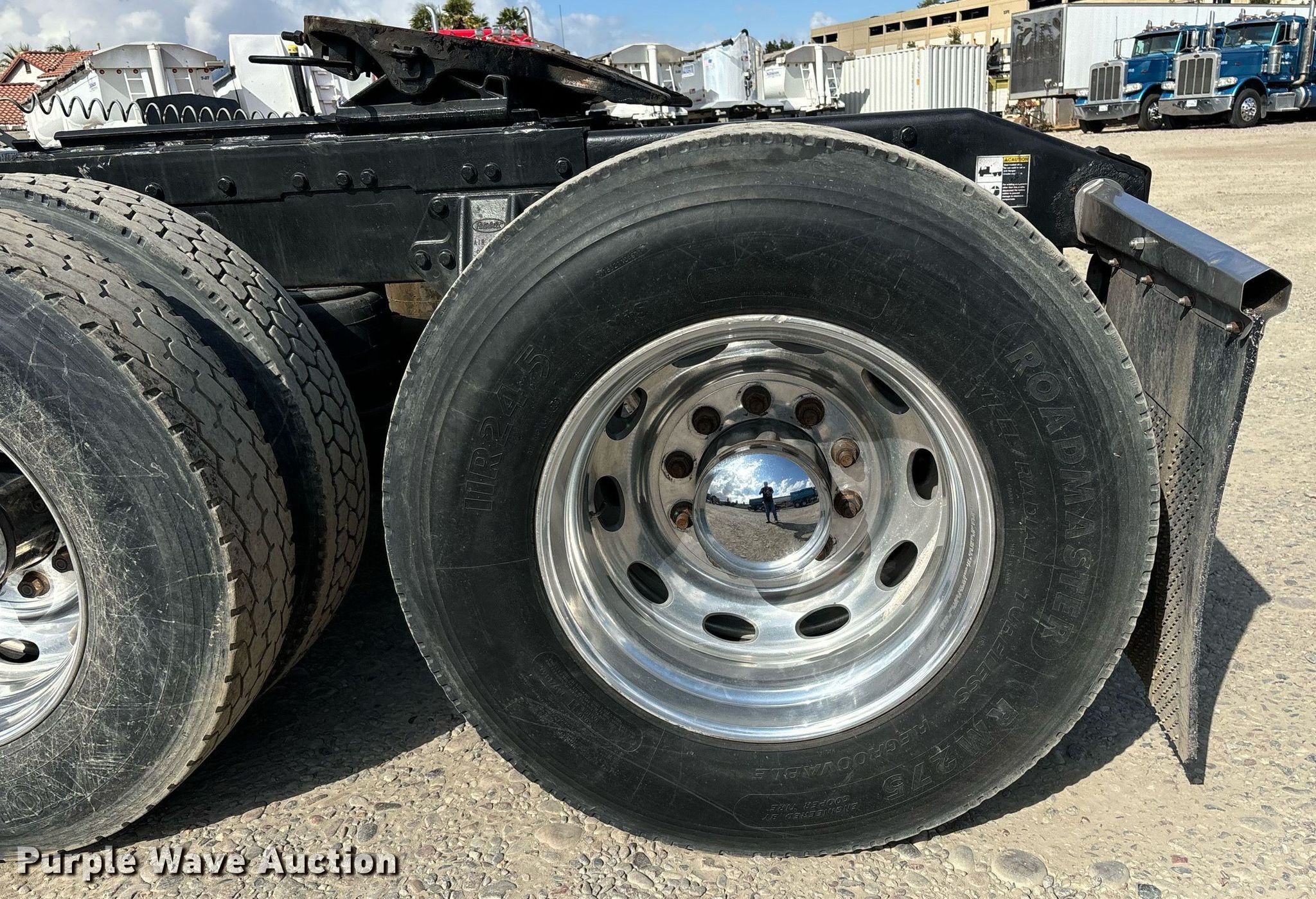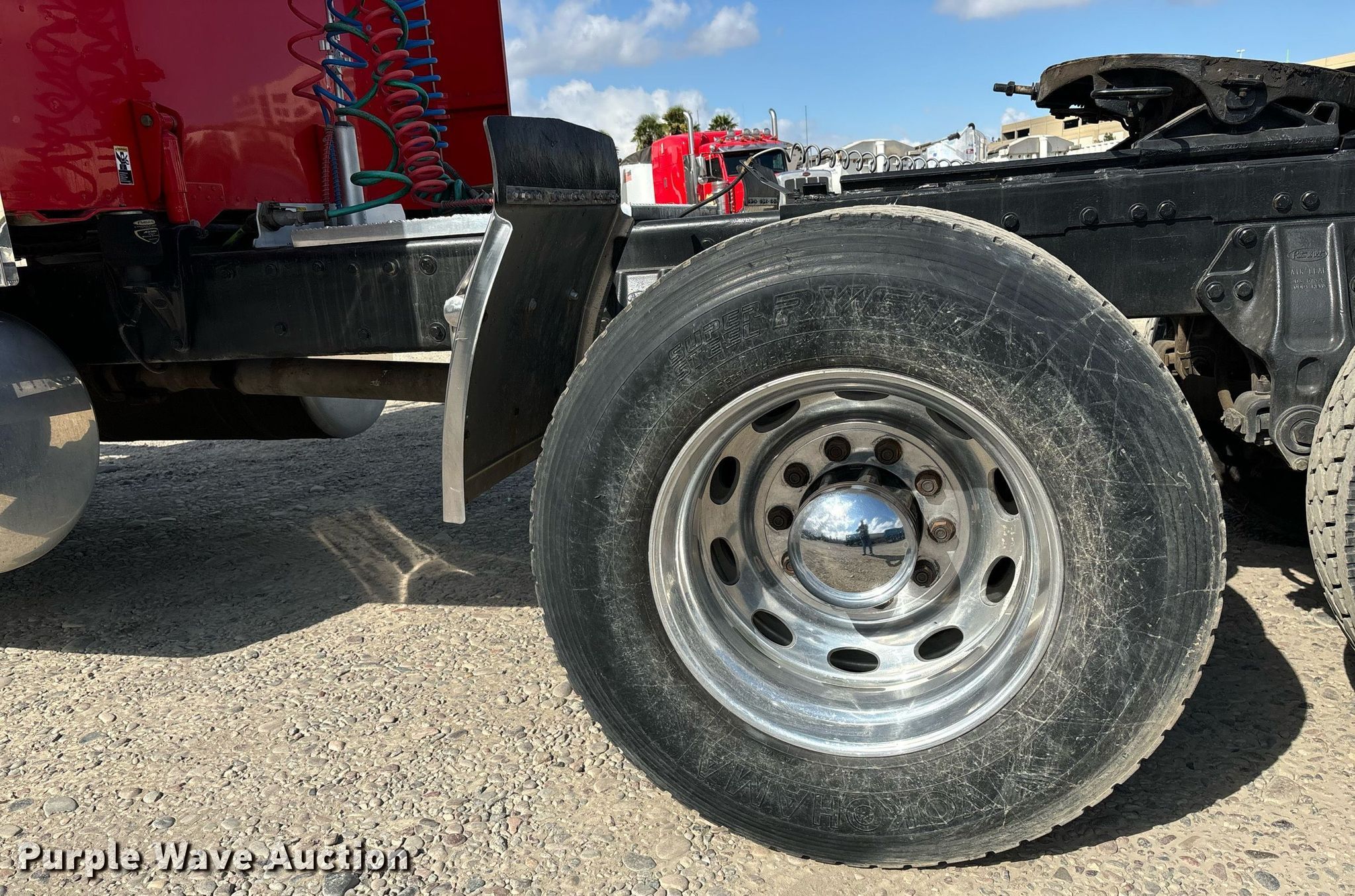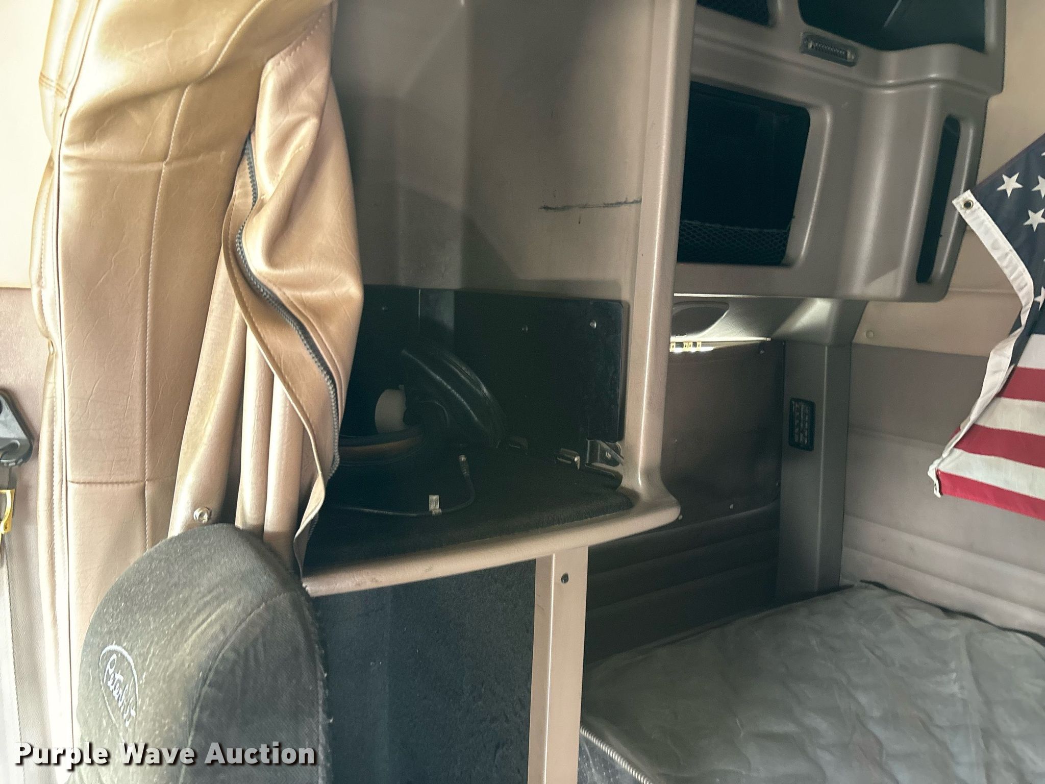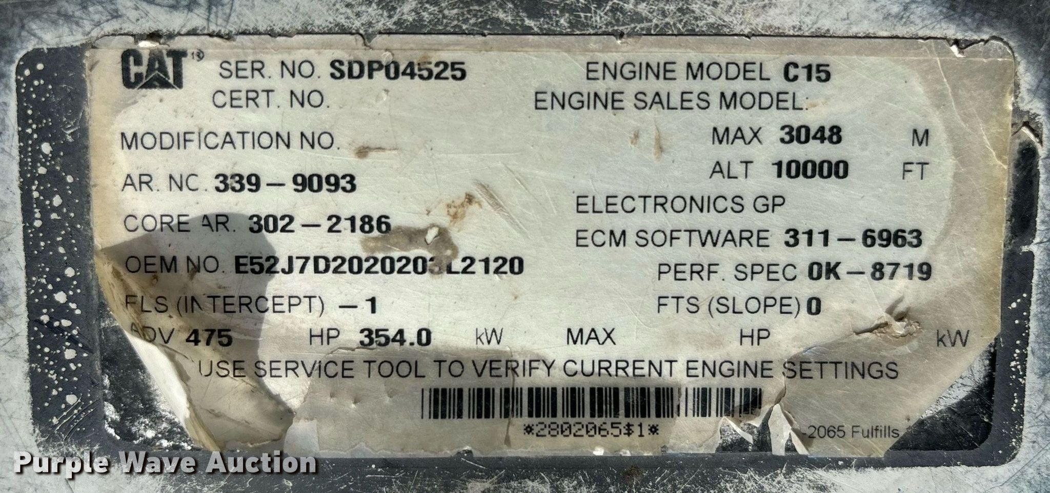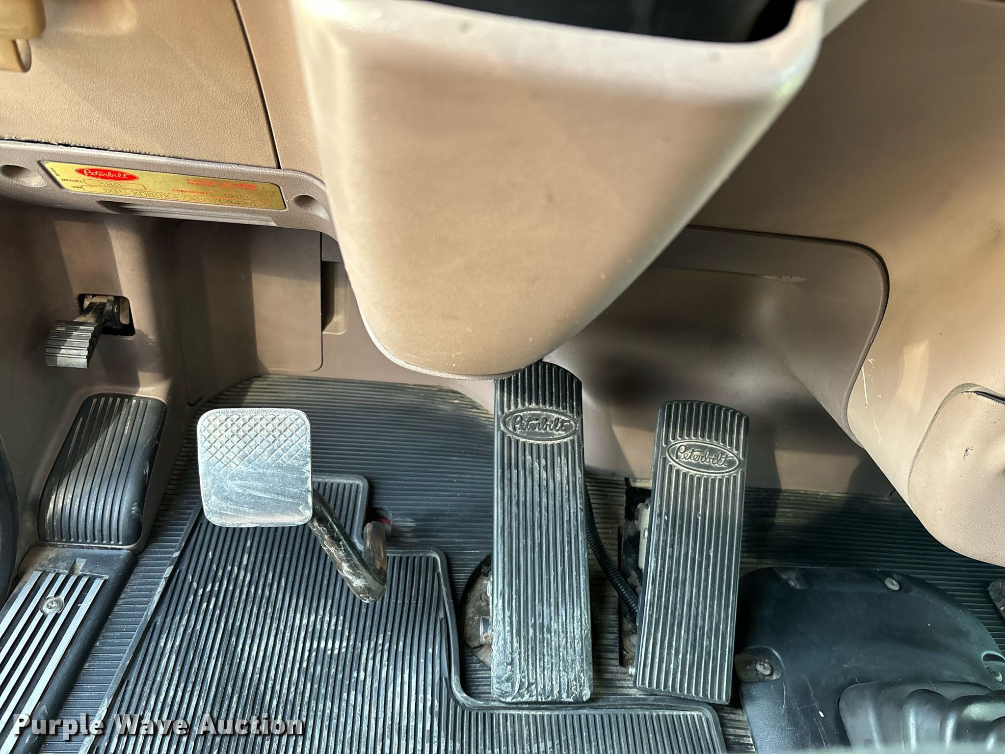 2008 Peterbilt 389 semi truck. Miles: 1,417,378 on odometer, Hours: 44,899 on meter, VIN: 1XPXDB9X78D758435, Unit #: 32. Engine Caterpillar C15, Displacement: 14.6L, Cylinders: 6, Fuel type: Diesel, HP: 550, Engine brake. Transmission Eaton Fuller, Manual, Speed: 13. Chassis Axles: Tandem, Gear ratio: 3.36, Differential lock: Inter-axle, Suspension: Air, GVWR: 48,000 lbs FAWR: 12,000 lbs, IAWR: 18,000 lbs, RAWR: 18,000 lbs, Wheelbase: 270". Interior AC, Heat, Cruise control, Sleeper Sleeper length: 66", Beds: Single. Features Deck plate: Aluminum, Fifth wheel type: Air operated, Fuel tank: Dual. Tires Size: 11R24.5. Notes Dash warning indicator: ABS. California title. Title distribution may be delayed up to 30 days from verification of funds. Christofferson Transportation. Riverside, CA 92503