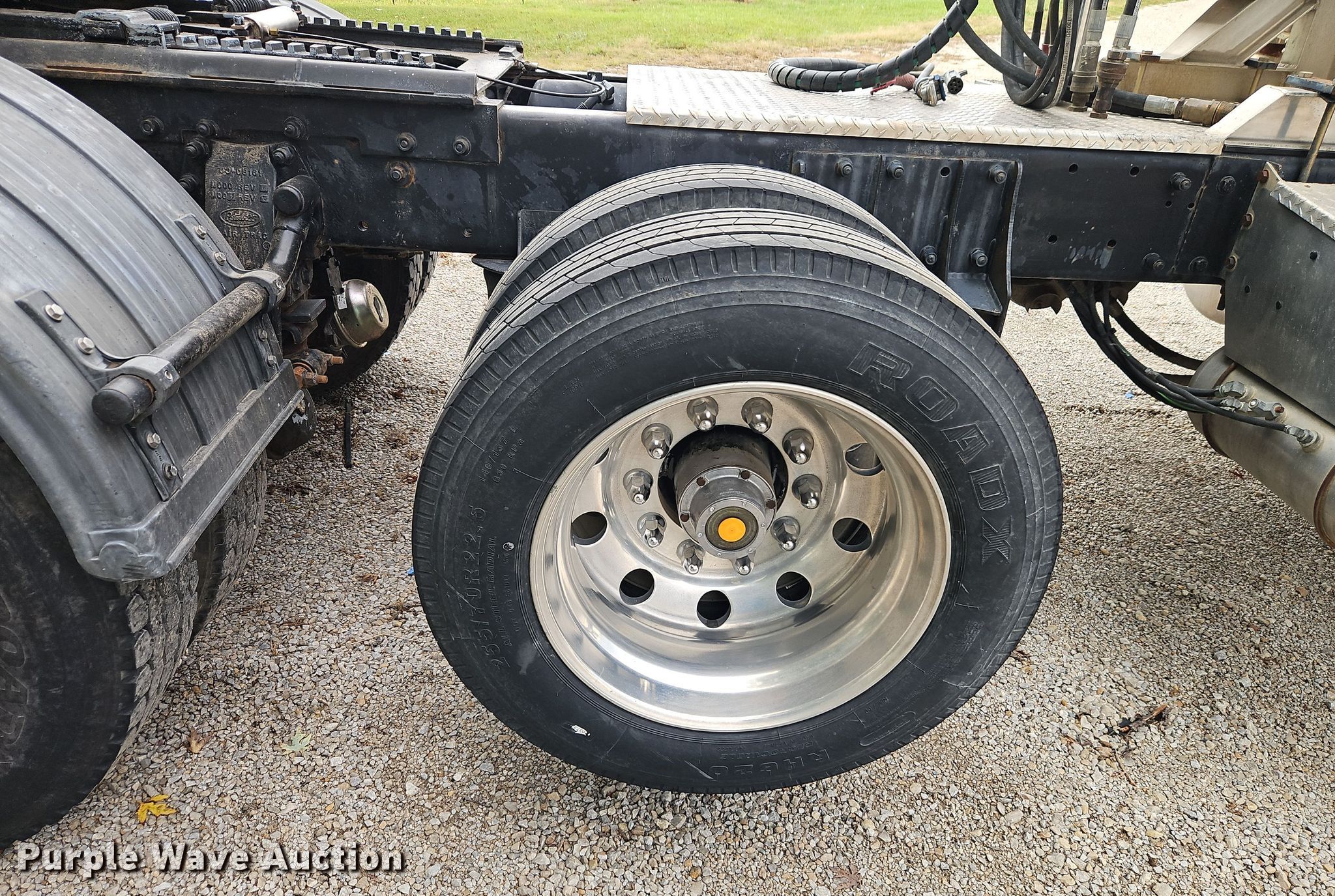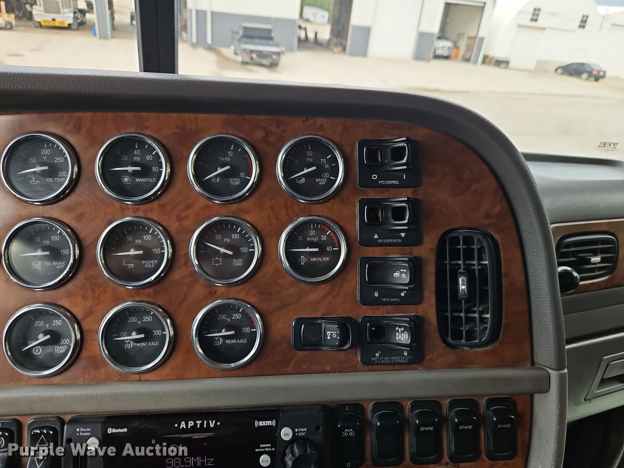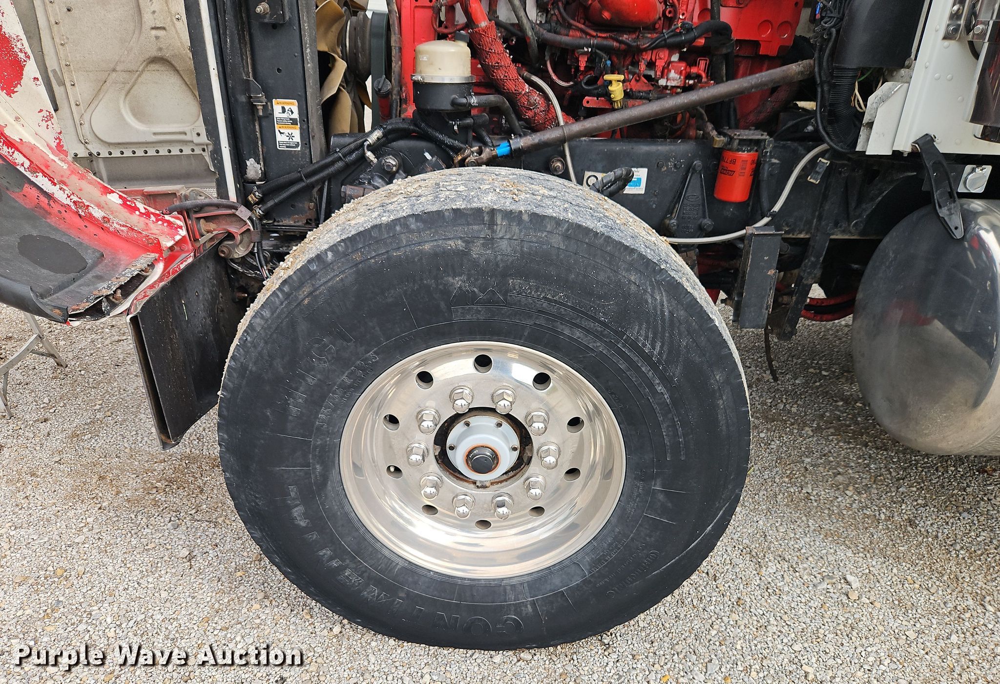 2007 Peterbilt 379 semi truck. Miles: 68,519 on odometer, Hours: 1,859 on meter, VIN: 1XP5D4TX47N685304. Engine Cummins, Displacement: 14.9L, Cylinders: 6, Fuel type: Diesel. Transmission Eaton Fuller, Manual, Speed: 18. Chassis Axles: Triple, Pusher axle, Differential lock: Inter-axle, Suspension: Air Dump valves, Brakes: Air, PTO, Wet kit, GVWR: 83,000 lbs FAWR: 20,000 lbs, IAWR: 23,000 lbs, RAWR: 23,000 lbs, Lift axle GAWR: 20,000 lbs. Interior AC, Heat, Heated mirrors, Power passenger window, Power locks, Cruise control, Air ride cab. Features Deck plate: Aluminum, Fifth wheel type: Air operated, Sliding, Fuel tank: Dual. Tires Front: 425/65R22.5, Rear: 11R24.5, Lift axle: 255/70R22.5. Notes Dash warning indicator: Check engine. Missouri title. Mileage has not been verified. Odometer discrepancy will be marked on the title. Harrisonville, MO 64701