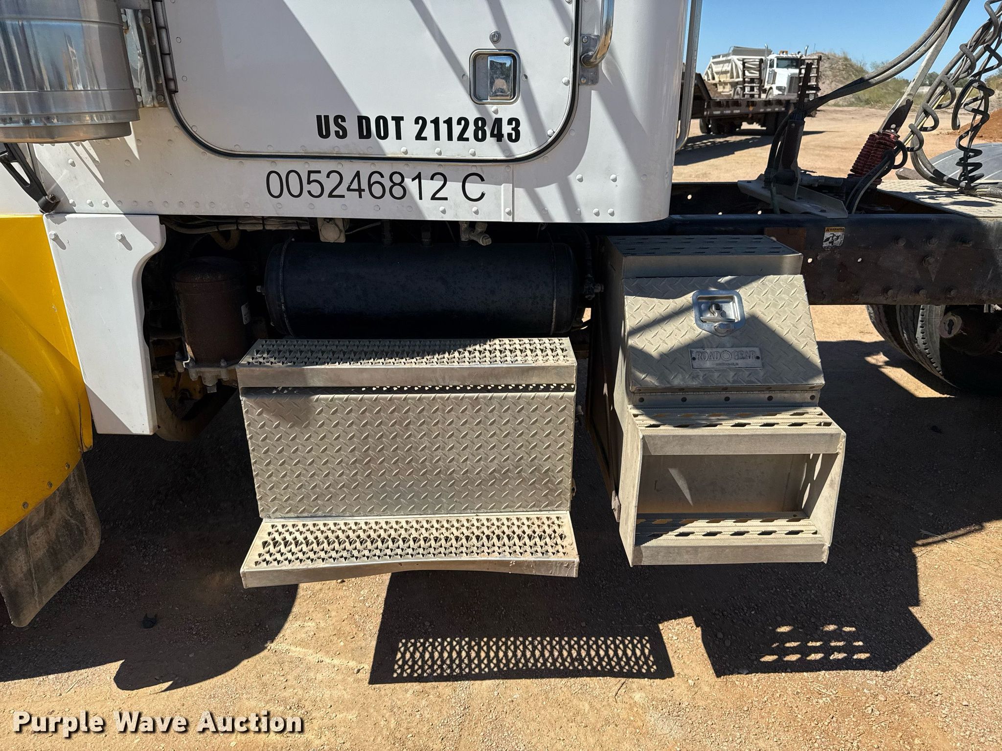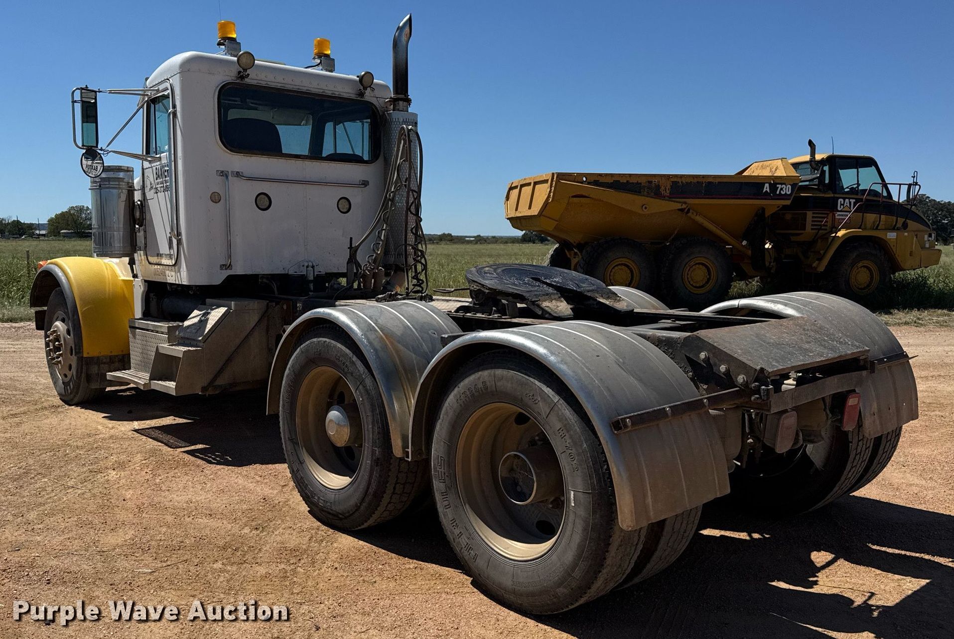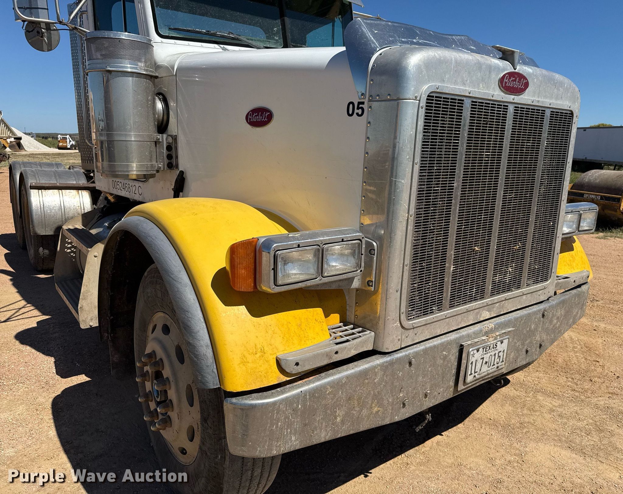 1999 Peterbilt 378 semi truck. Miles: 628,524 on odometer, VIN: 1XPFDB9X6XD466897, Unit #: 05. Engine Caterpillar 3406, Serial: 2WS11448, Displacement: 14.6L, Cylinders: 6, Fuel type: Diesel, HP: 475, kW: 354, Engine brake. Transmission Manual, Speed: 10. Chassis Axles: Tandem, Differential lock: Inter-axle, Suspension: Air Dump valves, Brakes: Air, PTO, GVWR: 56,000 lbs FAWR: 12,000 lbs, IAWR: 22,000 lbs, RAWR: 22,000 lbs. Interior AC, Heat, Heated mirrors, Cruise control, Air ride cab. Features Deck plate: Aluminum, Fifth wheel type: Fixed, Fuel tank: Dual. Tires Size: 11R24.5. Notes Windshield chipped or cracked. Texas title. Title distribution may be delayed up to 14 days from verification of funds. Baxter Sand and Gravel. San Saba, TX 76877