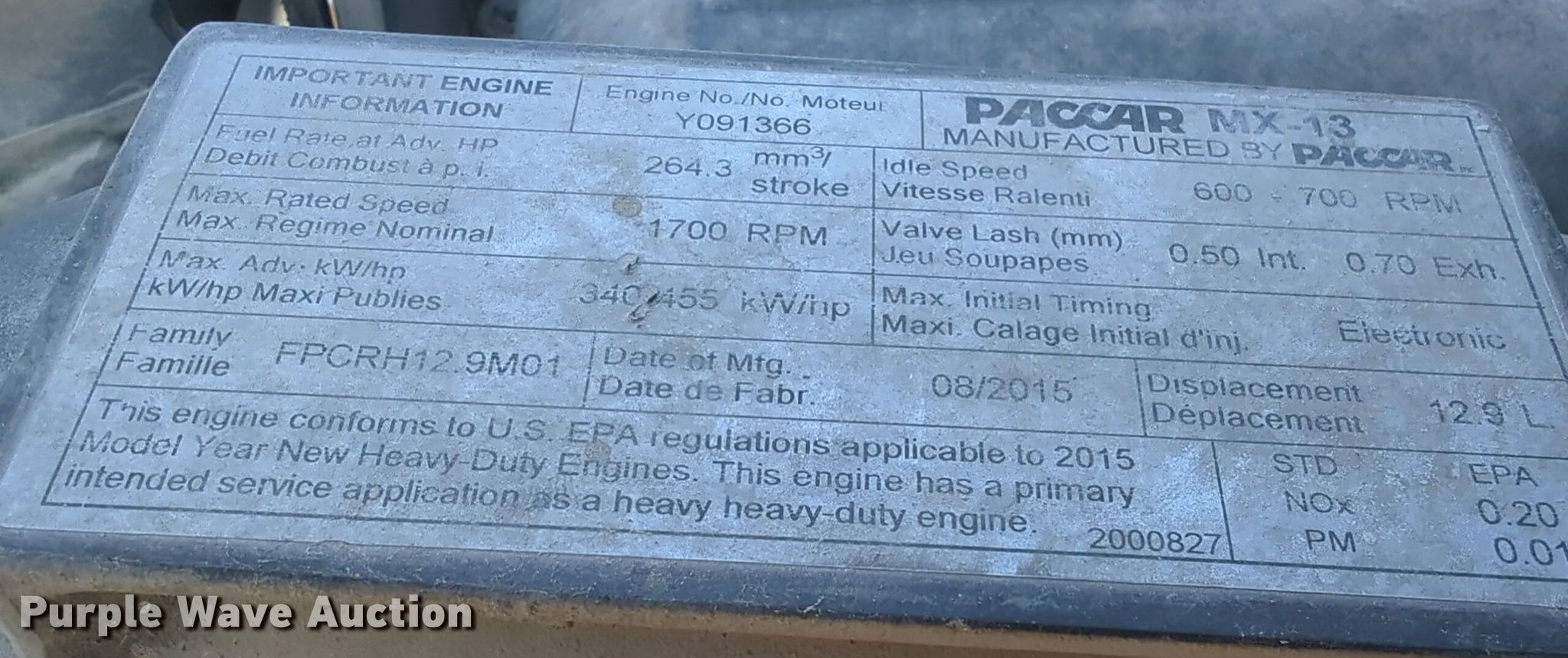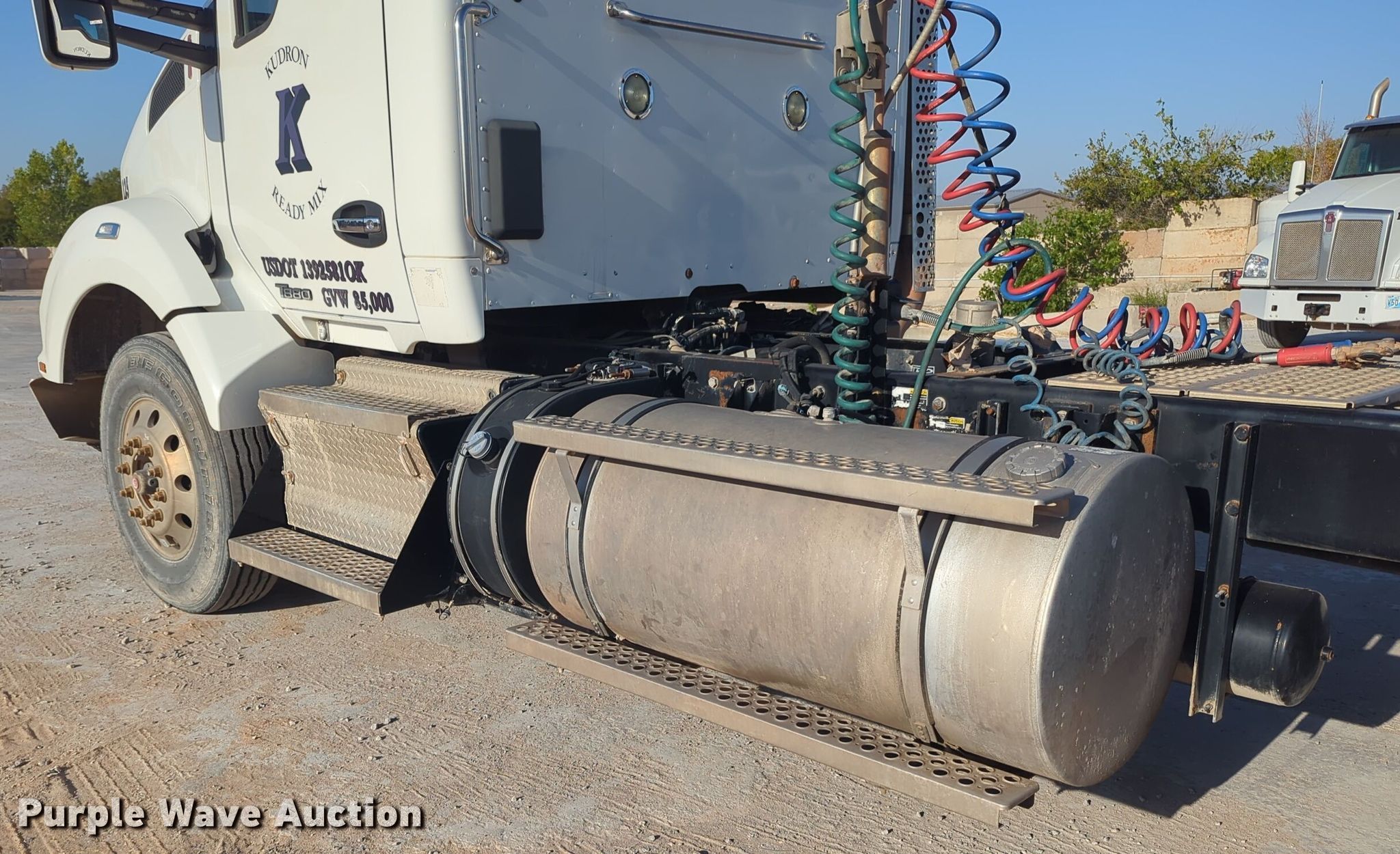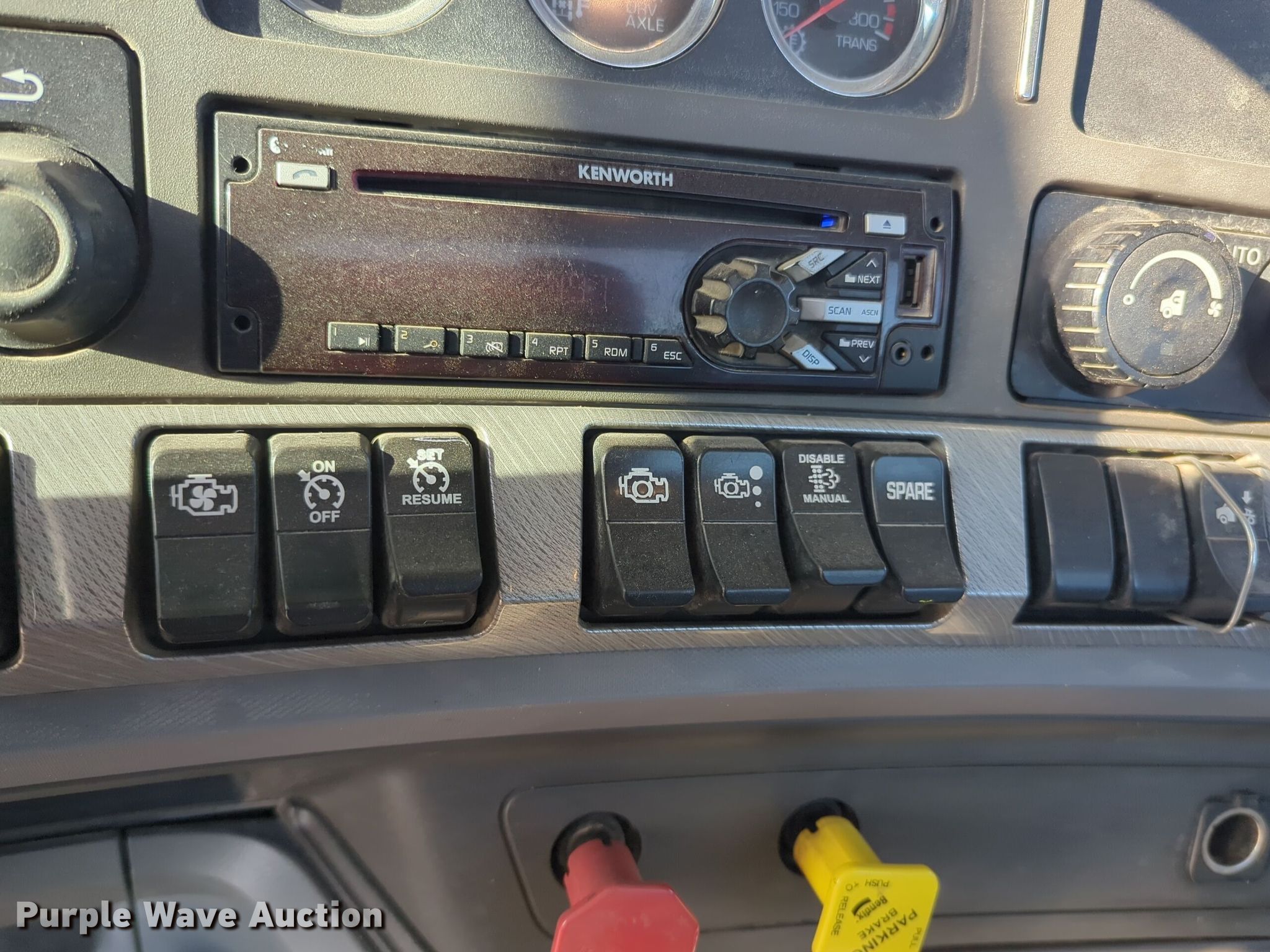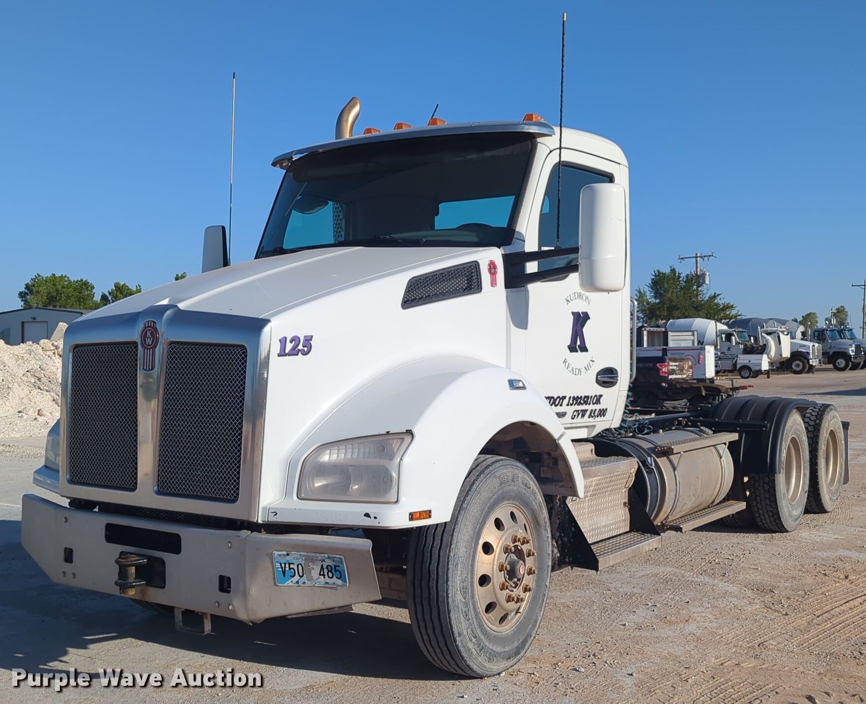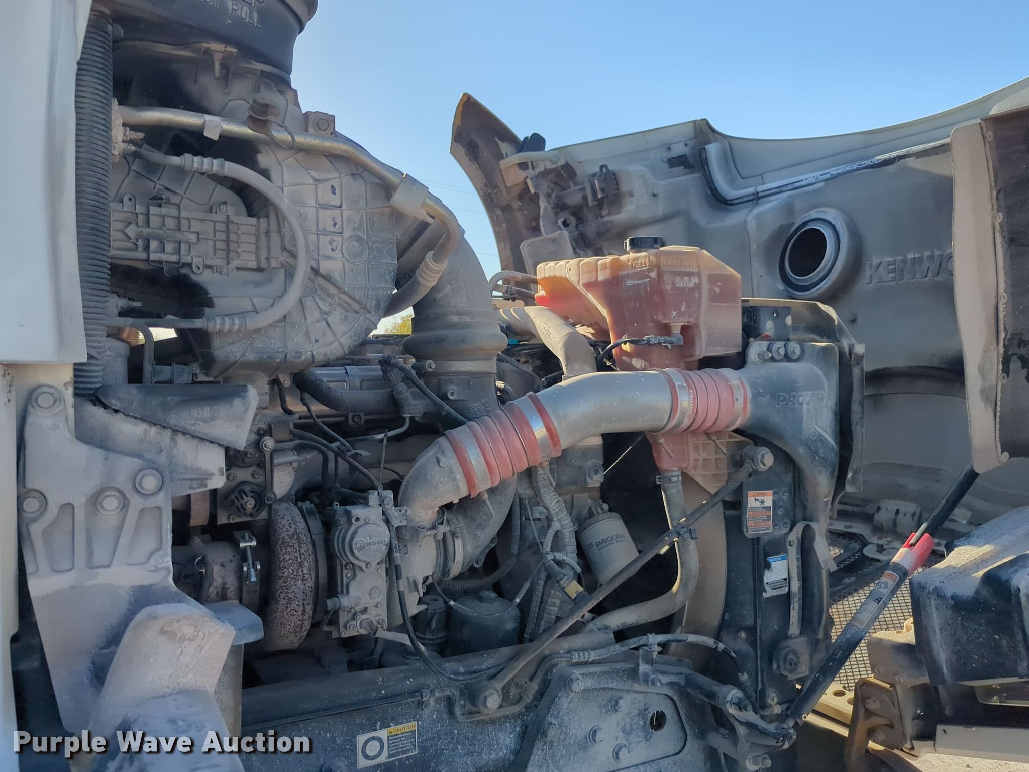 2016 Kenworth T880 semi truck. Miles: 572,281 on odometer, VIN: 1XKZDP9X7GJ119998. Engine Paccar MX-13, Serial: Y091366, Displacement: 12.9L, Cylinders: 6, Fuel type: Diesel, Engine brake. Transmission Eaton Fuller, Manual, Speed: 10. Chassis Axles: Tandem, Differential lock: Inter-axle, Suspension: Air Dump valves, Brakes: Air, PTO, GVWR: 53,200 lbs FAWR: 13,200 lbs, IAWR: 20,000 lbs, RAWR: 20,000 lbs. Interior AC, Heat, Heated mirrors, Power windows, Power locks, Cruise control, Air ride cab. Features Deck plate: Aluminum, Fifth wheel type: Air operated, Sliding, Fuel tank: Single. Tires Size: 11R22.5. Notes Dash warning indicator: Check engine. Oklahoma title. Title distribution may be delayed up to 30 days from verification of funds. Kudron Ready Mix. 15244 Northwest Expressway. Piedmont, OK 73078