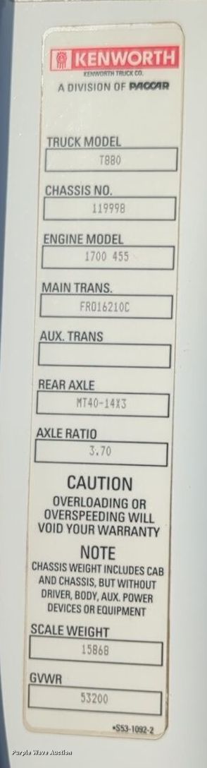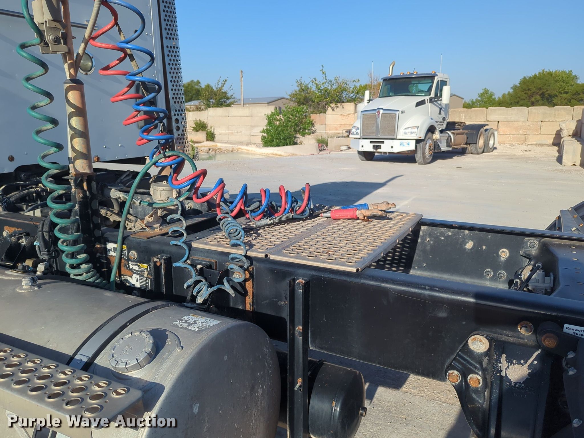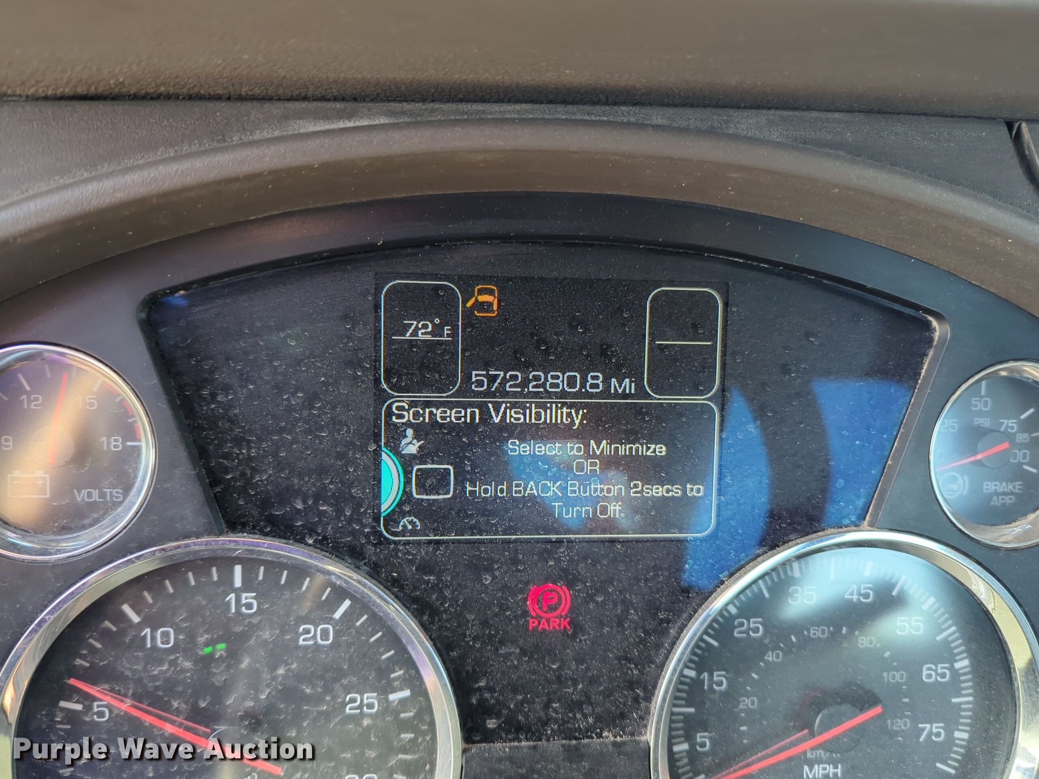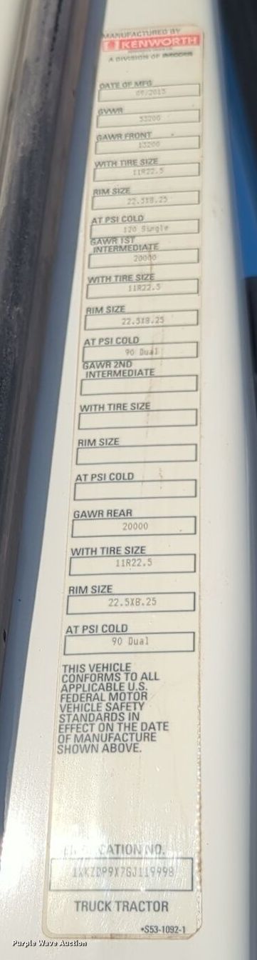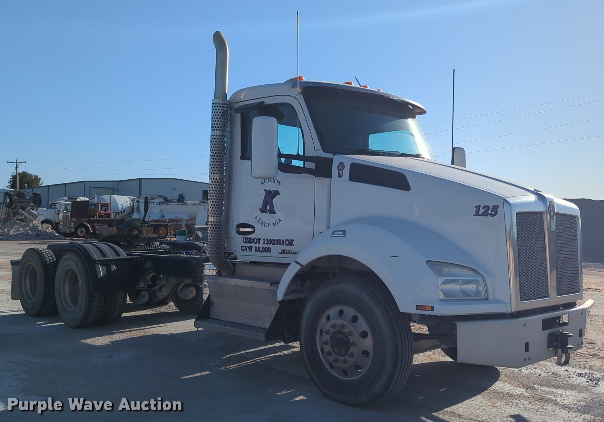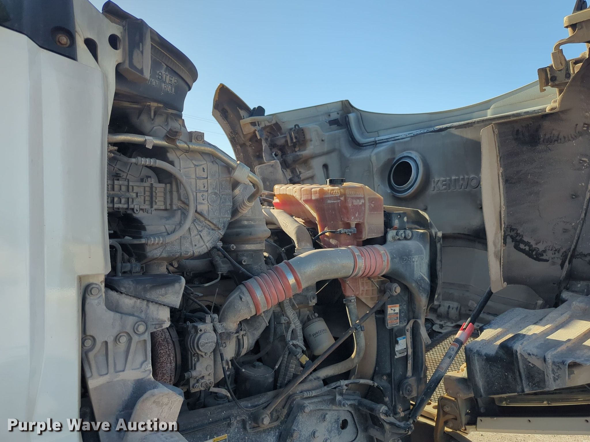 2016 Kenworth T880 semi truck. Miles: 572,281 on odometer, VIN: 1XKZDP9X7GJ119998. Engine Paccar MX-13, Serial: Y091366, Displacement: 12.9L, Cylinders: 6, Fuel type: Diesel, Engine brake. Transmission Eaton Fuller, Manual, Speed: 10. Chassis Axles: Tandem, Differential lock: Inter-axle, Suspension: Air Dump valves, Brakes: Air, PTO, GVWR: 53,200 lbs FAWR: 13,200 lbs, IAWR: 20,000 lbs, RAWR: 20,000 lbs. Interior AC, Heat, Heated mirrors, Power windows, Power locks, Cruise control, Air ride cab. Features Deck plate: Aluminum, Fifth wheel type: Air operated, Sliding, Fuel tank: Single. Tires Size: 11R22.5. Notes Dash warning indicator: Check engine. Oklahoma title. Title distribution may be delayed up to 30 days from verification of funds. Kudron Ready Mix. 15244 Northwest Expressway. Piedmont, OK 73078