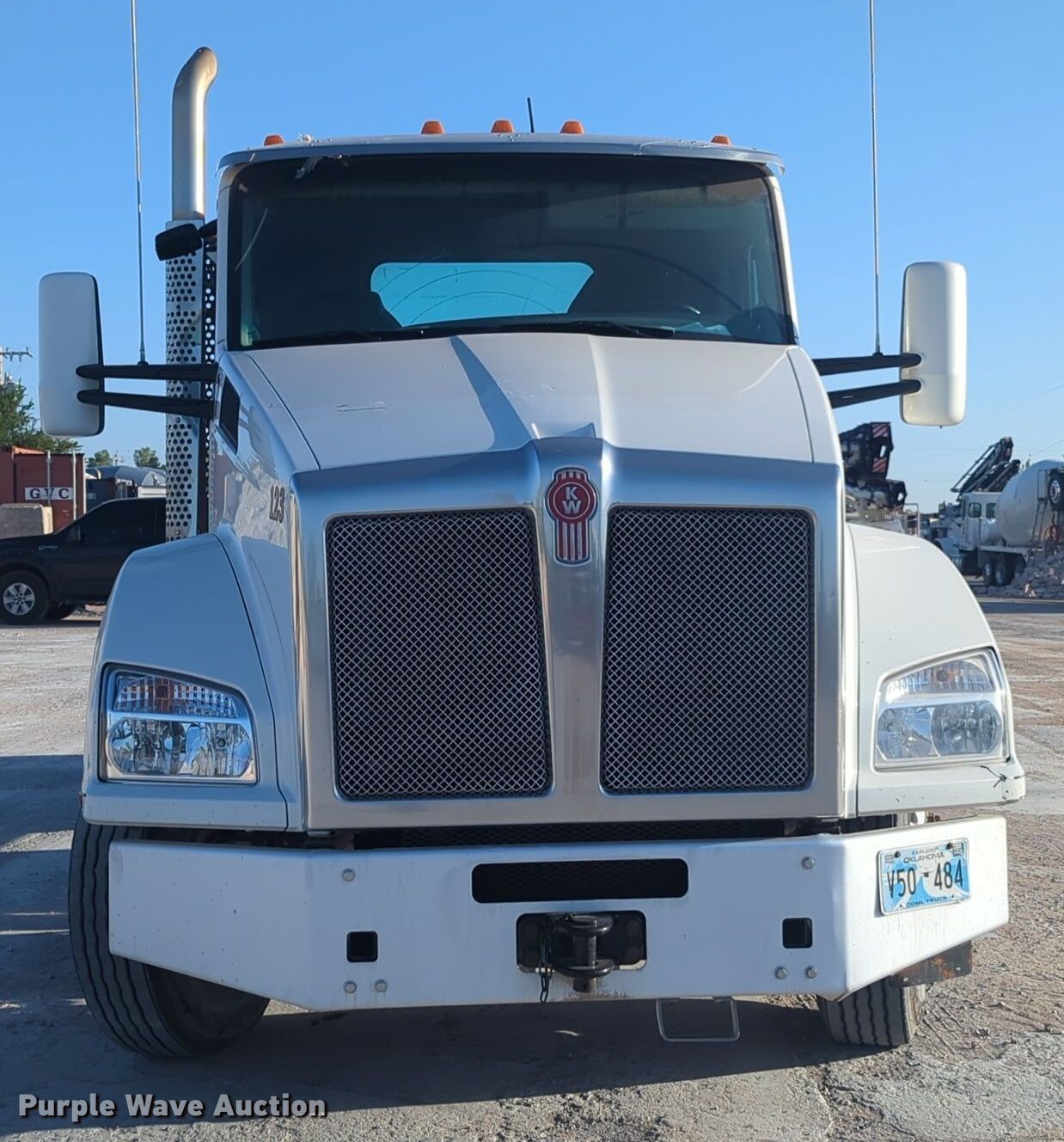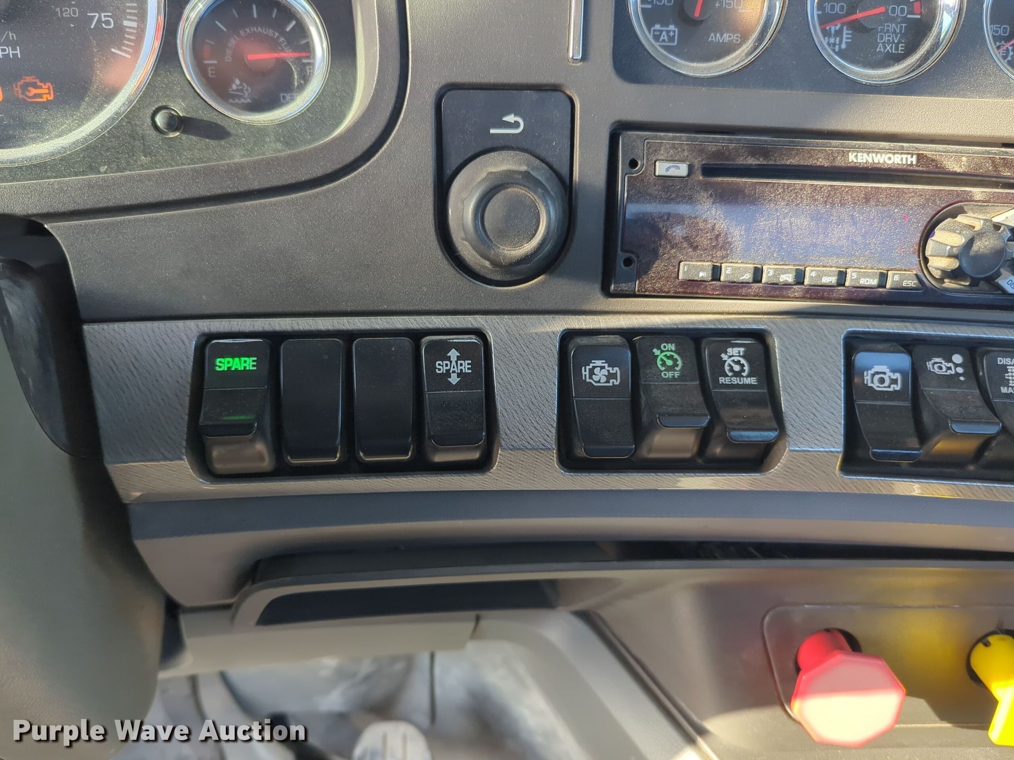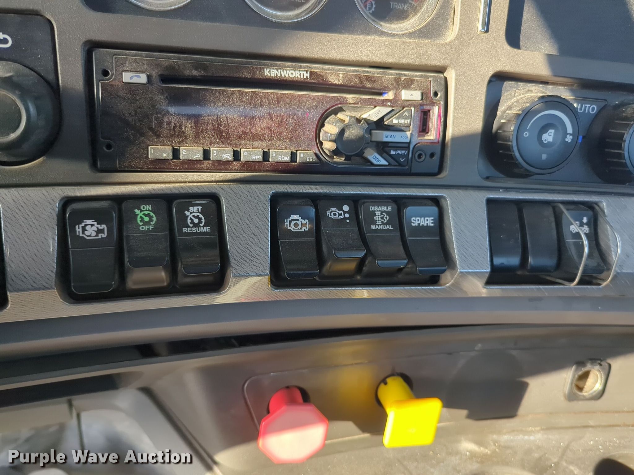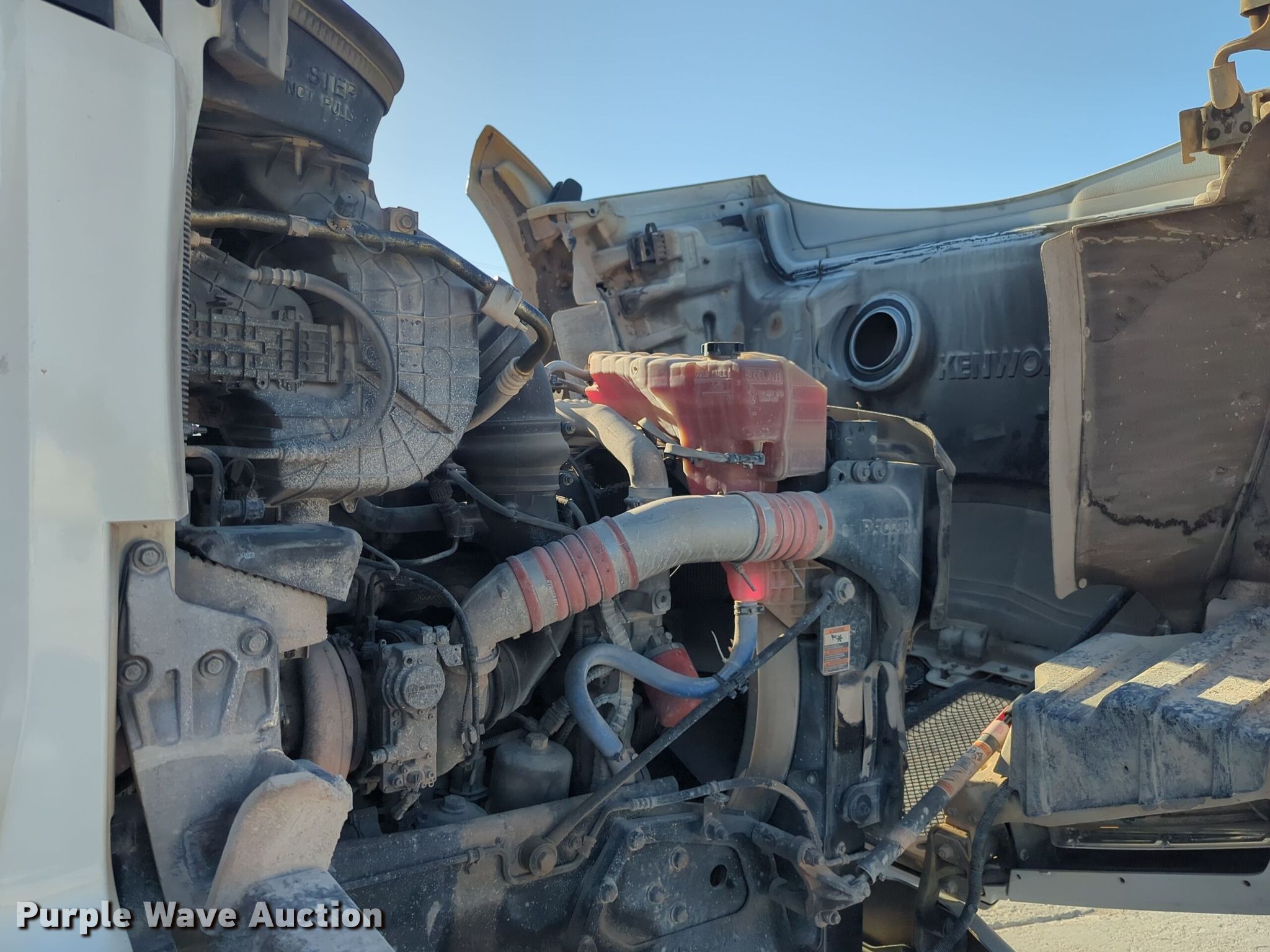 2016 Kenworth T880 semi truck. Miles: 707,790 on odometer, VIN: 1XKZDP9X3GJ119996. Engine Paccar MX-13, Serial: Y091565, Displacement: 12.9L, Cylinders: 6, Fuel type: Diesel, Engine brake. Transmission Eaton Fuller, Manual, Speed: 10. Chassis Axles: Tandem, Differential lock: Inter-axle, Suspension: Air Dump valves, Brakes: Air, PTO, Wet kit, GVWR: 53,200 lbs FAWR: 12,300 lbs, IAWR: 20,000 lbs, RAWR: 20,000 lbs. Interior AC, Heat, Heated mirrors, Power windows, Power locks, Cruise control, Air ride cab. Features Deck plate: Aluminum, Fifth wheel type: Air operated, Sliding, Fuel tank: Single. Tires Size: 11R22.5. Notes Dash warning indicator: Check engine, Regen. Oklahoma title. Title distribution may be delayed up to 30 days from verification of funds. Kudron Ready Mix. 15244 Northwest Expressway. Piedmont, OK 73078