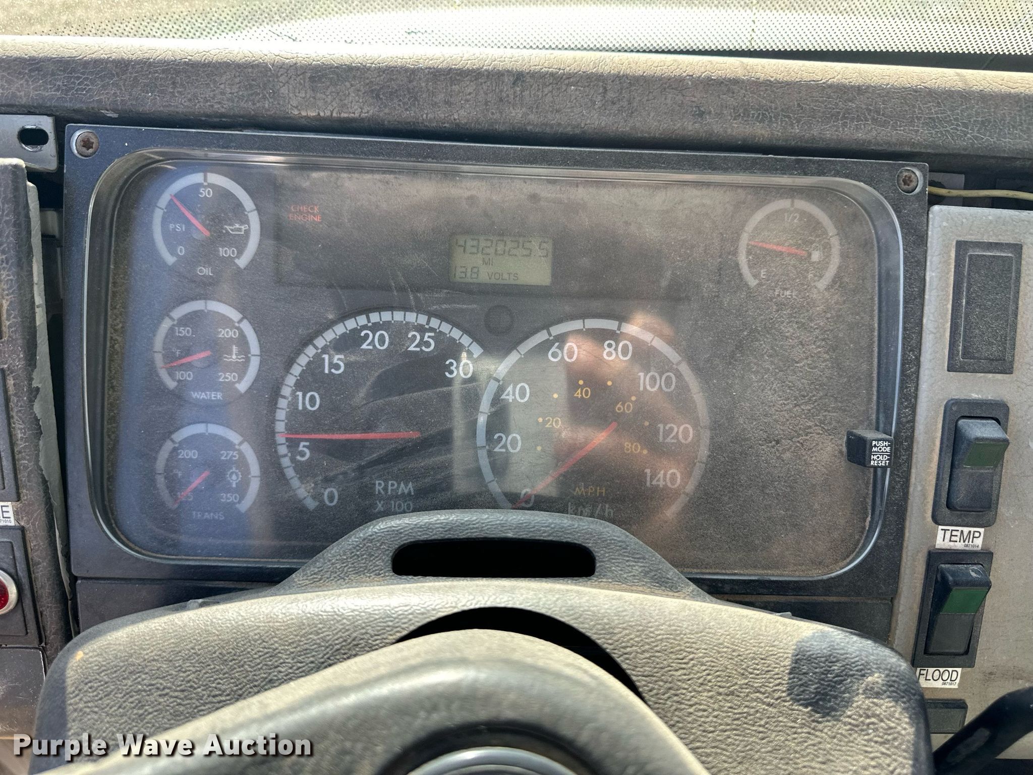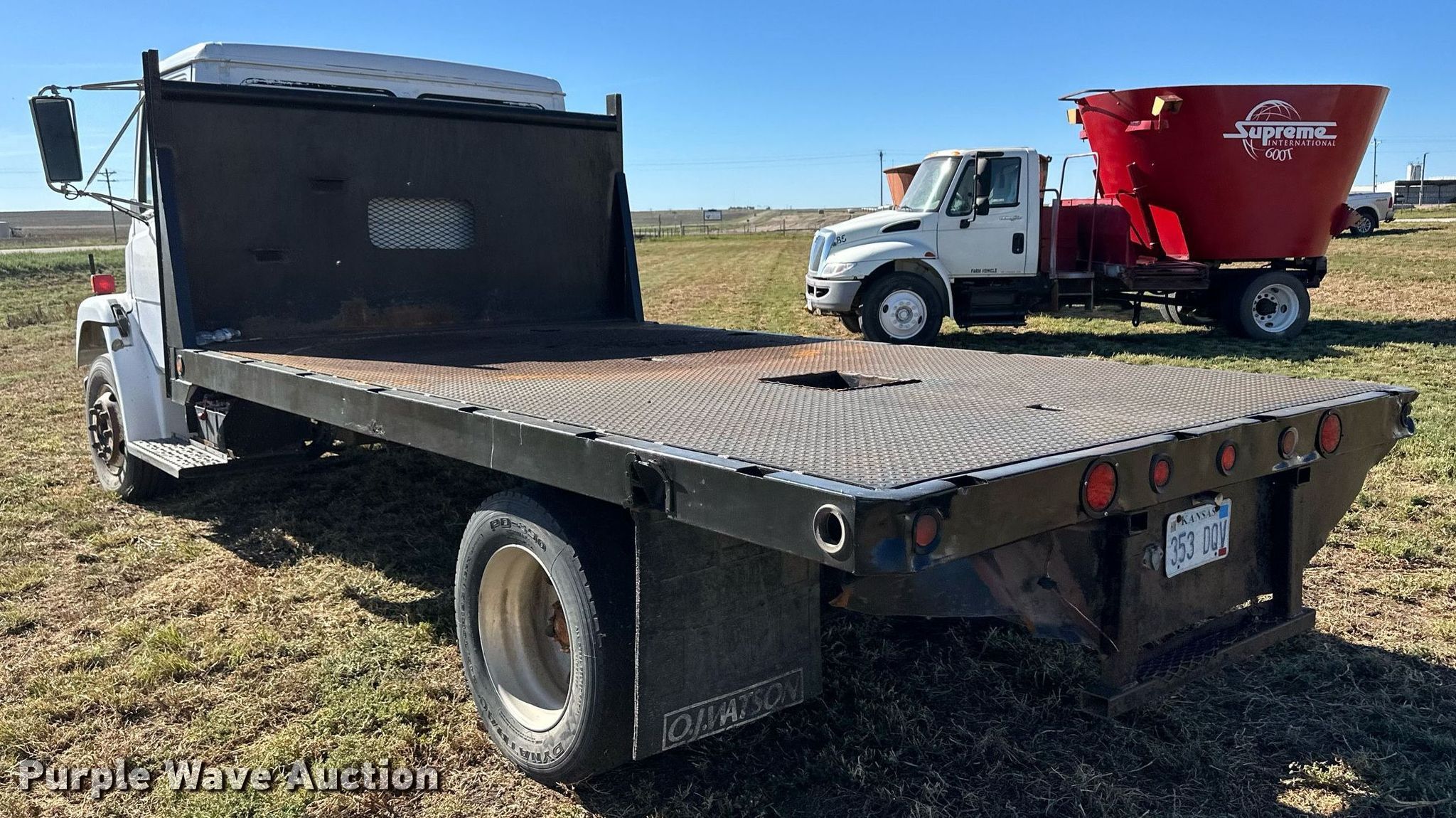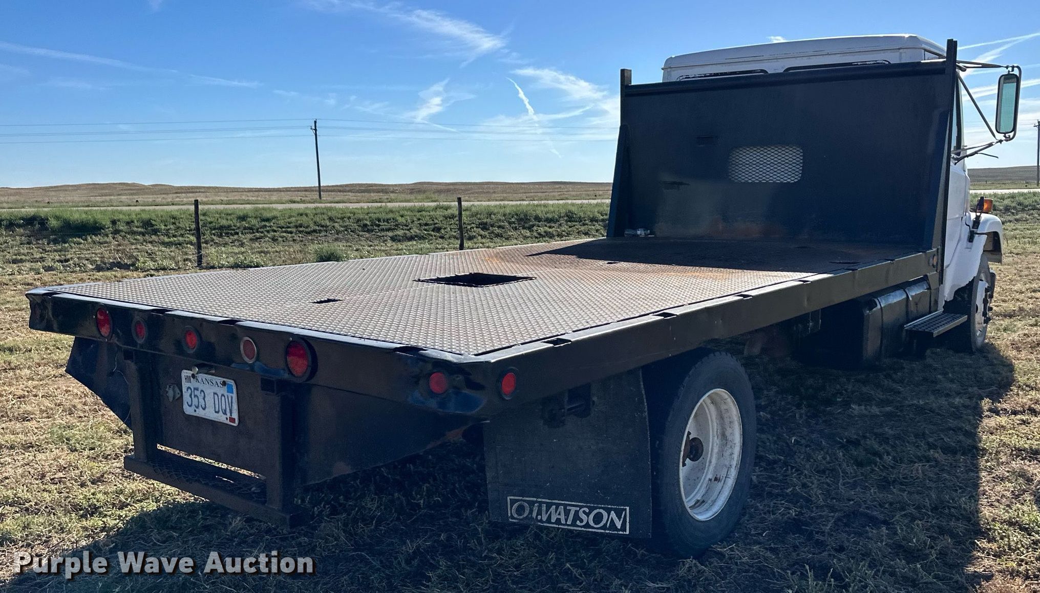 2001 Freightliner flatbed truck. Miles: 432,026 on odometer, VIN: 1FVABPAL71HJ08929. Engine Caterpillar 3126, Displacement: 7.2L, Cylinders: 6, Fuel type: Diesel. Transmission Automatic. Chassis Axles: Single, Suspension: Spring, Brakes: Hydraulic, Hitch: Gooseneck. Interior AC, Heat, Heated mirrors, Cruise control. Features Flatbed 14' 5" L x 96" W. Tires Size: 245/70R19.5. Notes Windshield chipped or cracked, Transmission issues, hard to shift , Dash warning indicator: Check engine. Kansas title. Title distribution may be delayed up to 14 days from verification of funds. Fullmer Cattle. Syracuse, KS 67878