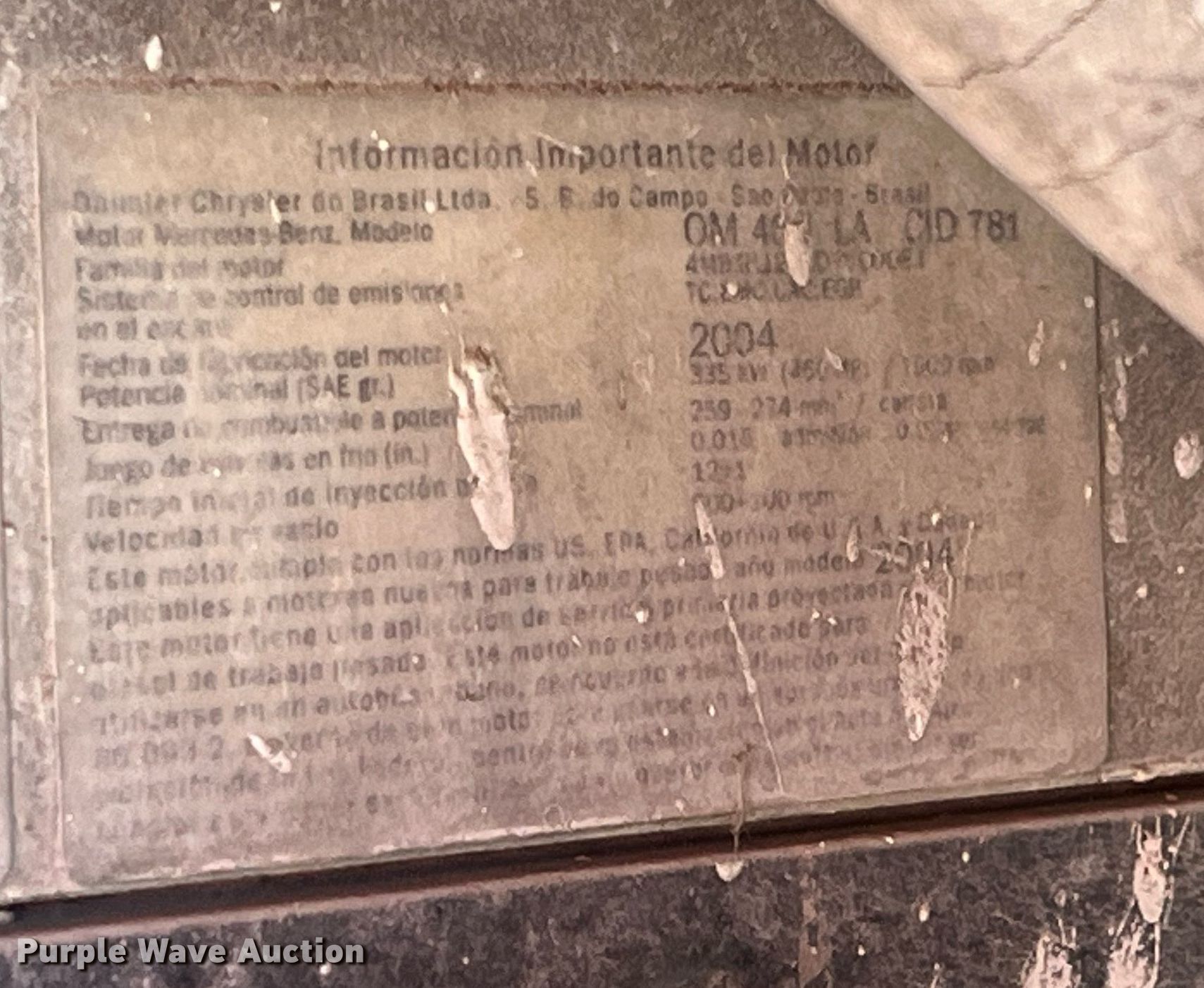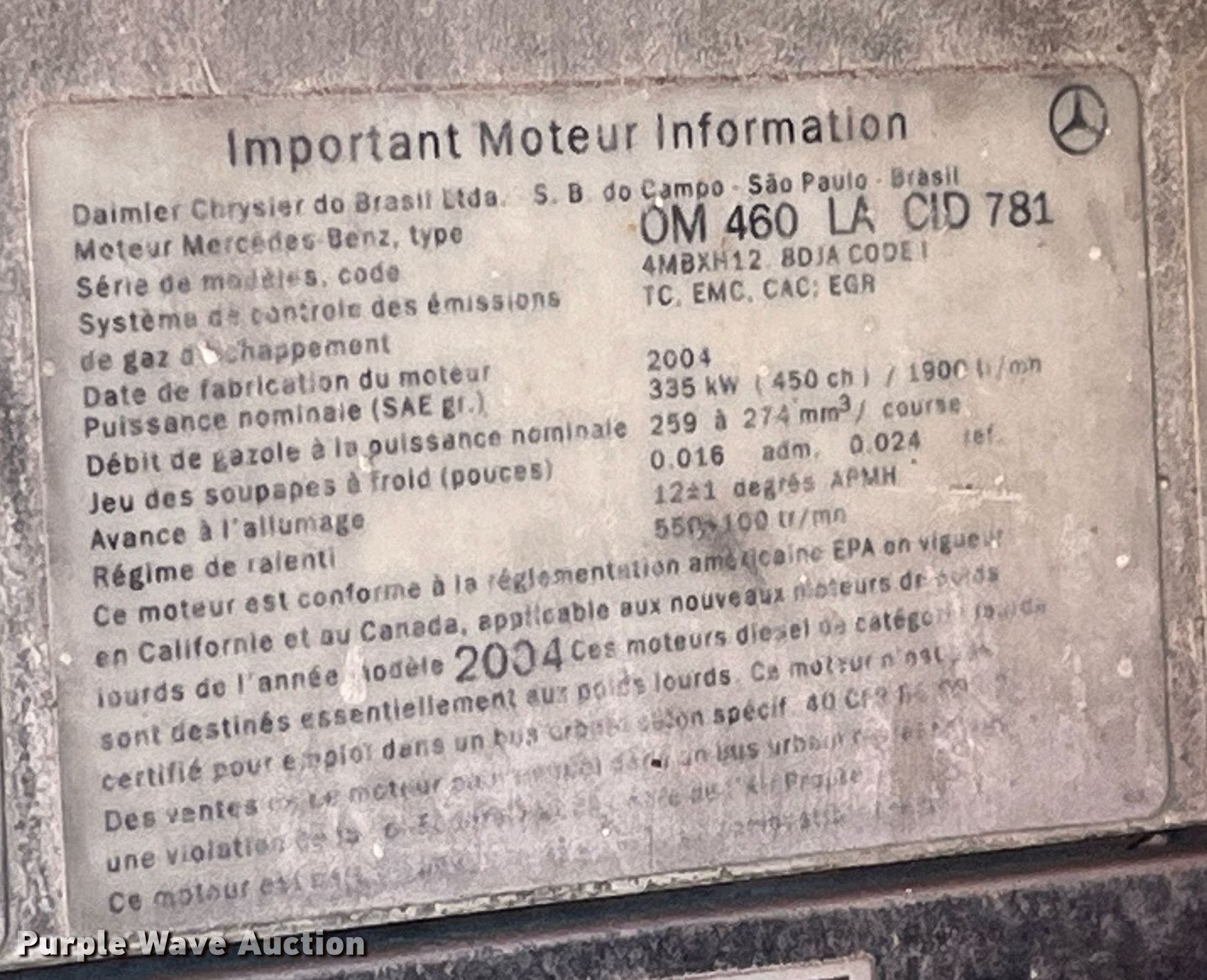 2005 Sterling AT9500 semi truck. Miles: Unknown, VIN: 2FWJA3CVX5AU15316. Engine Mercedes-Benz MBE 4000, Displacement: 12.0L, Cylinders: 6, Fuel type: Diesel, Engine brake. Transmission Meritor, Manual, Speed: 10. Chassis Axles: Tandem, Differential lock: Inter-axle, Suspension: Air Dump valves, Brakes: Air, PTO, Wet kit. Interior AC, Heat, Heated mirrors, Cruise control, Air ride cab. Features Deck plate: Aluminum, Fifth wheel type: Fixed, Fuel tank: Dual. Tires Size: 11R22.5. Notes Dead battery, Mirror cracked, Glass broken, Fuel cap missing, Passenger seat missing, Rear tires missing, Unit must be towed or hauled, Engine issues , Non-operational unit. Iowa title. Mileage has not been verified. Odometer discrepancy will be marked on the title. Title distribution may be delayed up to 30 days from verification of funds. Kelderman Mfg.. Oskaloosa, IA 52577